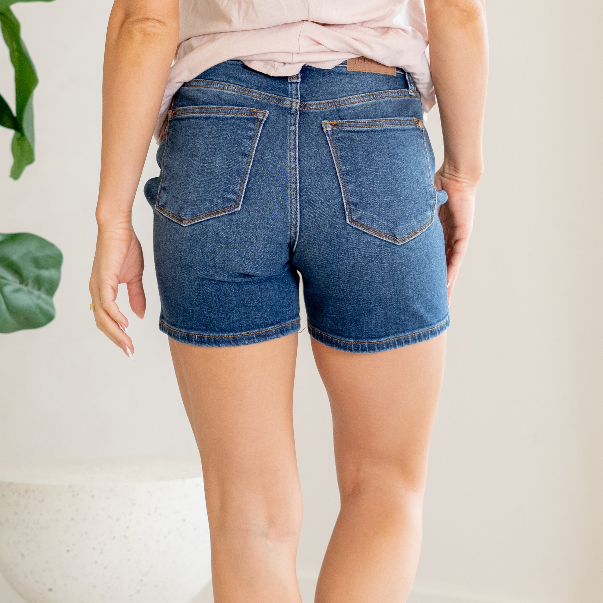 Judy Blue Golden Hour Two Button Mid Length Dad Shorts Regular & Plus Sizes
