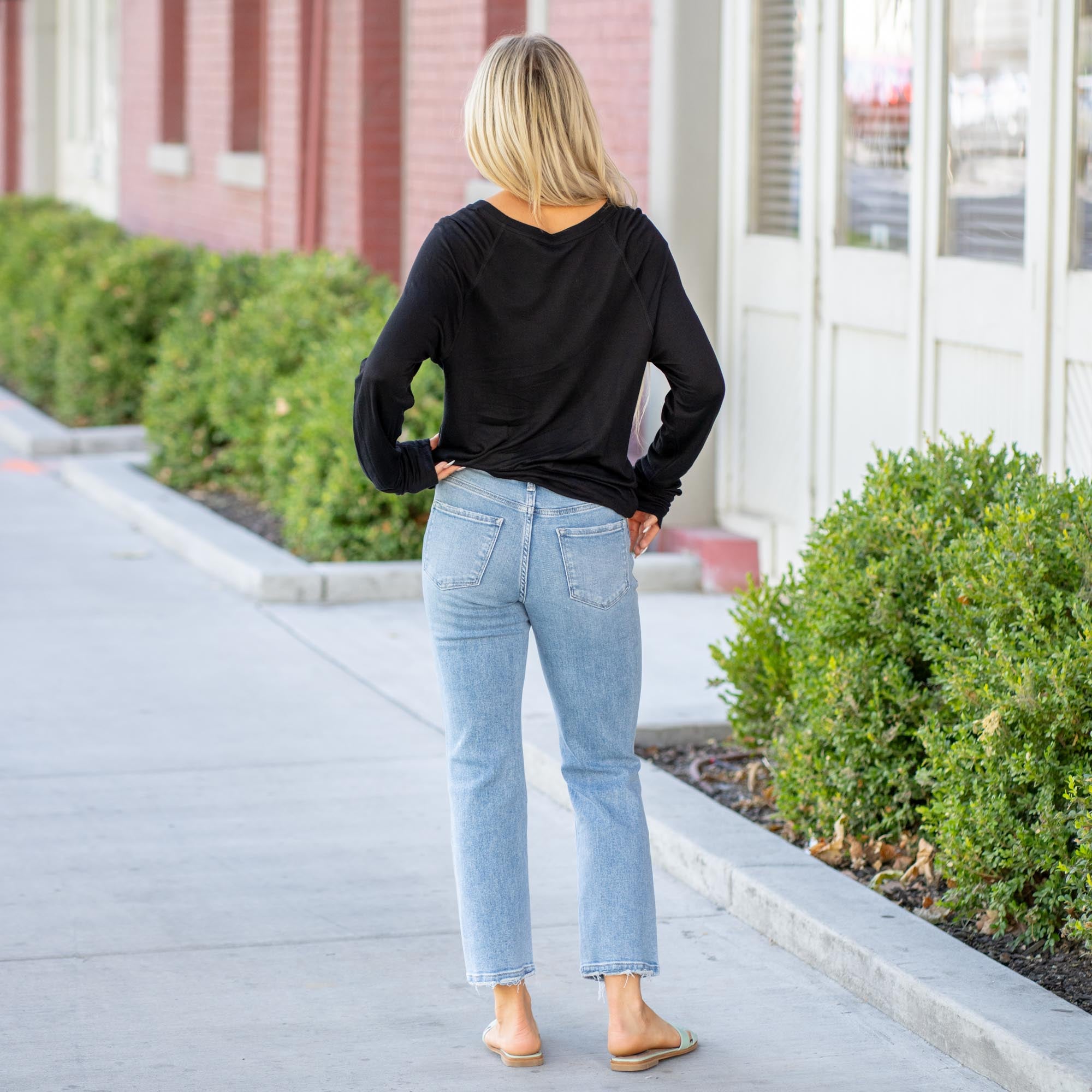 RFM Dylan Tummy Control Top High Rise Cropped Straight Leg Jeans Light Blue Wash