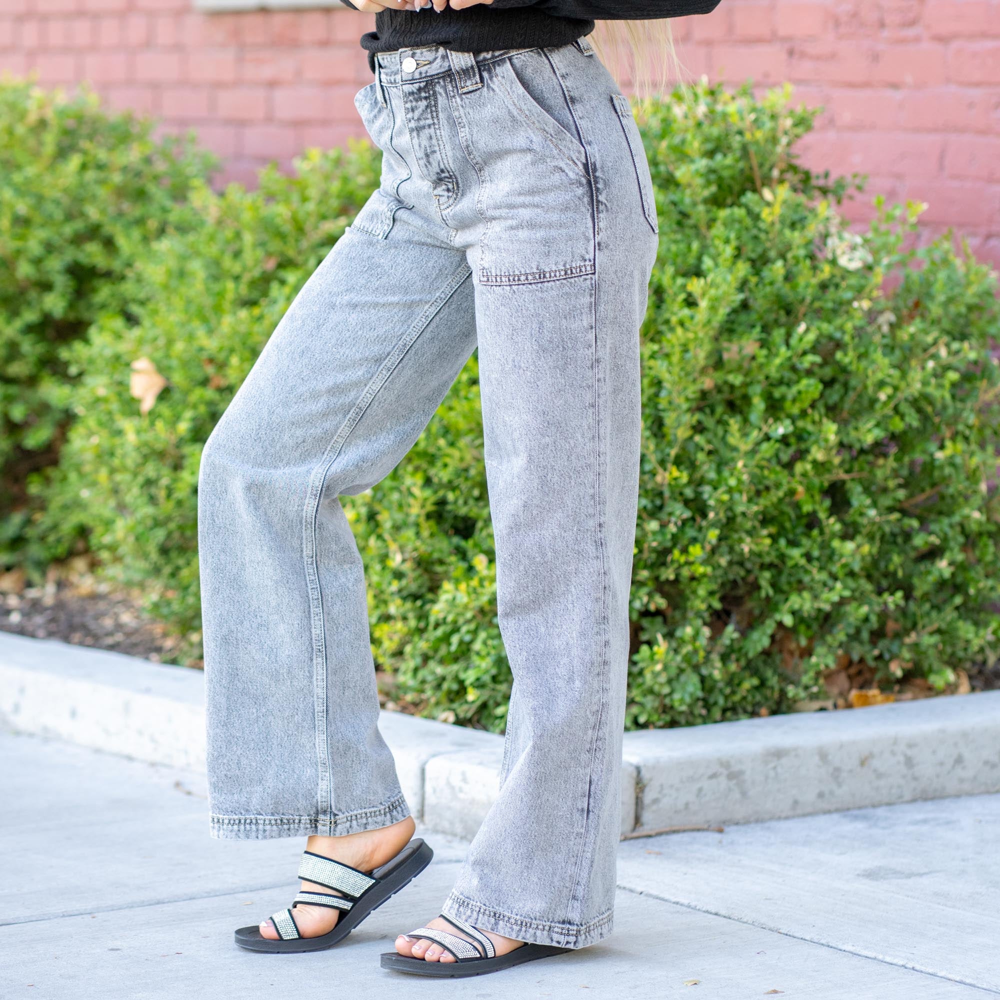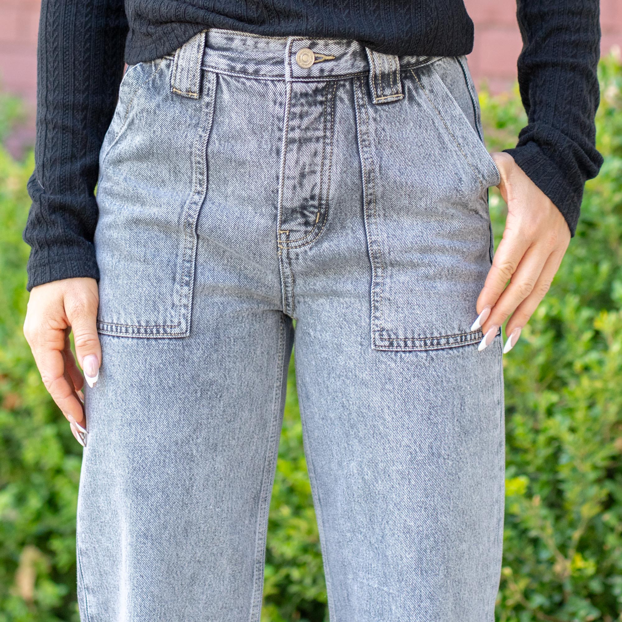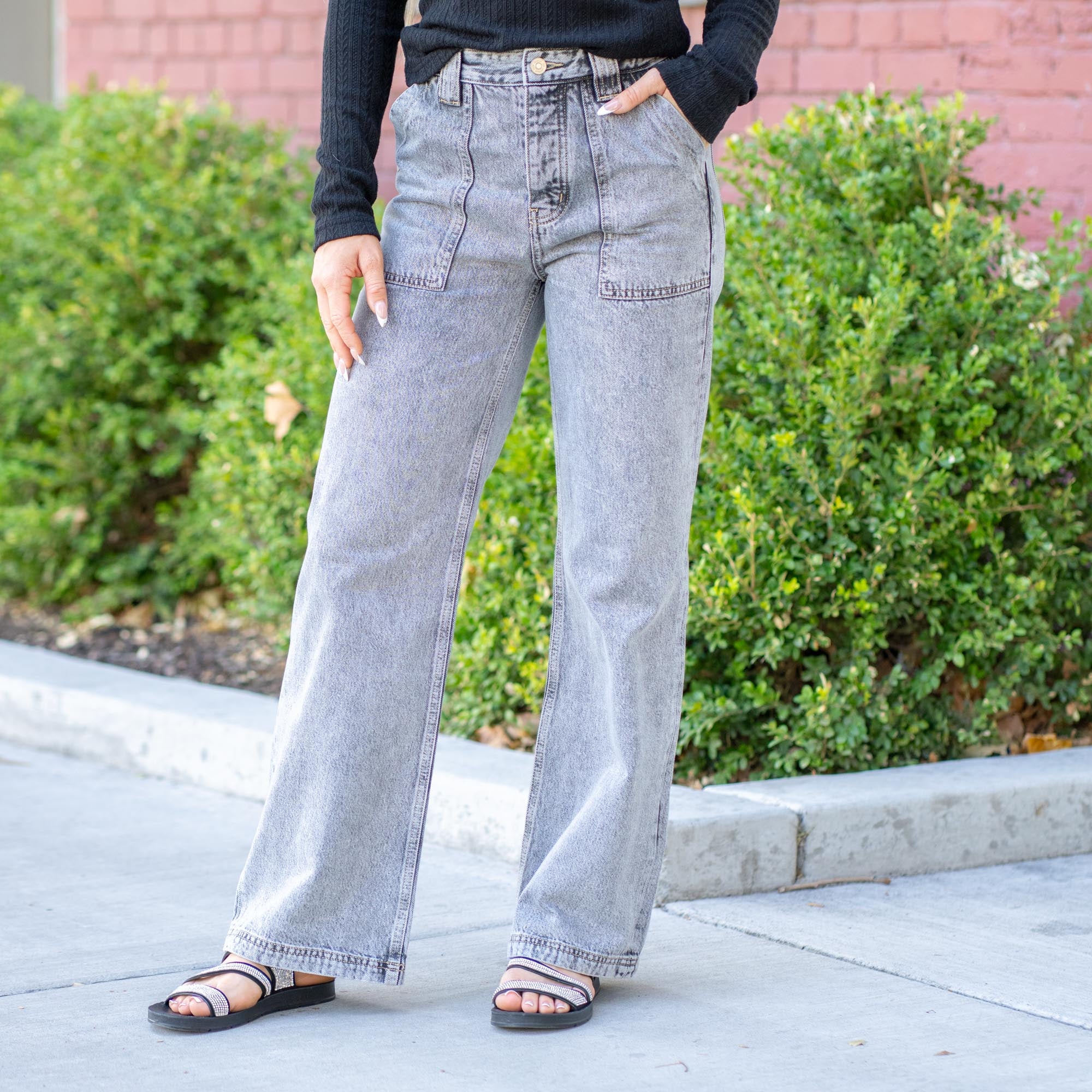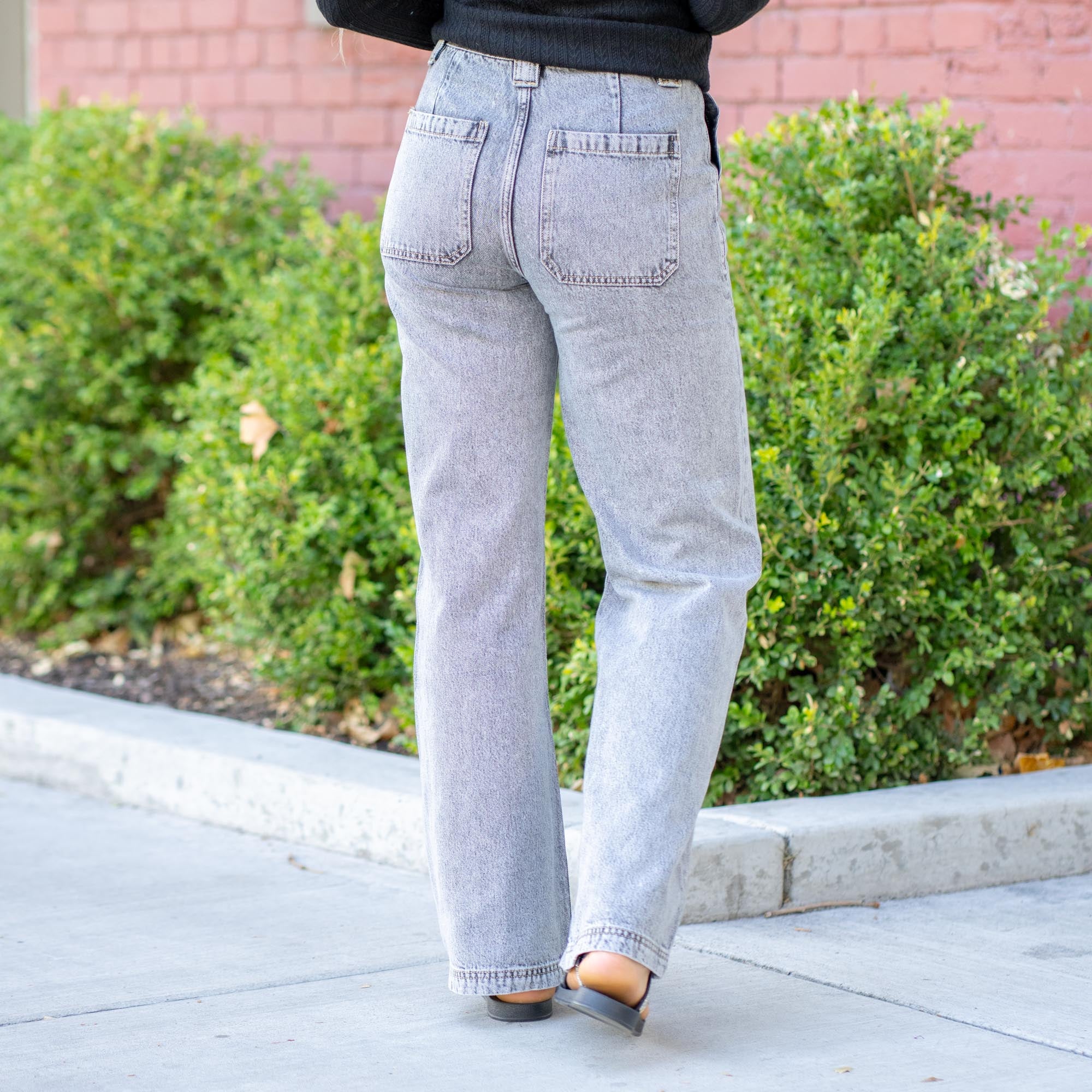KanCan Rowan Skater Ultra High Rise Straight Leg Grey Jeans