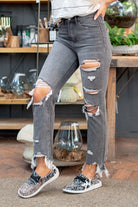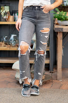 These cropped straight legs have nonstretch denim that feels like a vintage fit. Pair with tennis shoes and an oversized tee for an easygoing look.