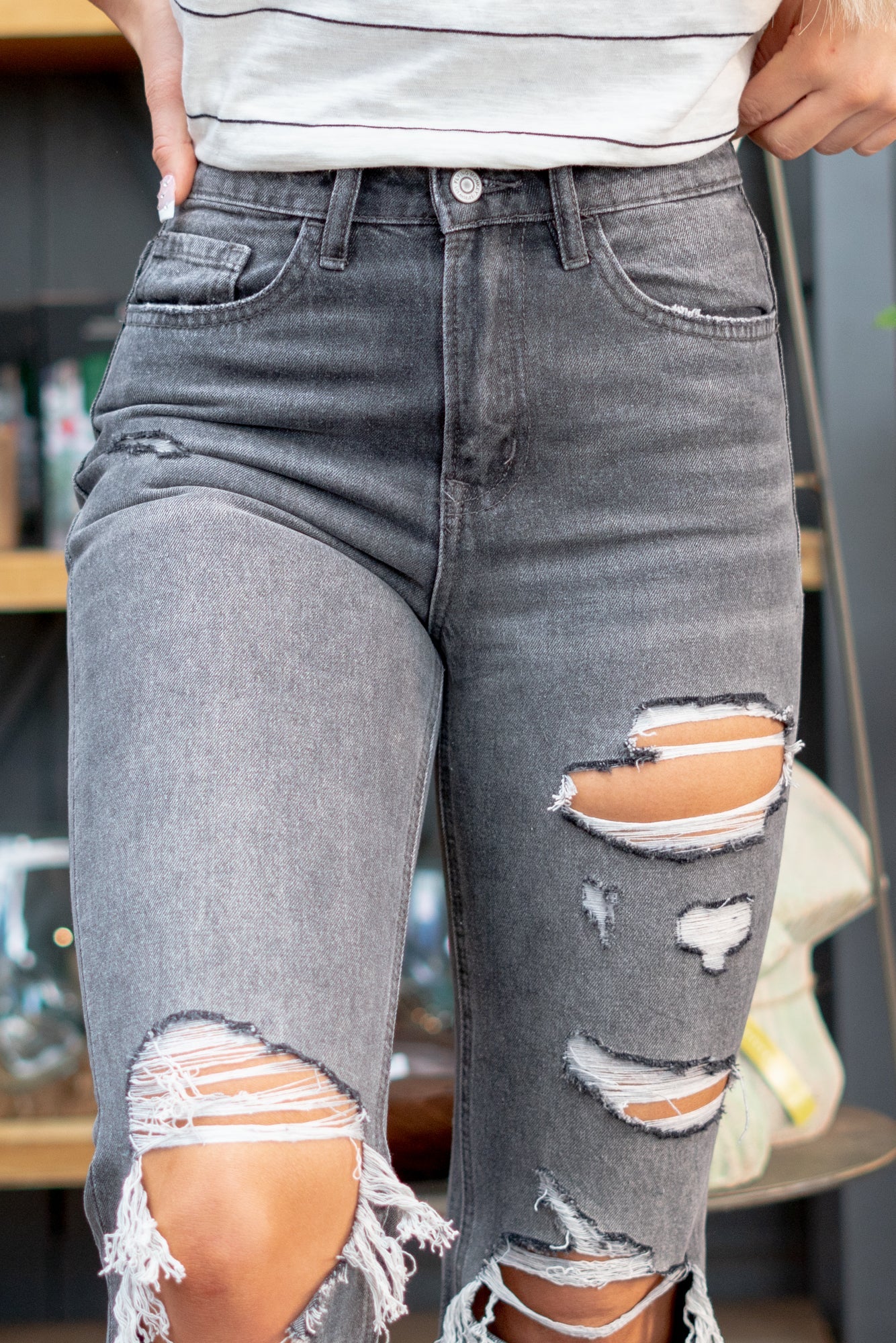 - Cut: Mom Fit, 27" Inseam