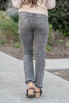 These high-waisted straight-leg jeans have a comfortable stretch to them with distressed legs and a released hem, they will be your fall go-to denim.