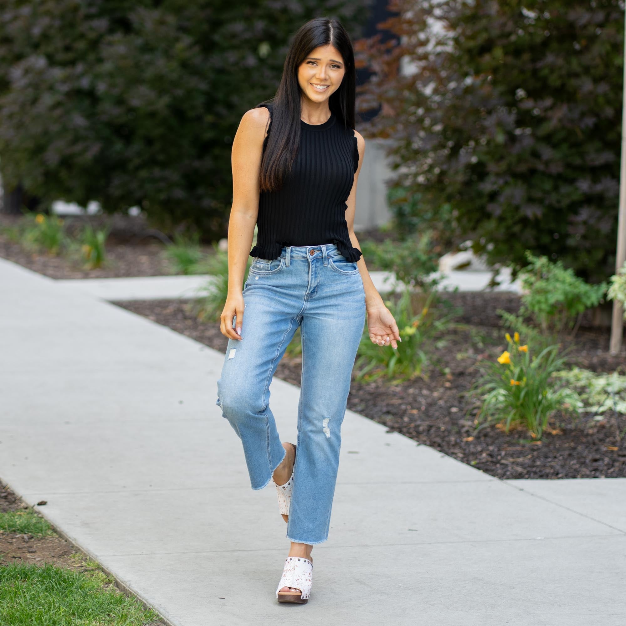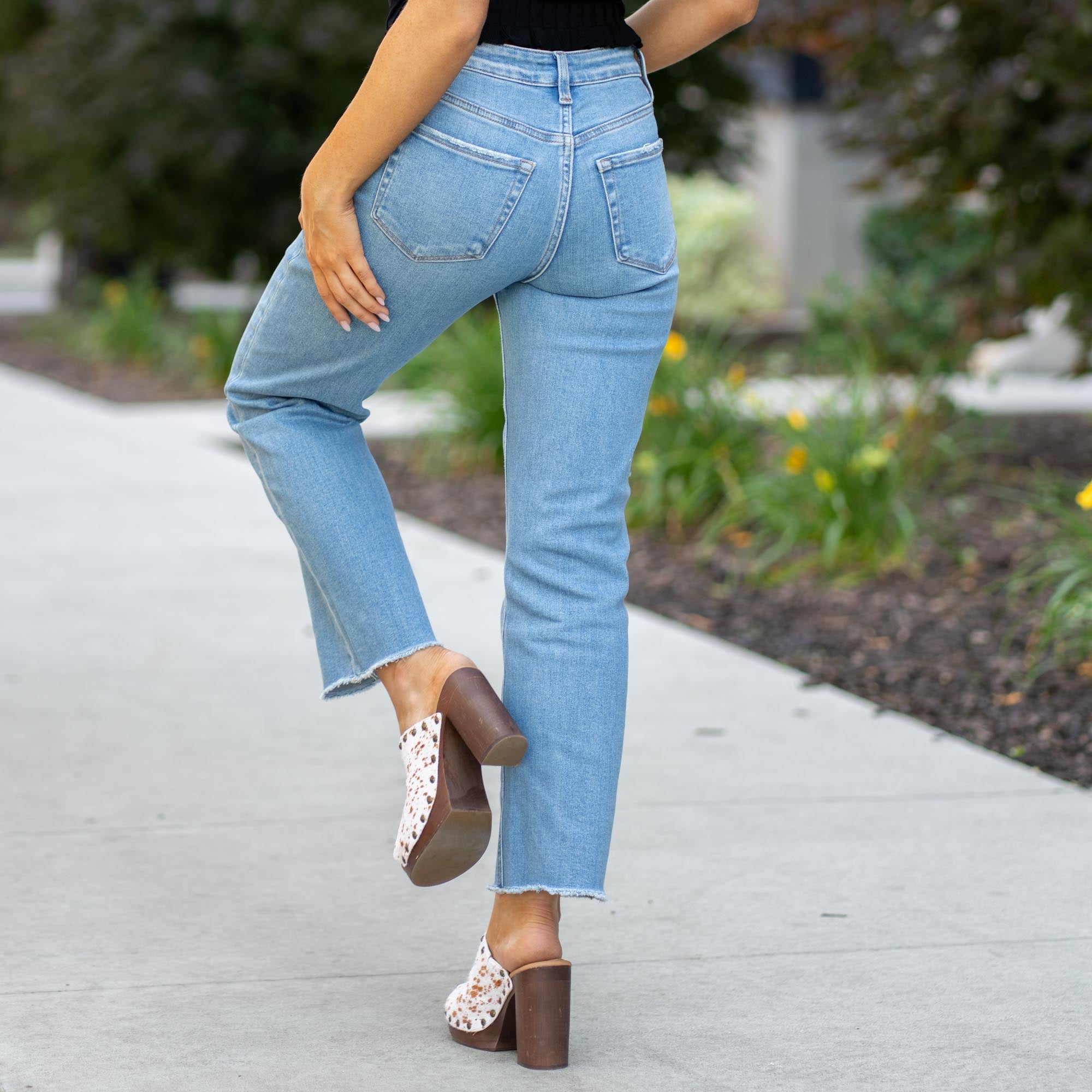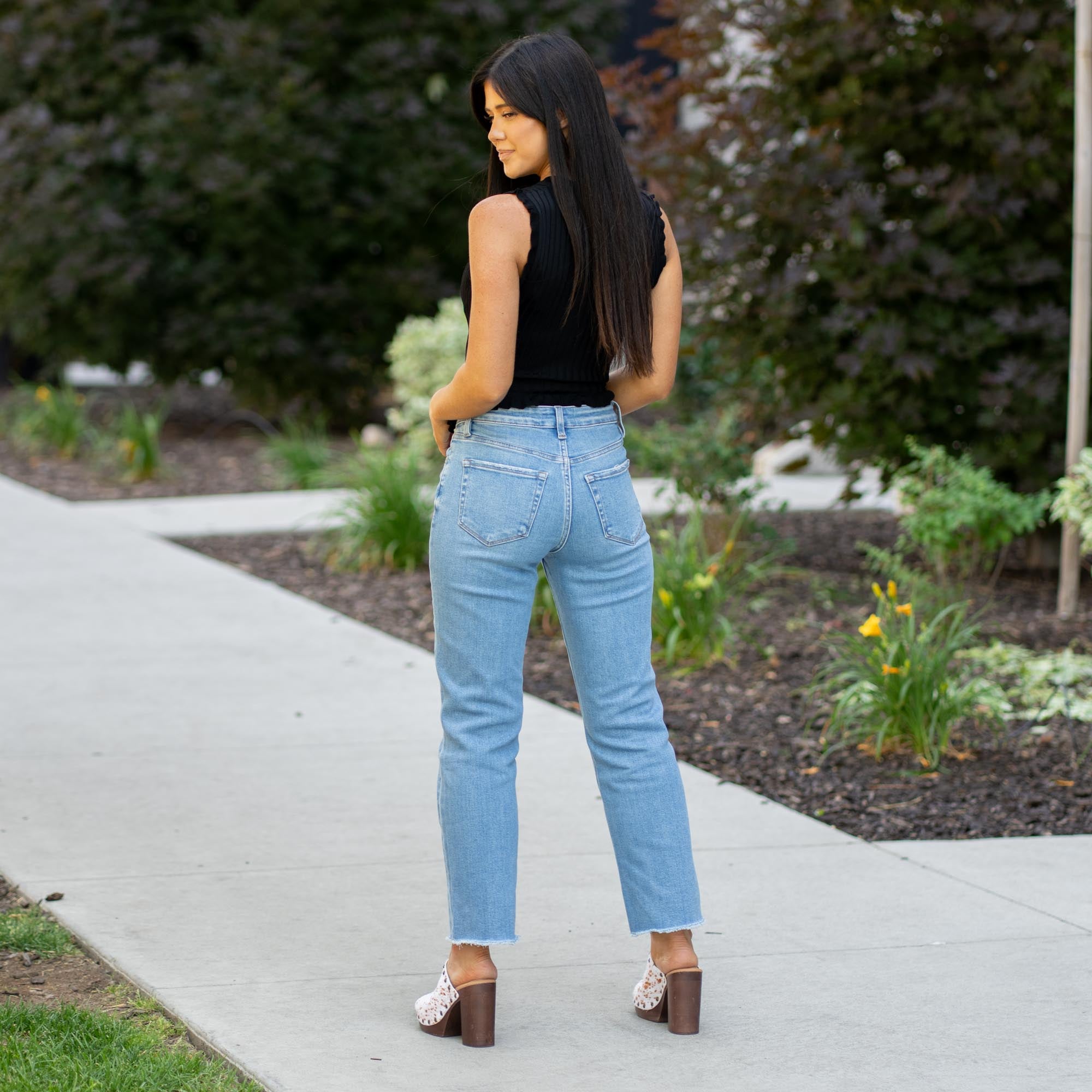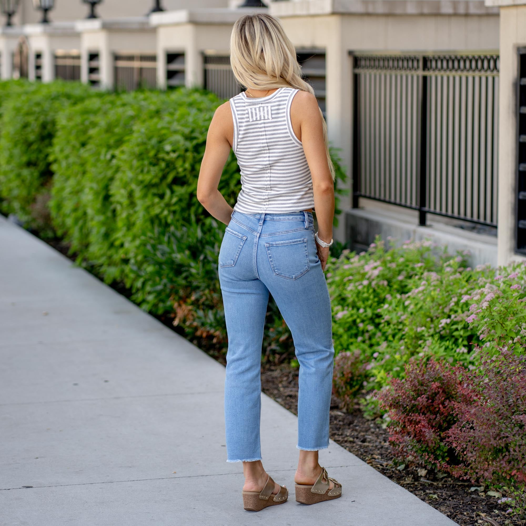 Dylan High Rise Tummy Control Top High Waist Raw Hem Cropped Straight Plus & Regular Sizes