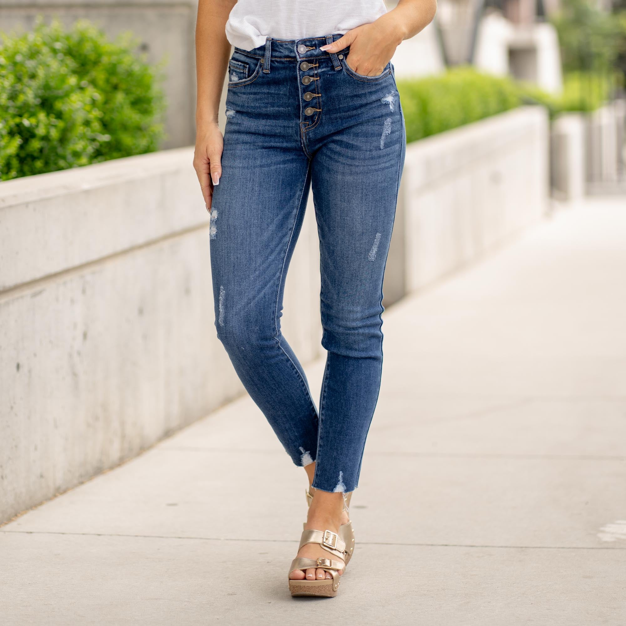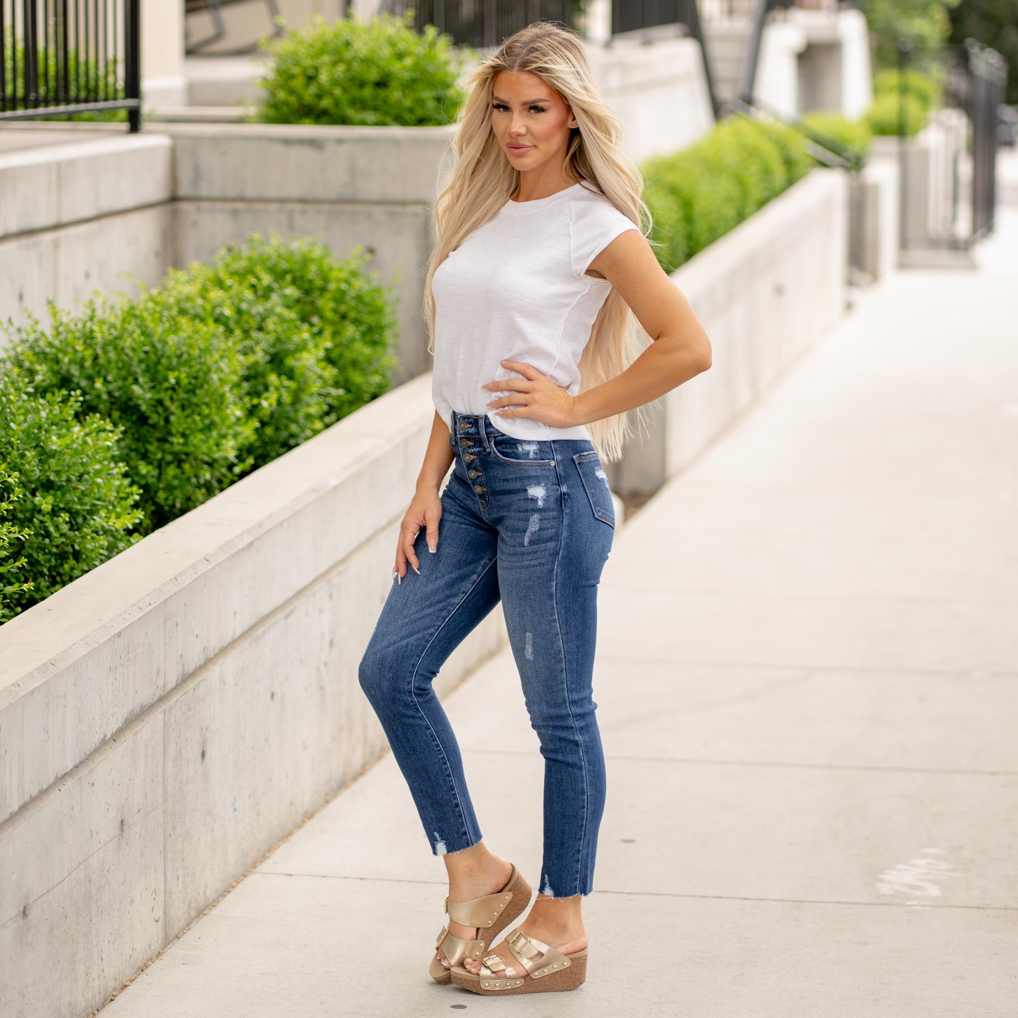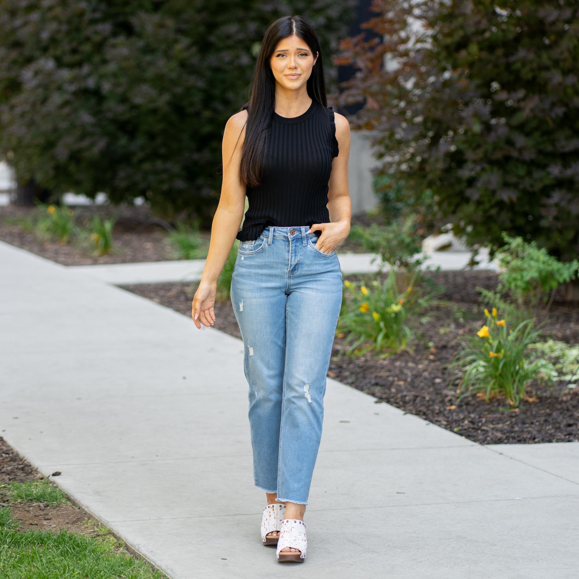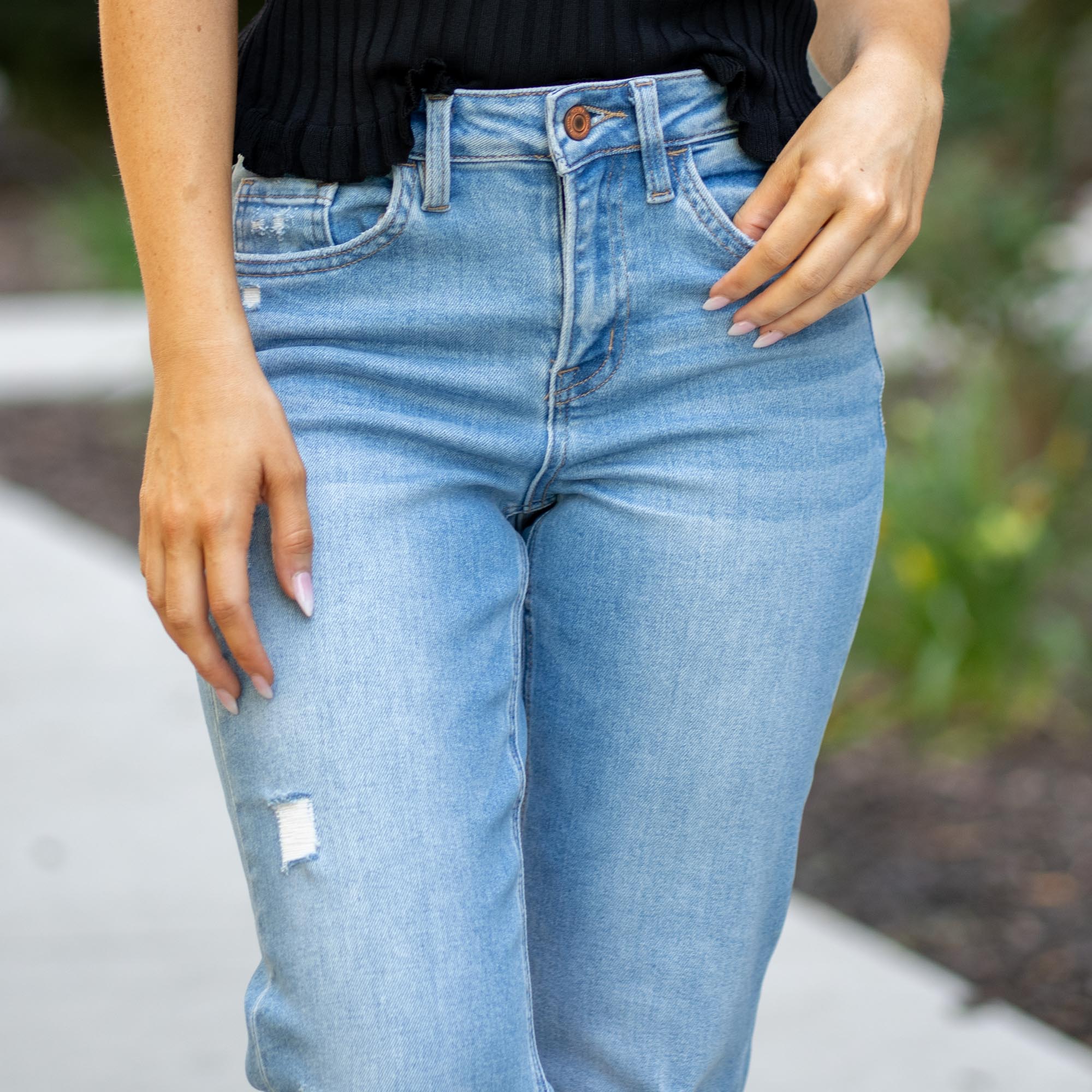 Dylan High Rise Tummy Control Top High Waist Raw Hem Cropped Straight Plus & Regular Sizes