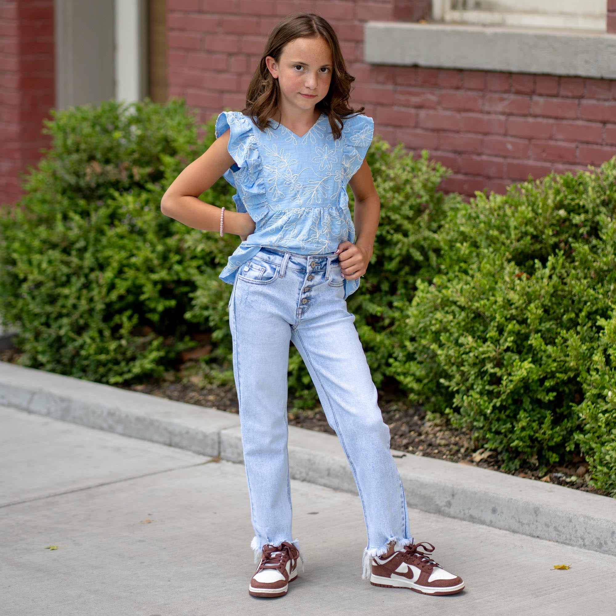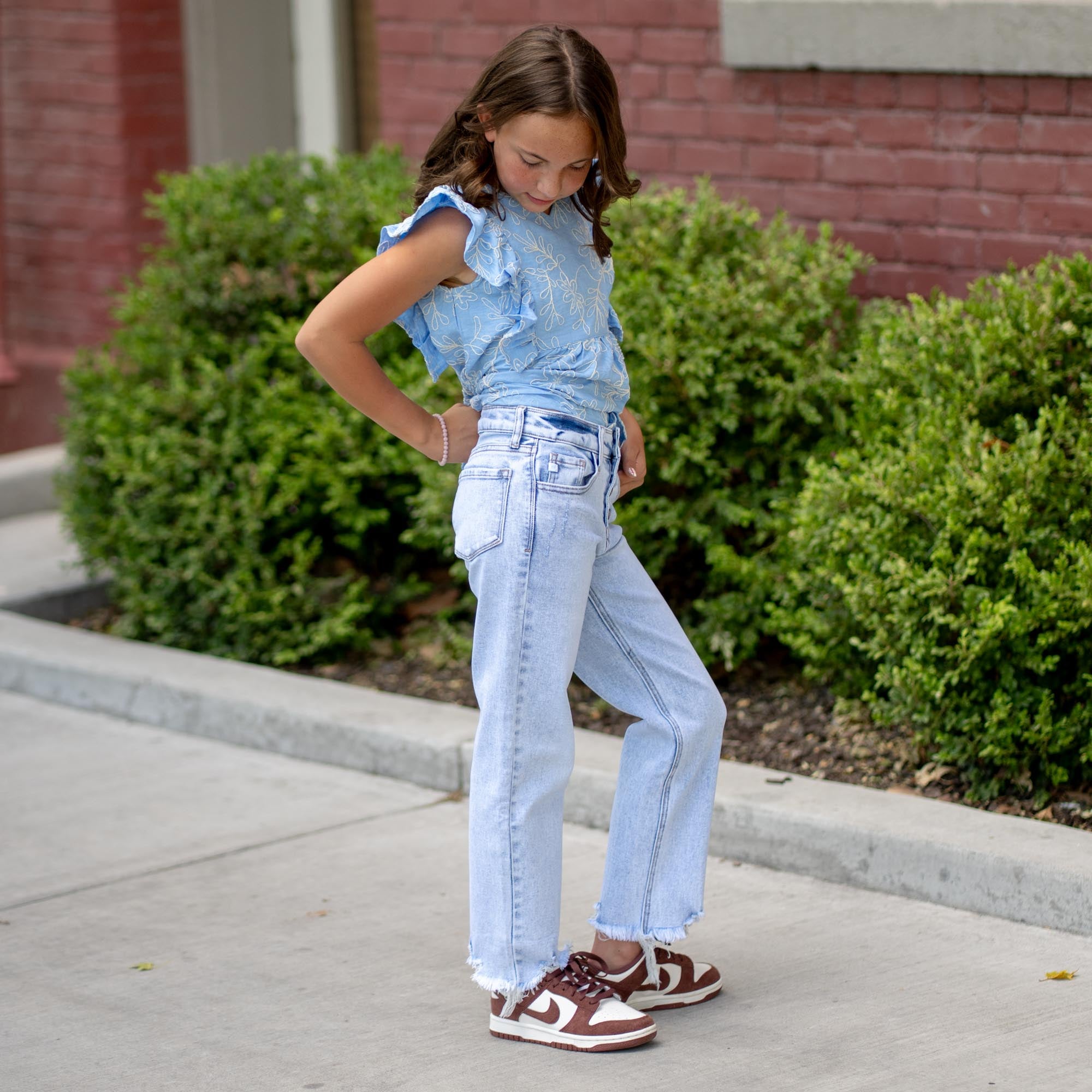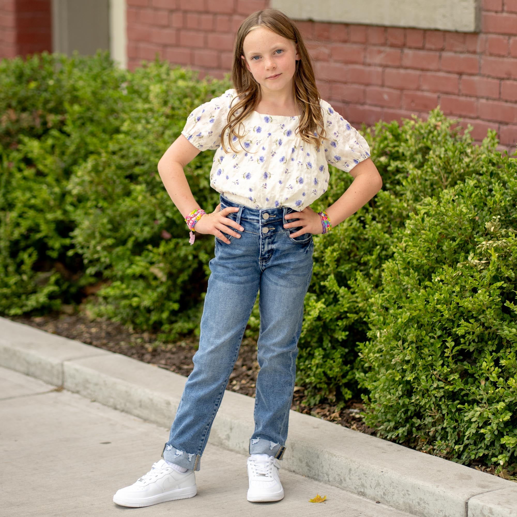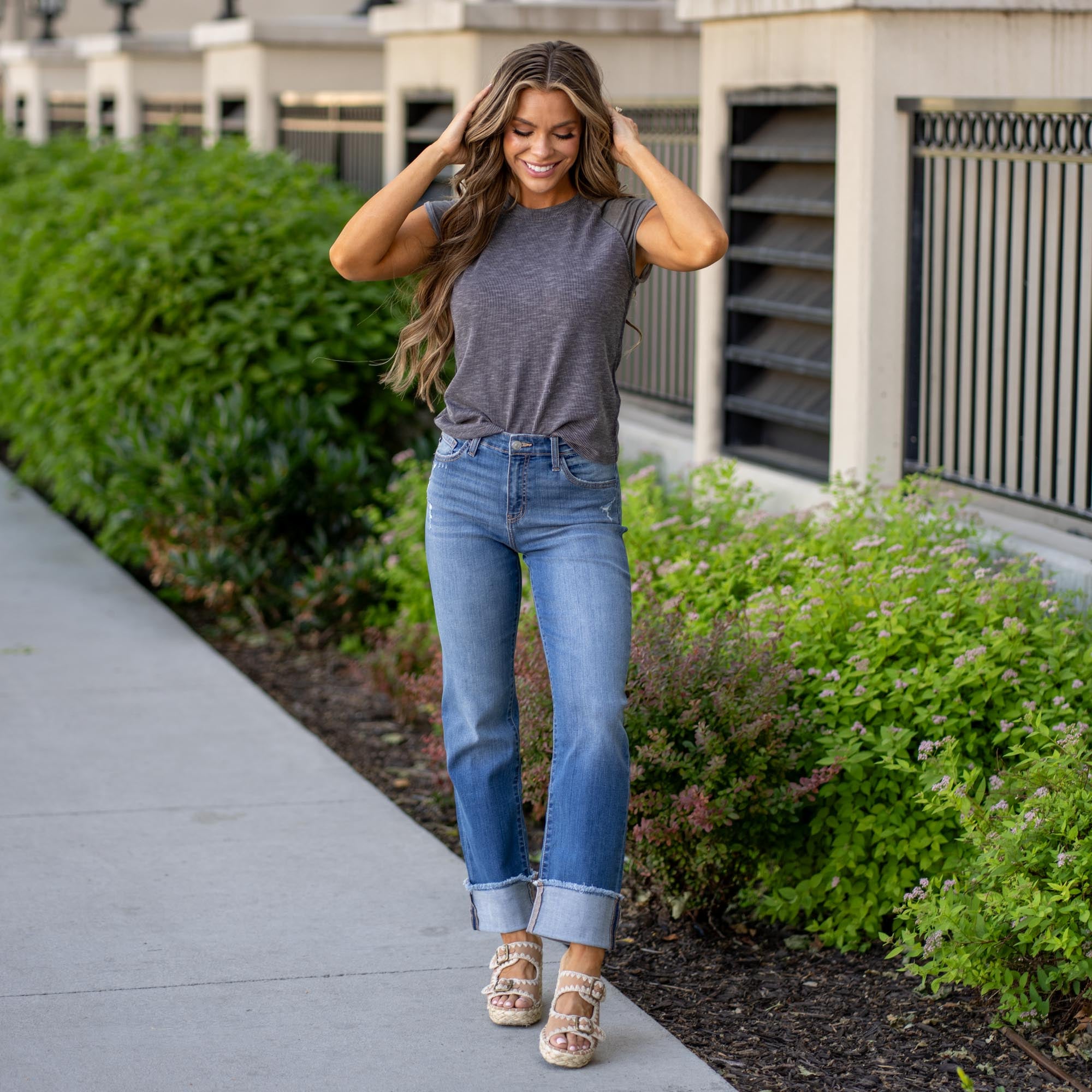 Dylan High Rise Tummy Control Top High Waist Raw Hem Cropped Straight Plus & Regular Sizes