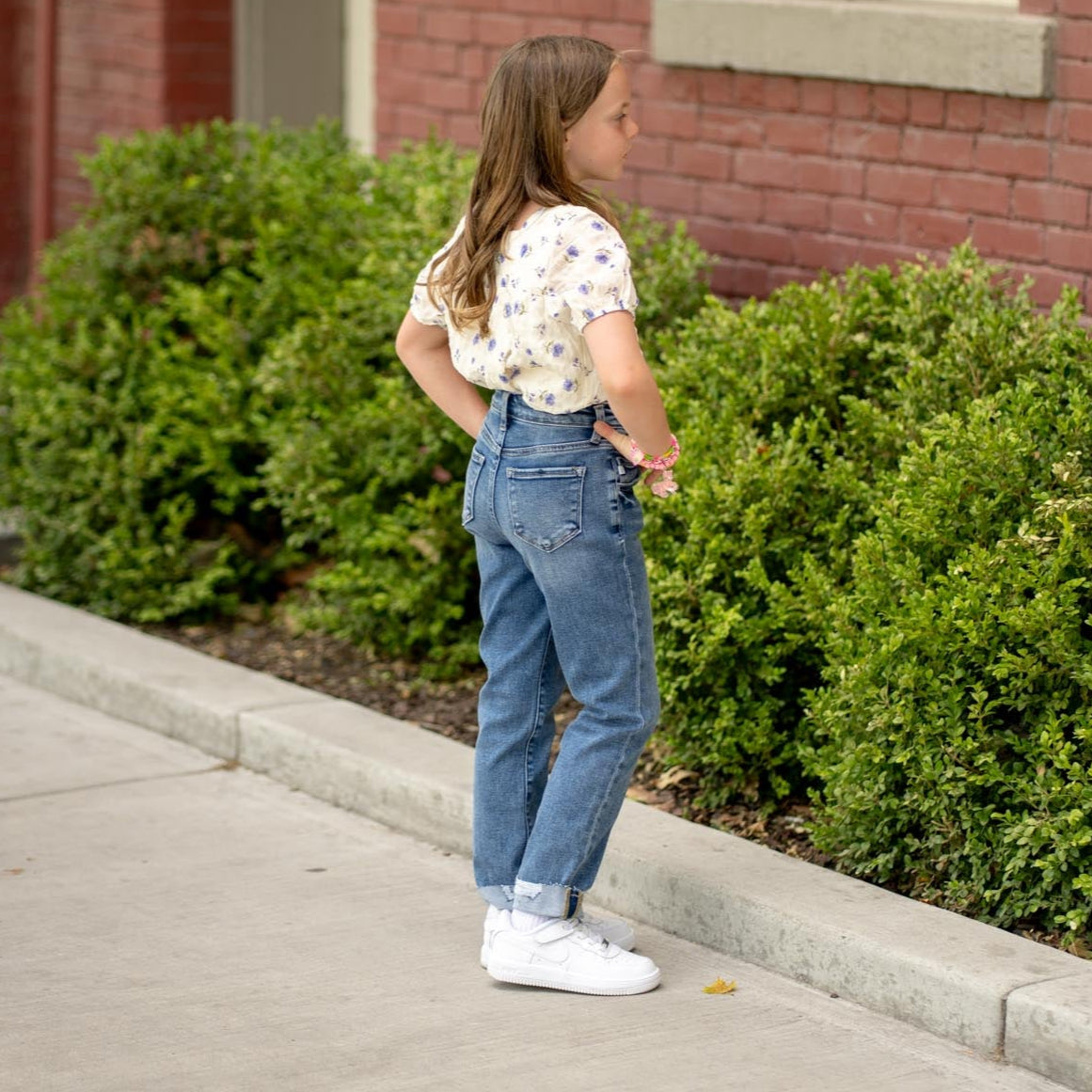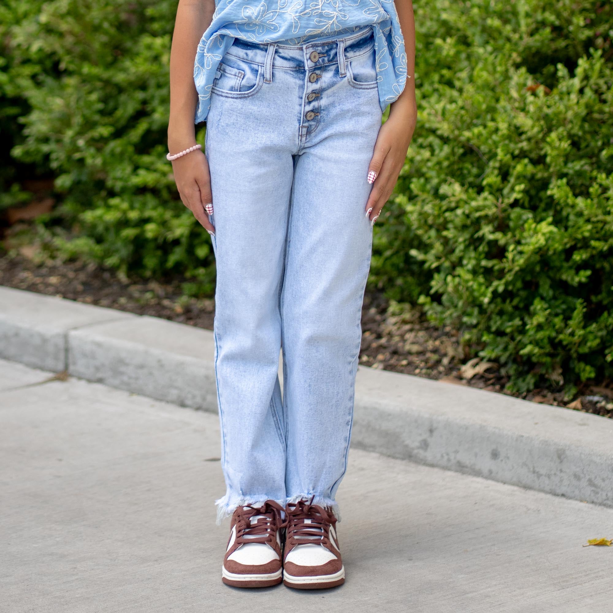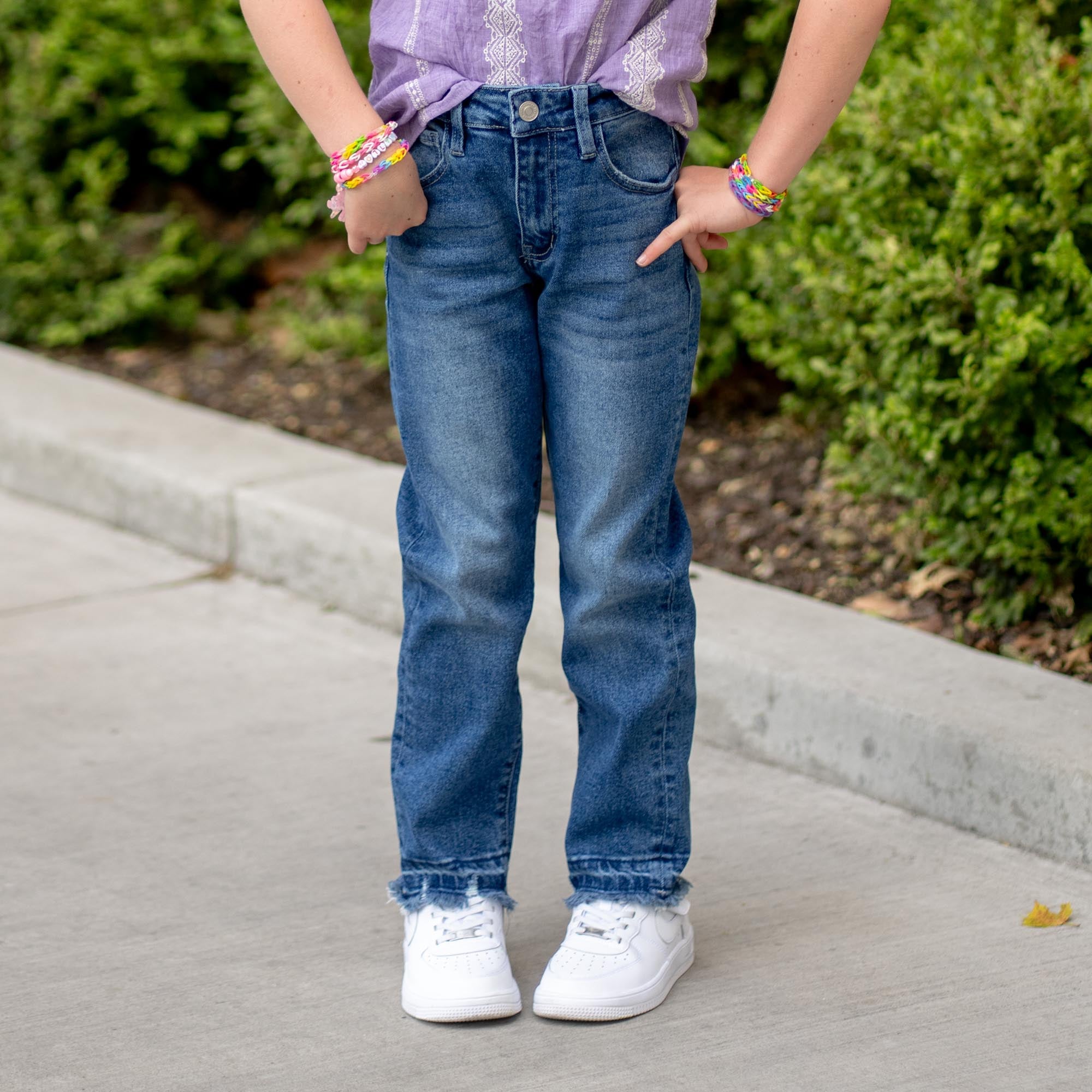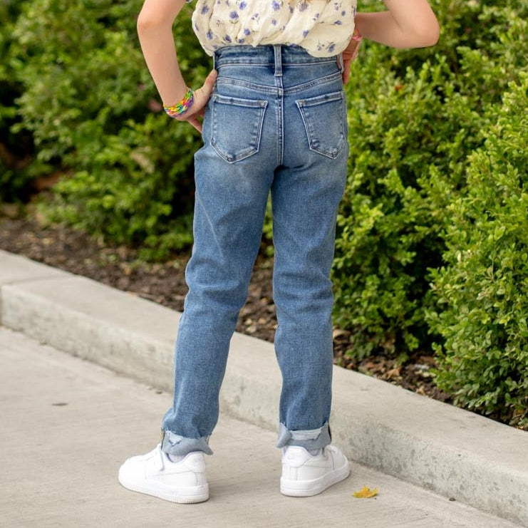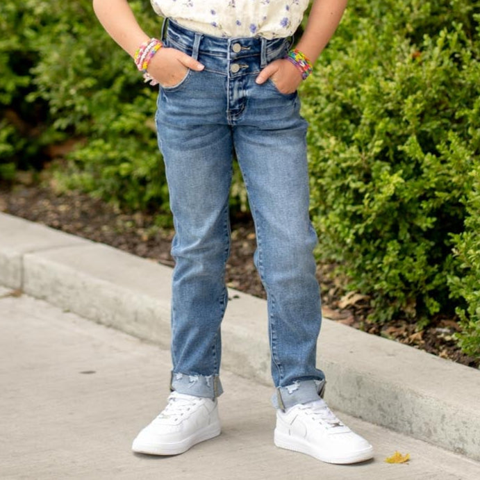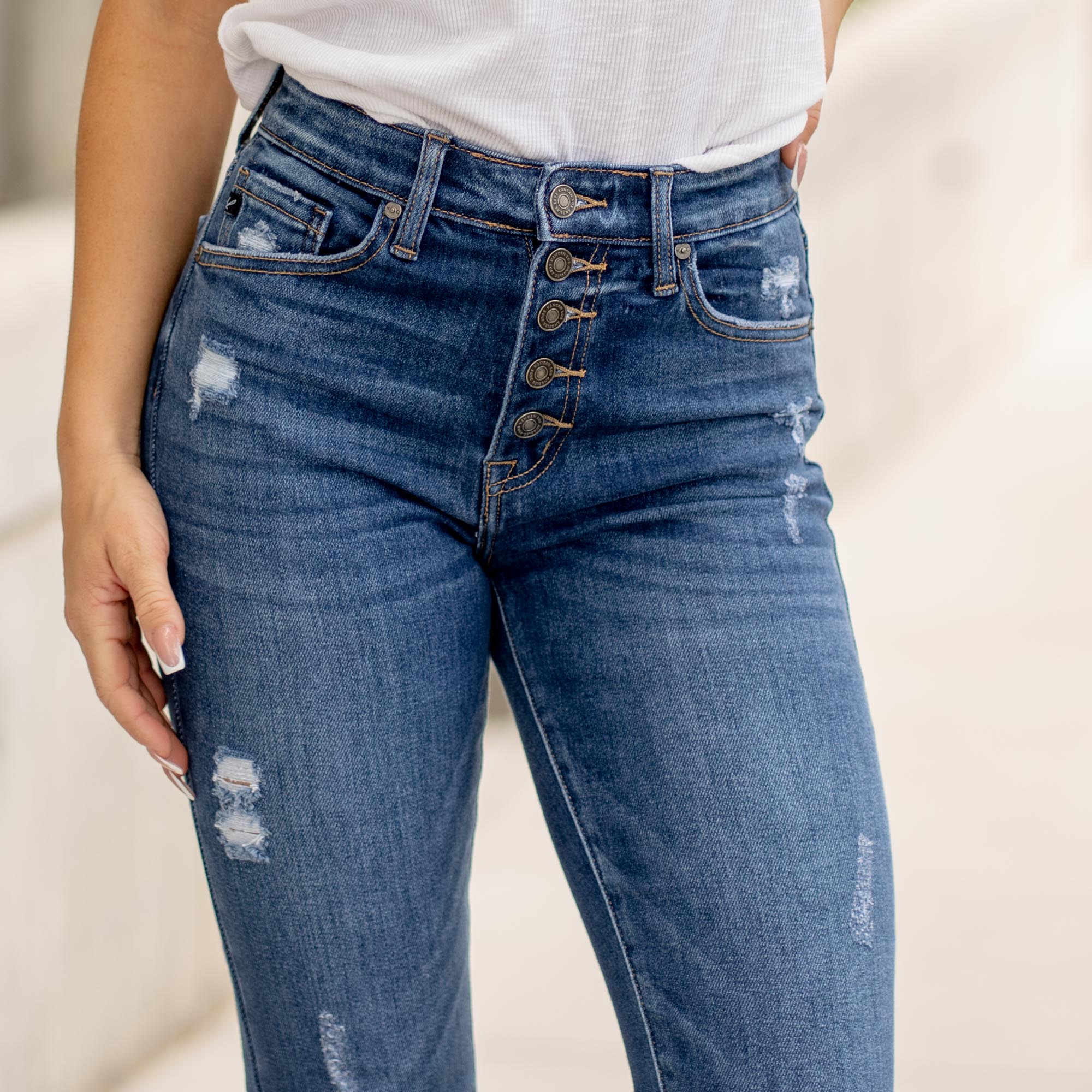 KanCan Quin Essentials High Rise Straight Leg Medium Blue Wash