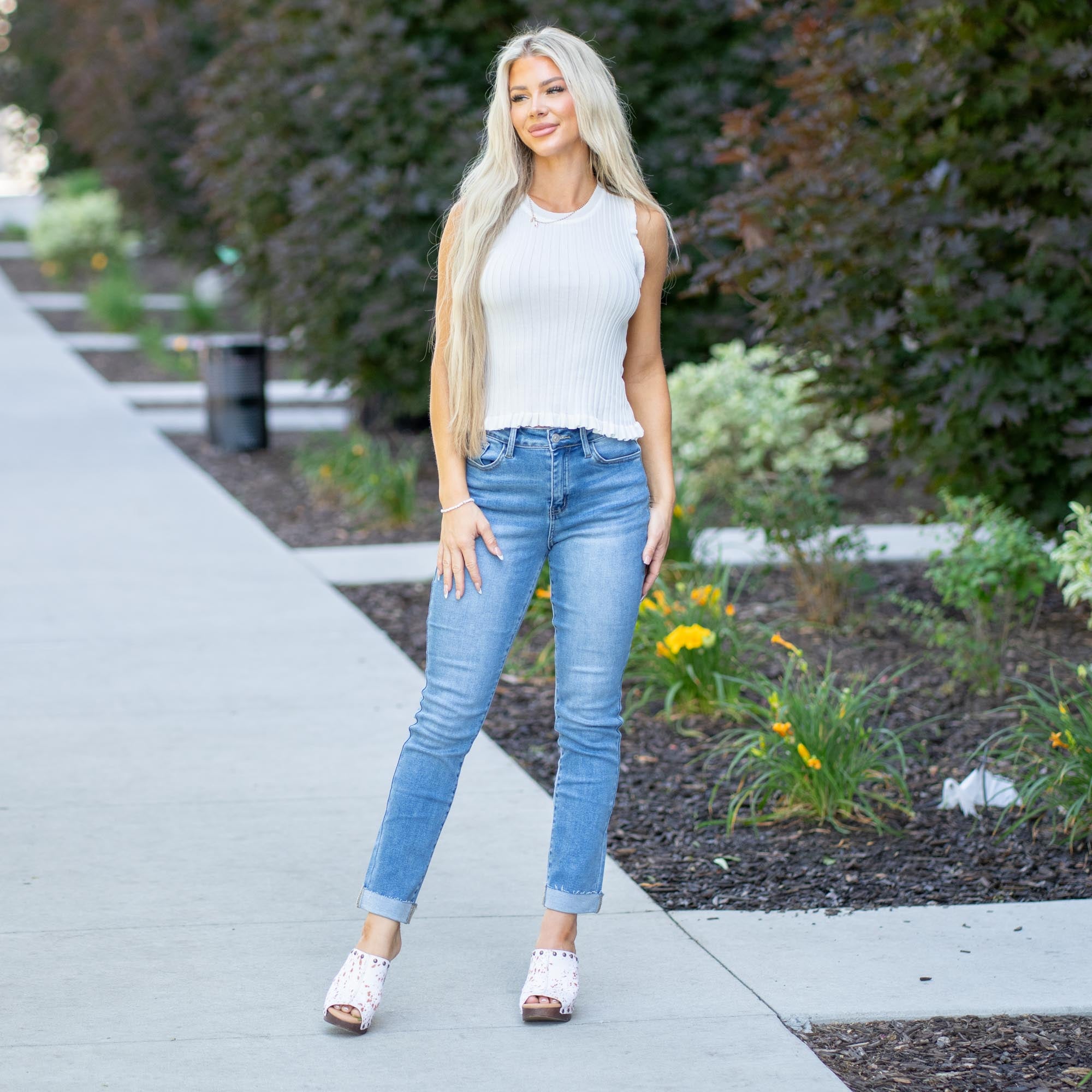 Cassiopeia High Rise Cuffed Slim Straight Leg