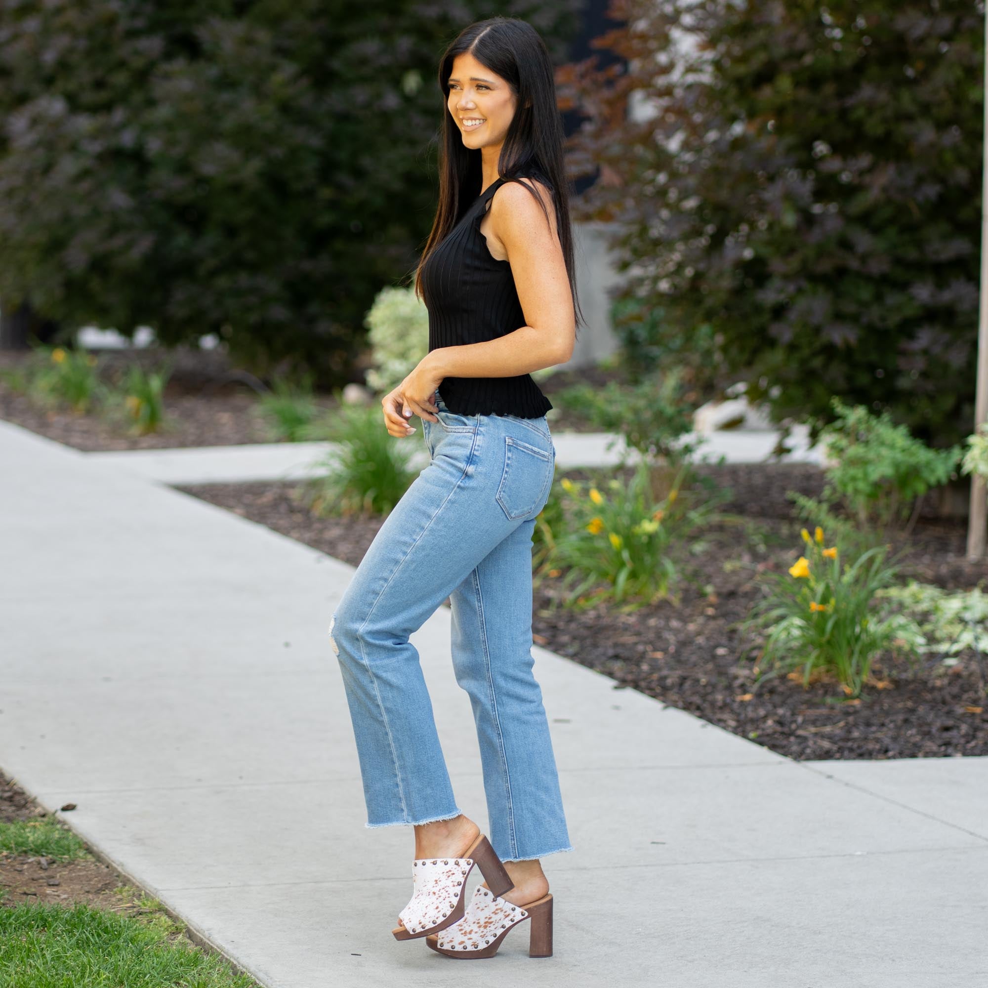 Boatload High Rise Distressed Hem Crop Straight Leg
