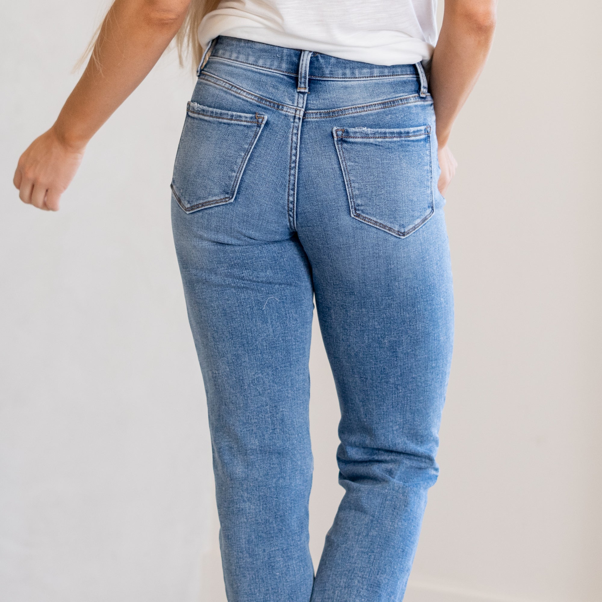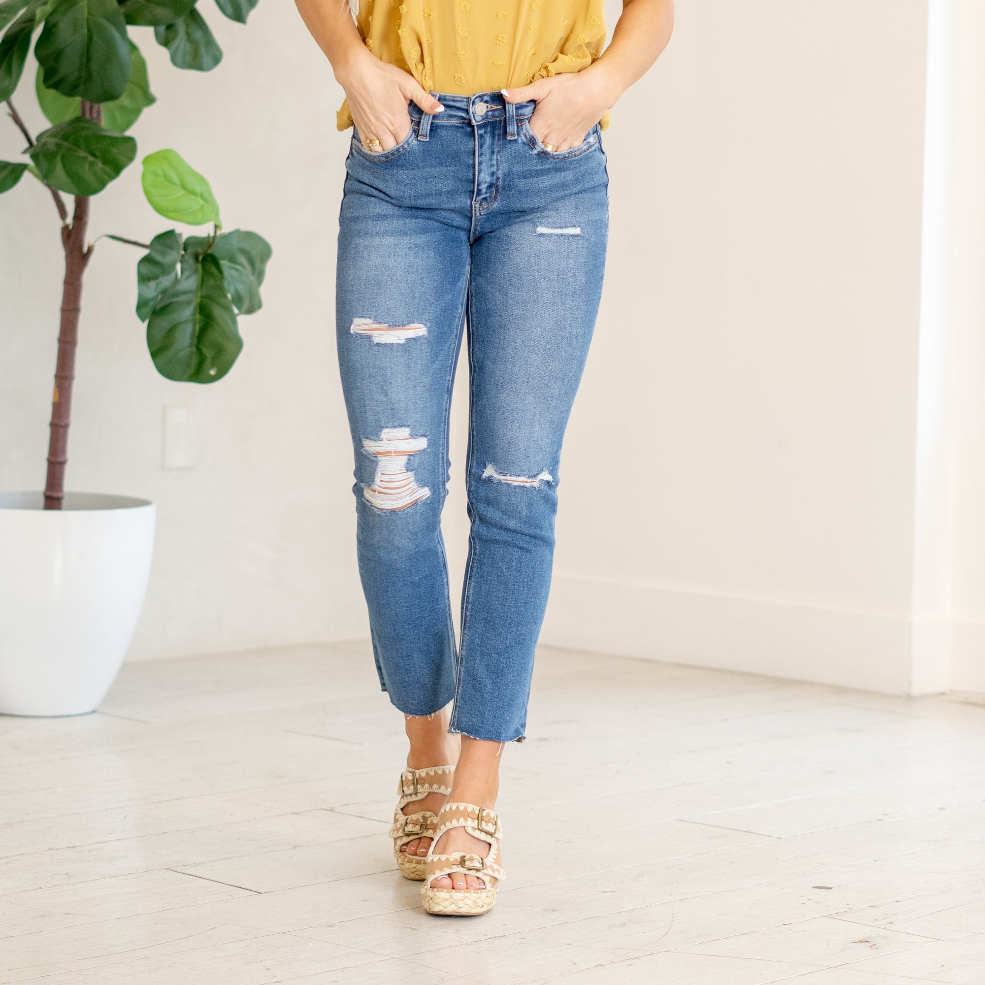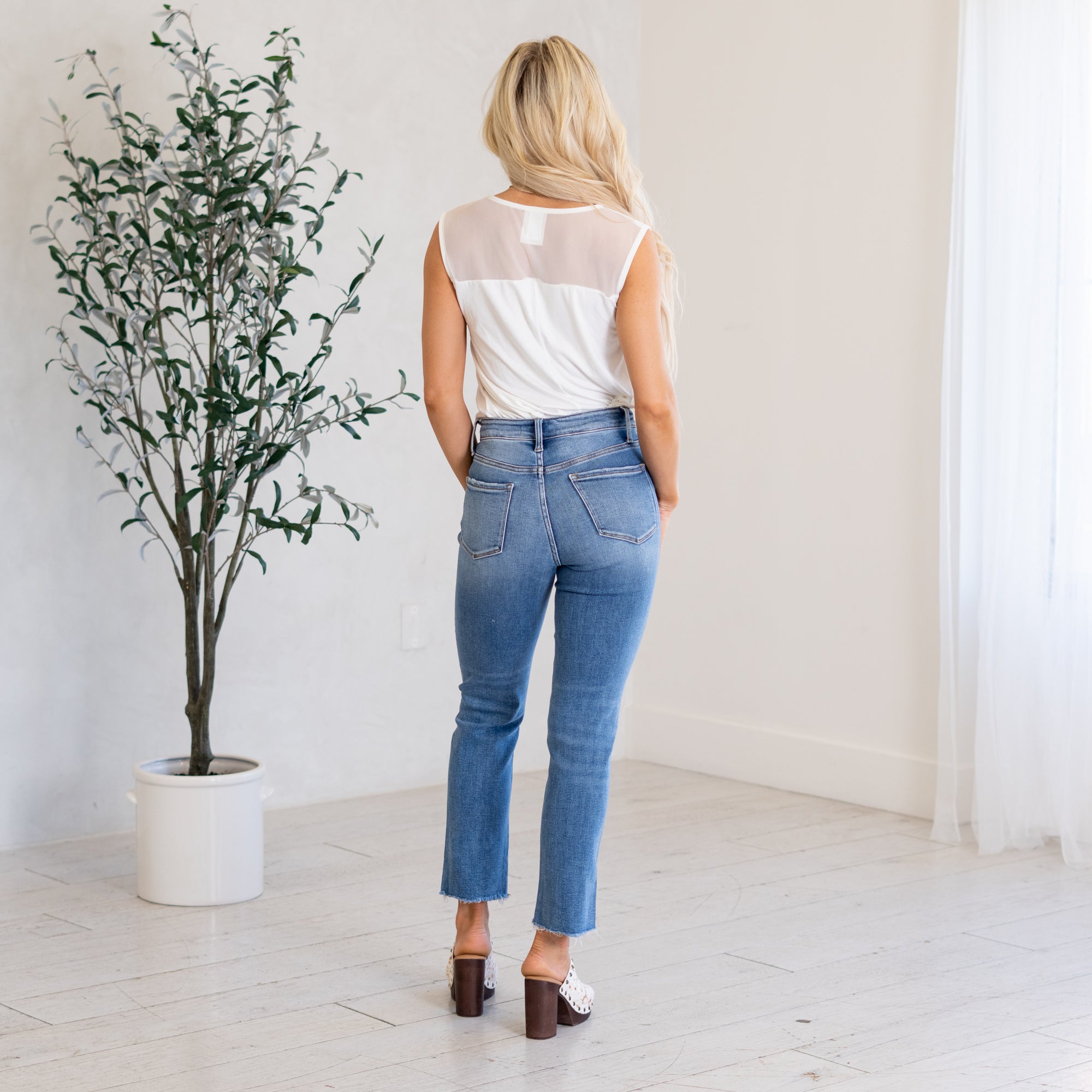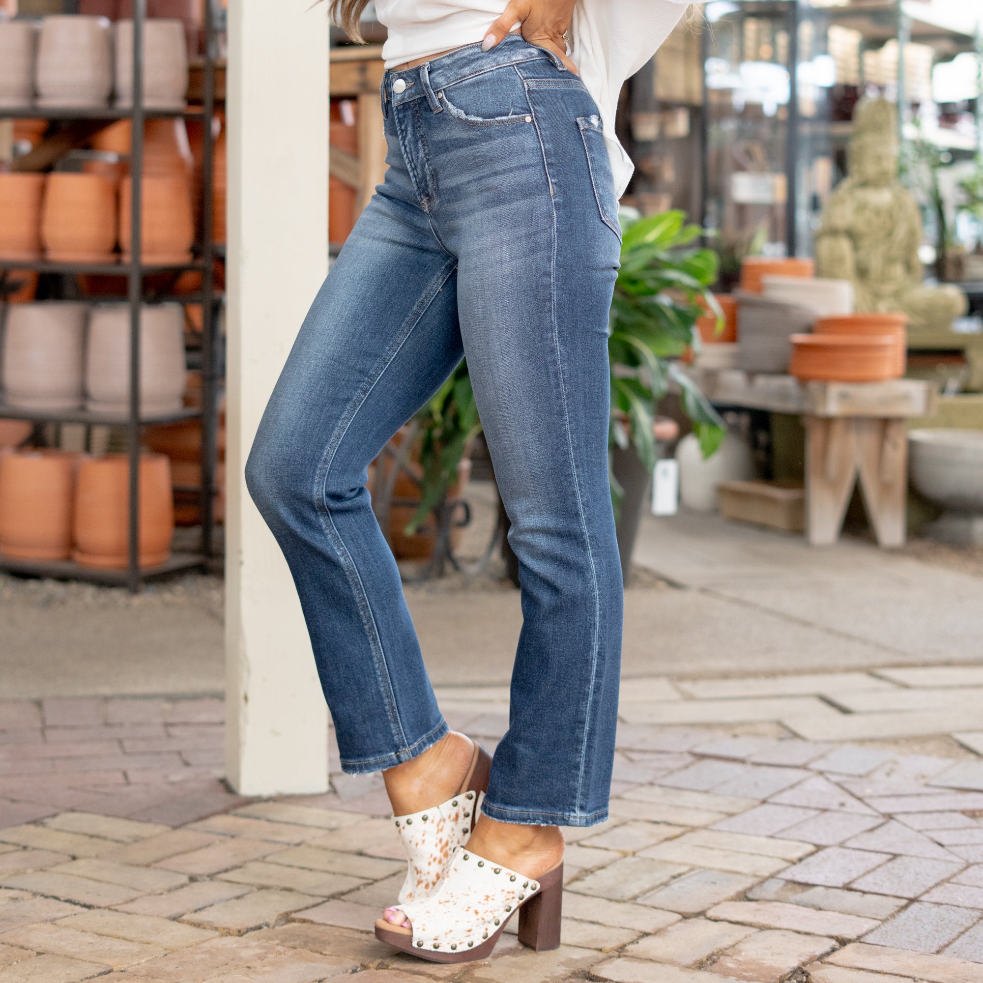 VERVET Love So True High Rise Cropped Hem Straight Leg Jeans Medium Blue Wash