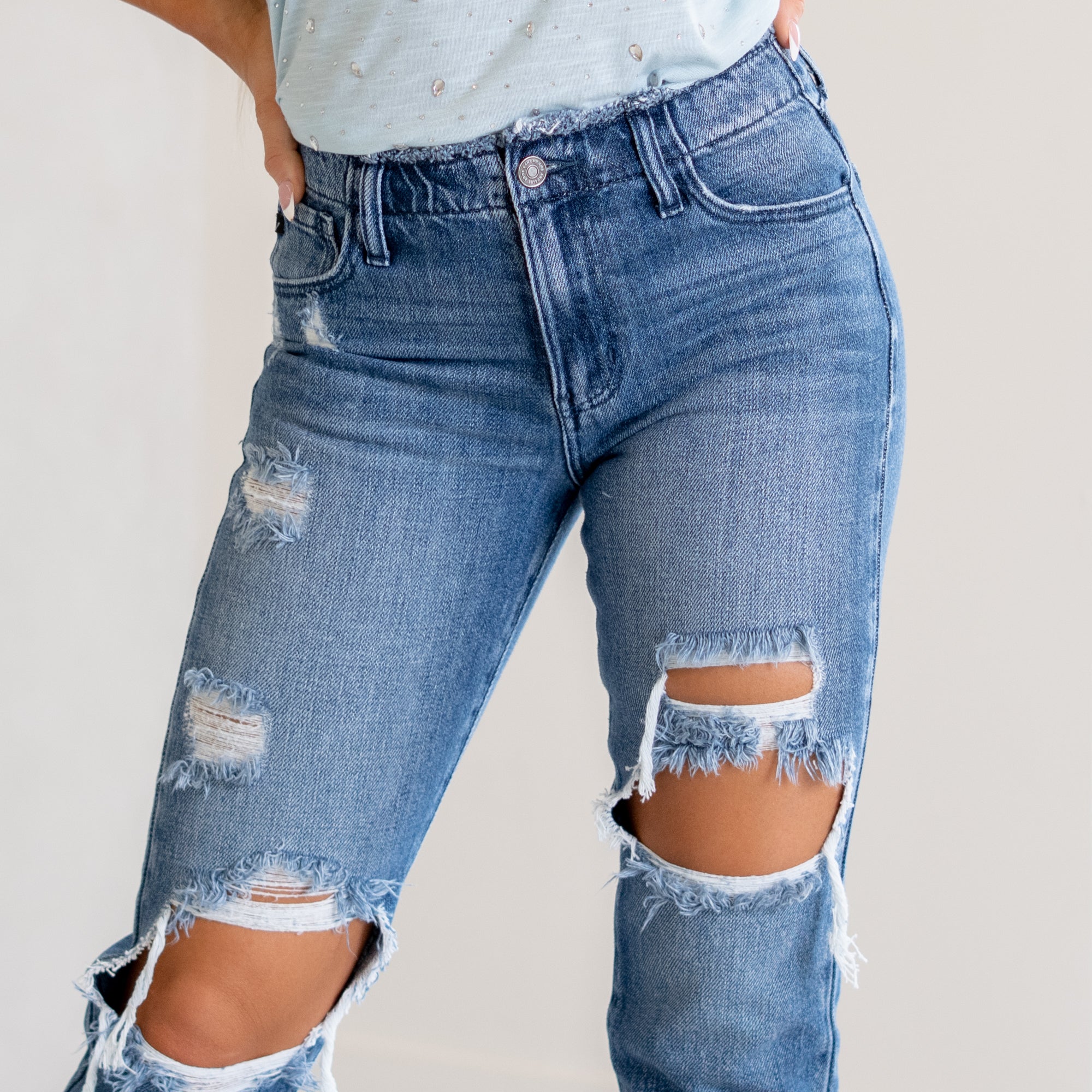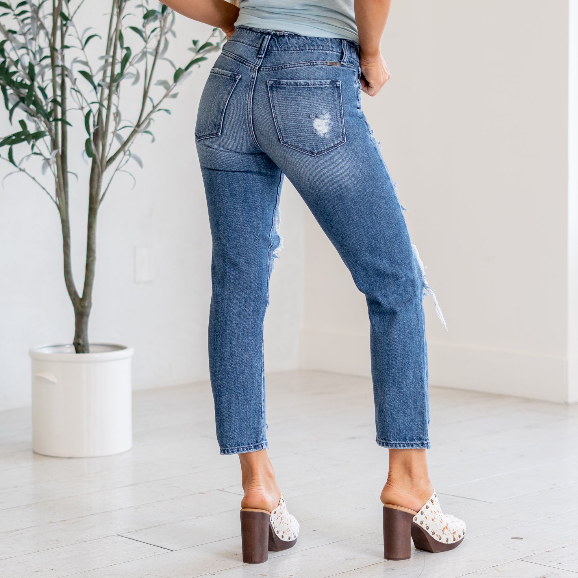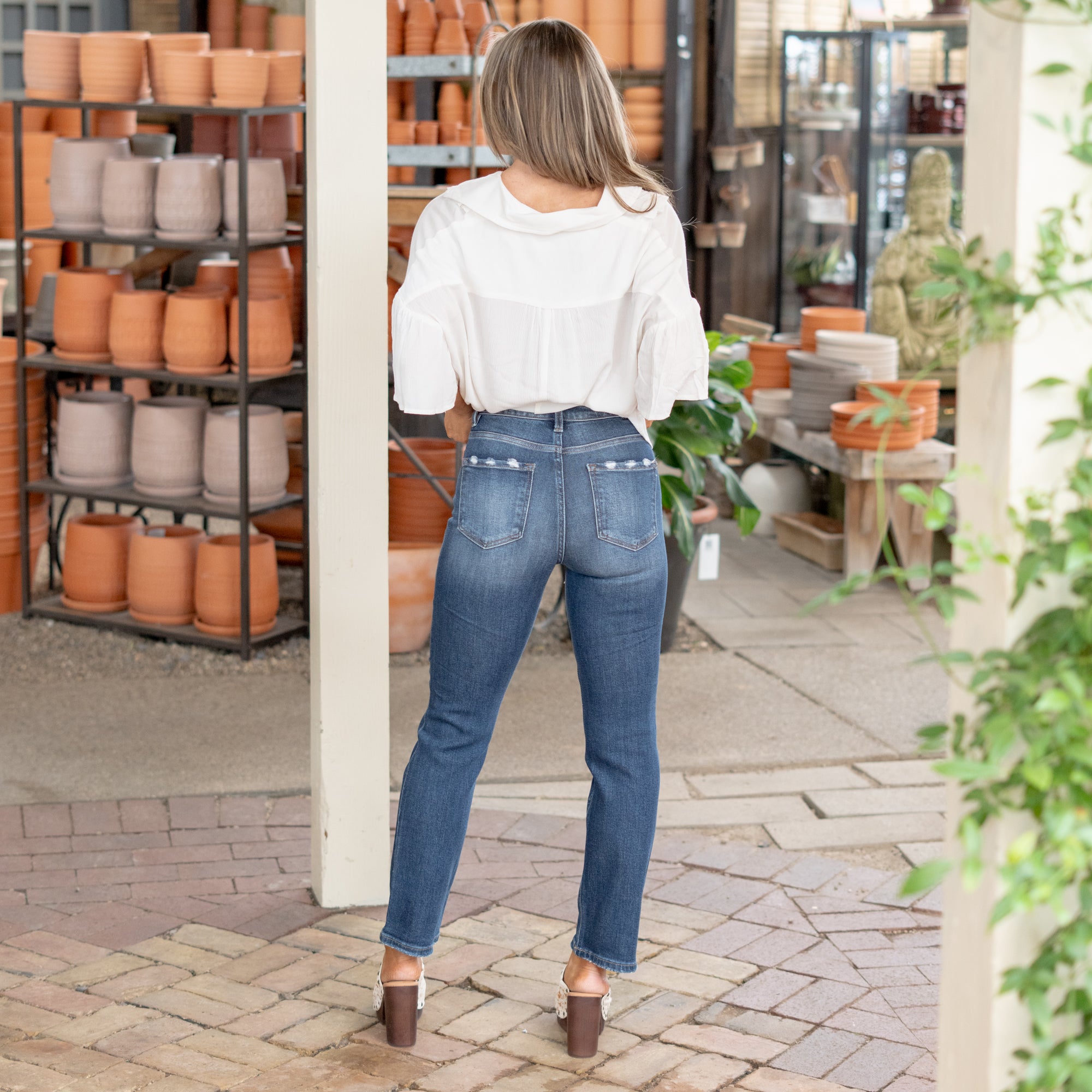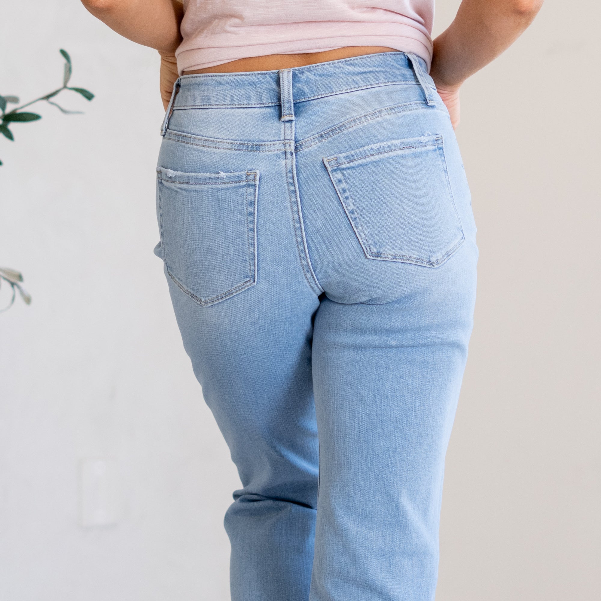 VERVET Love So True High Rise Cropped Hem Straight Leg Jeans Medium Blue Wash