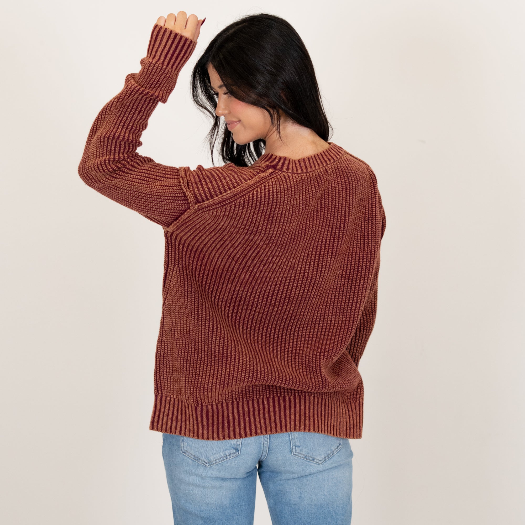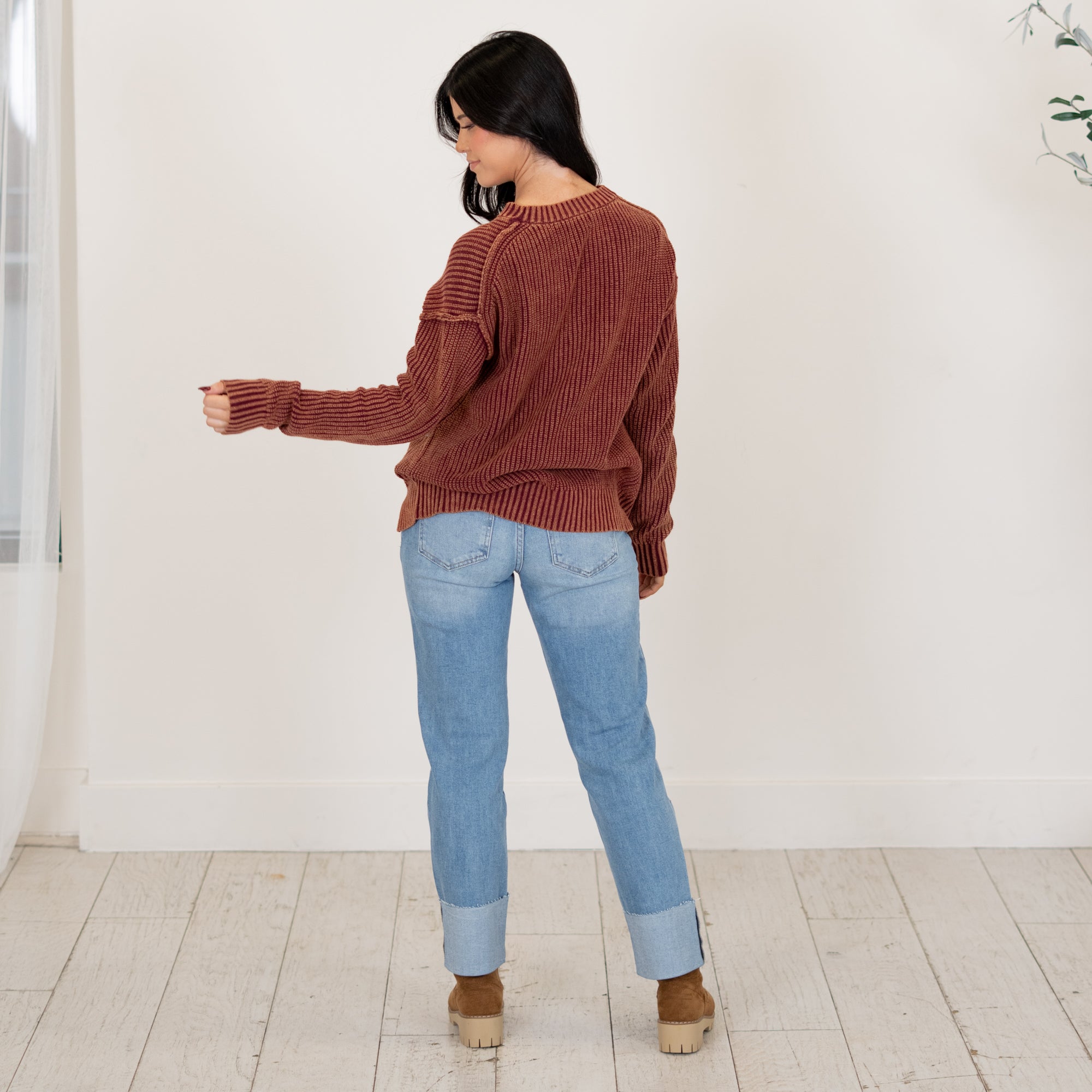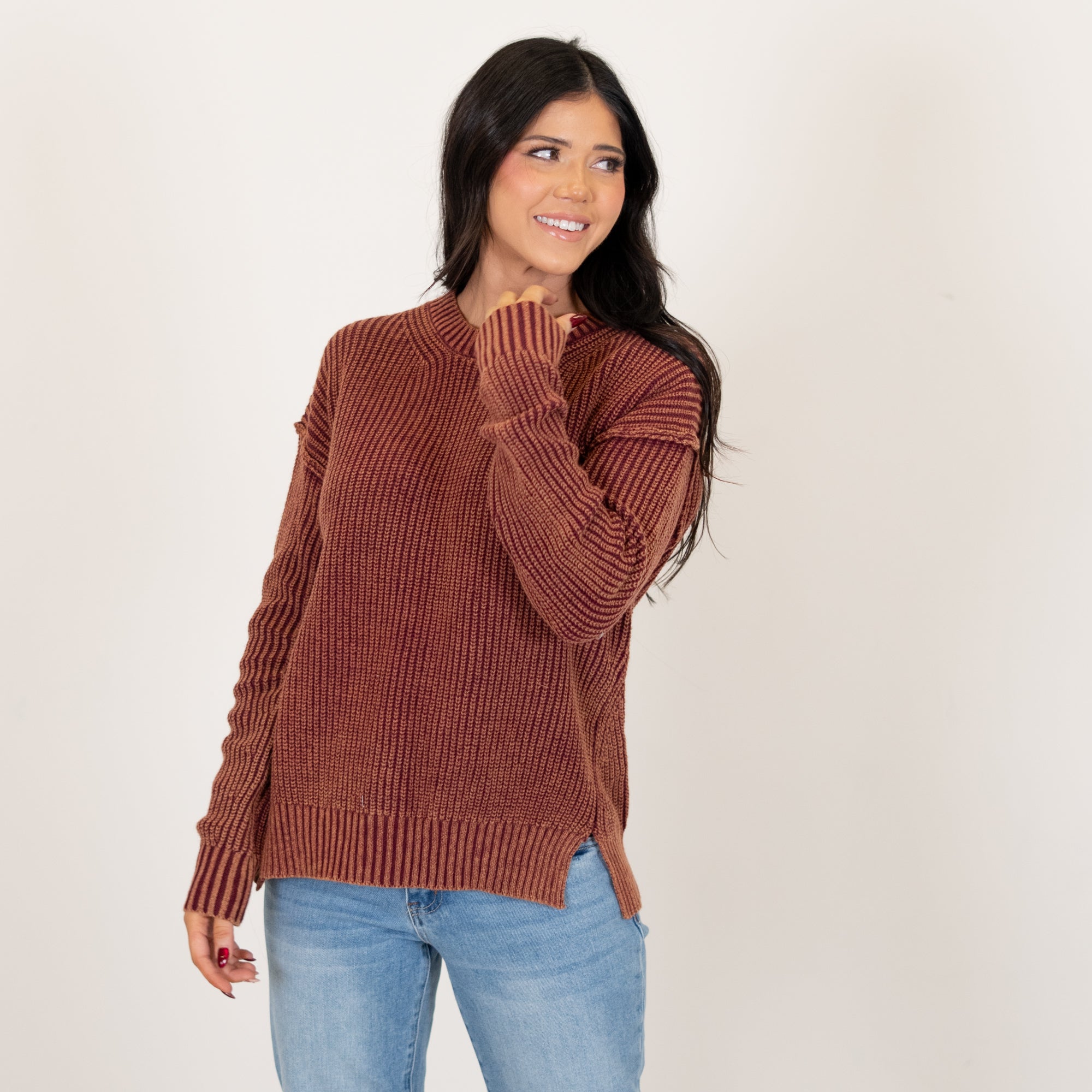 This split hem crew neck sweater is designed with an easy oversized fit for effortless, everyday wear. The relaxed silhouette drapes comfortably while the split hem adds subtle movement and dimension. A go-to layer that styles beautifully with denim for a cozy yet polished look.