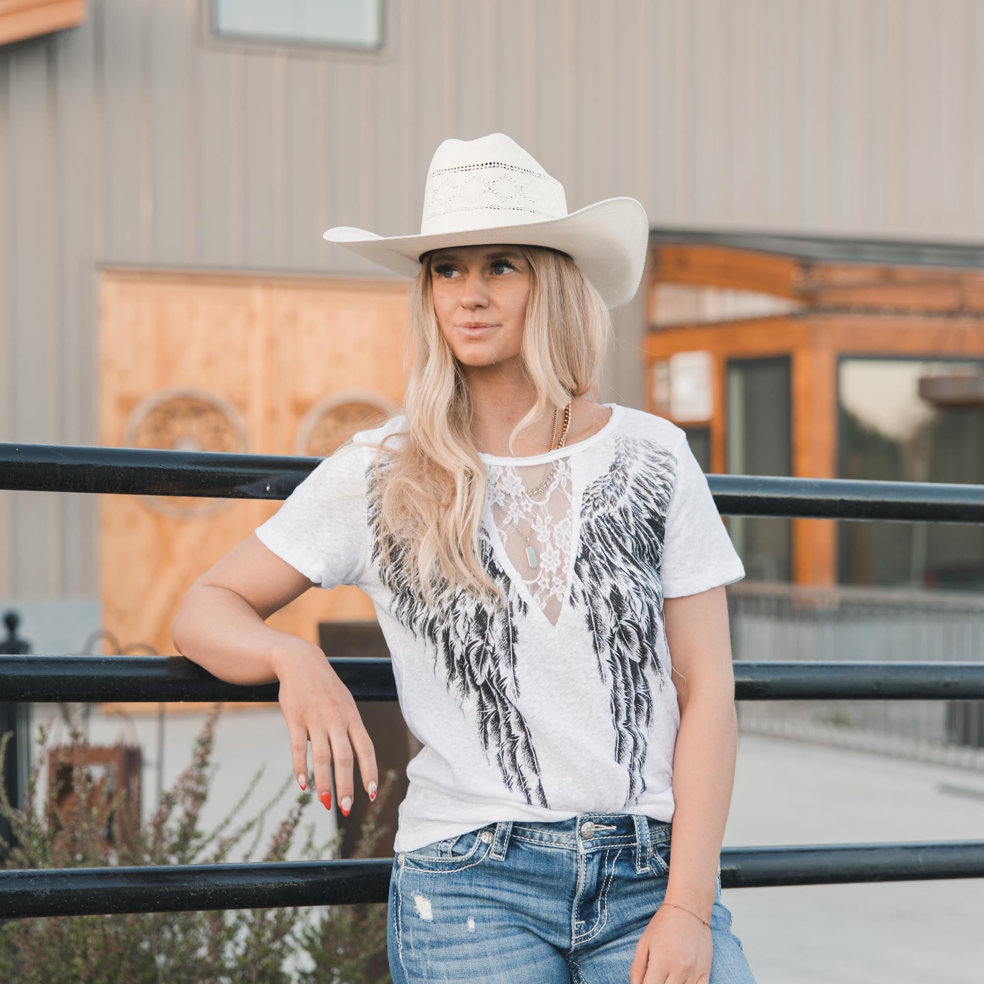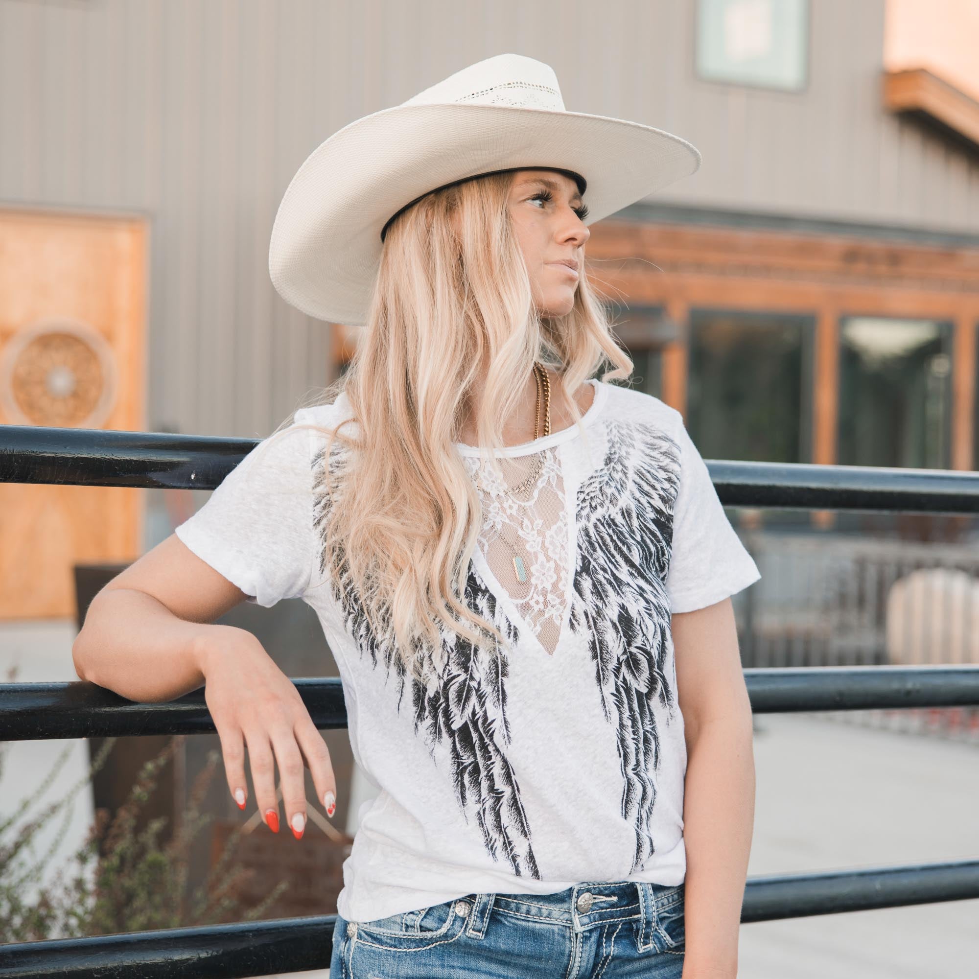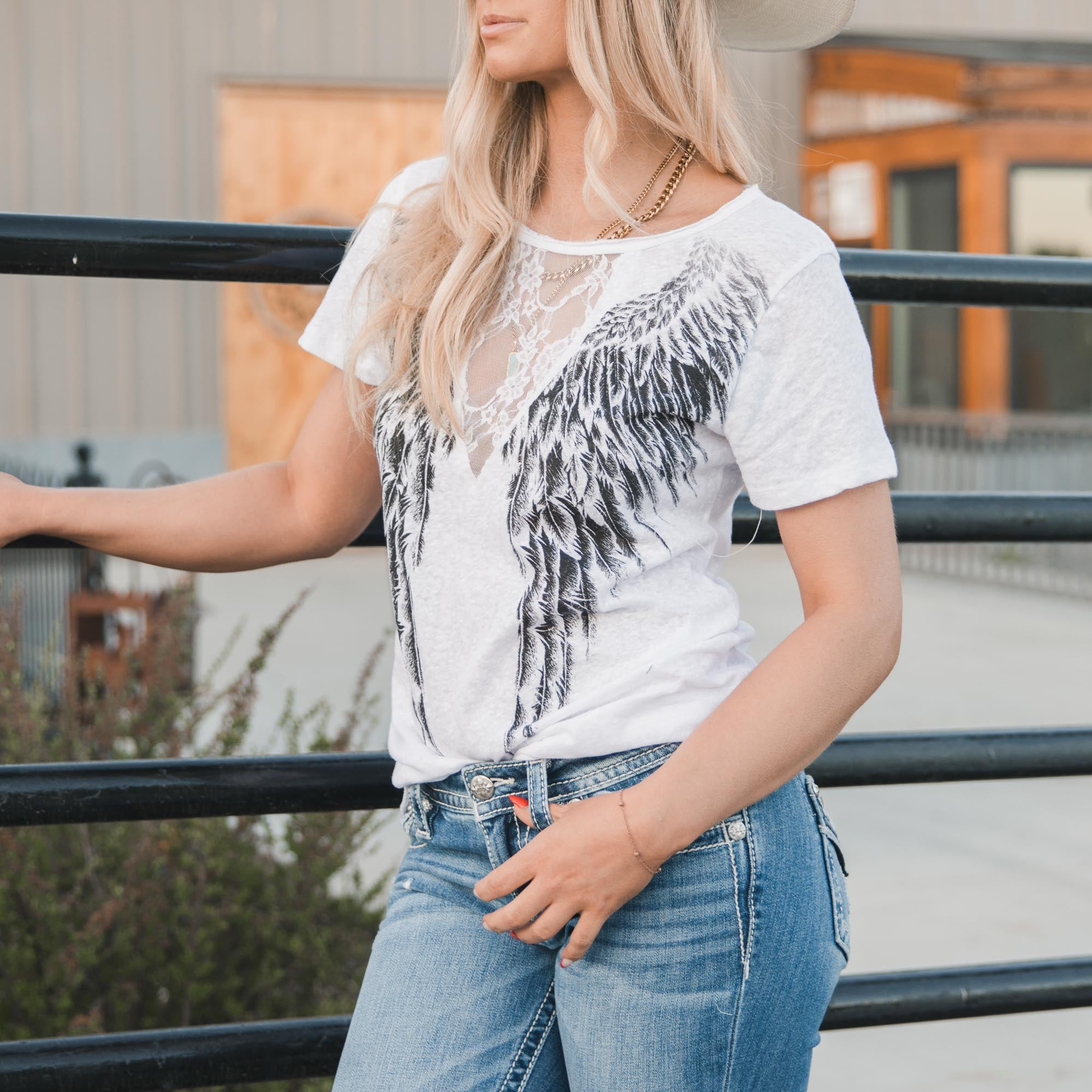 Wings & Lace Cut Out T-Shirt