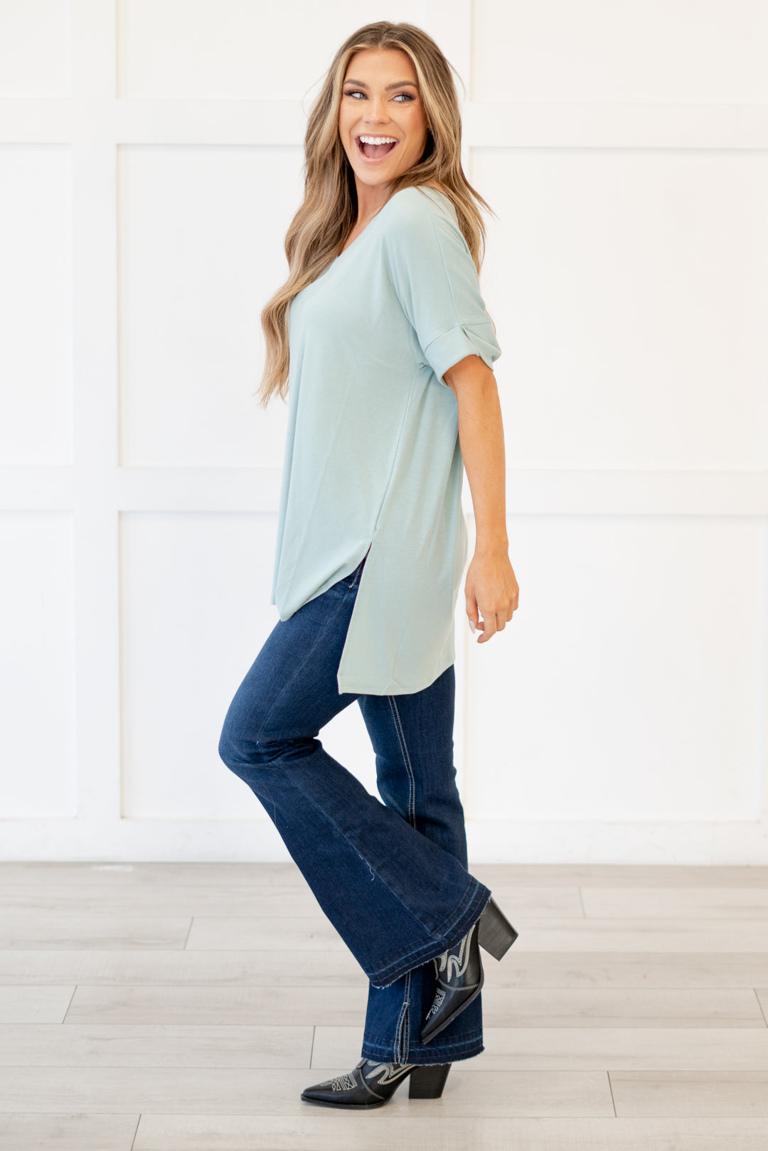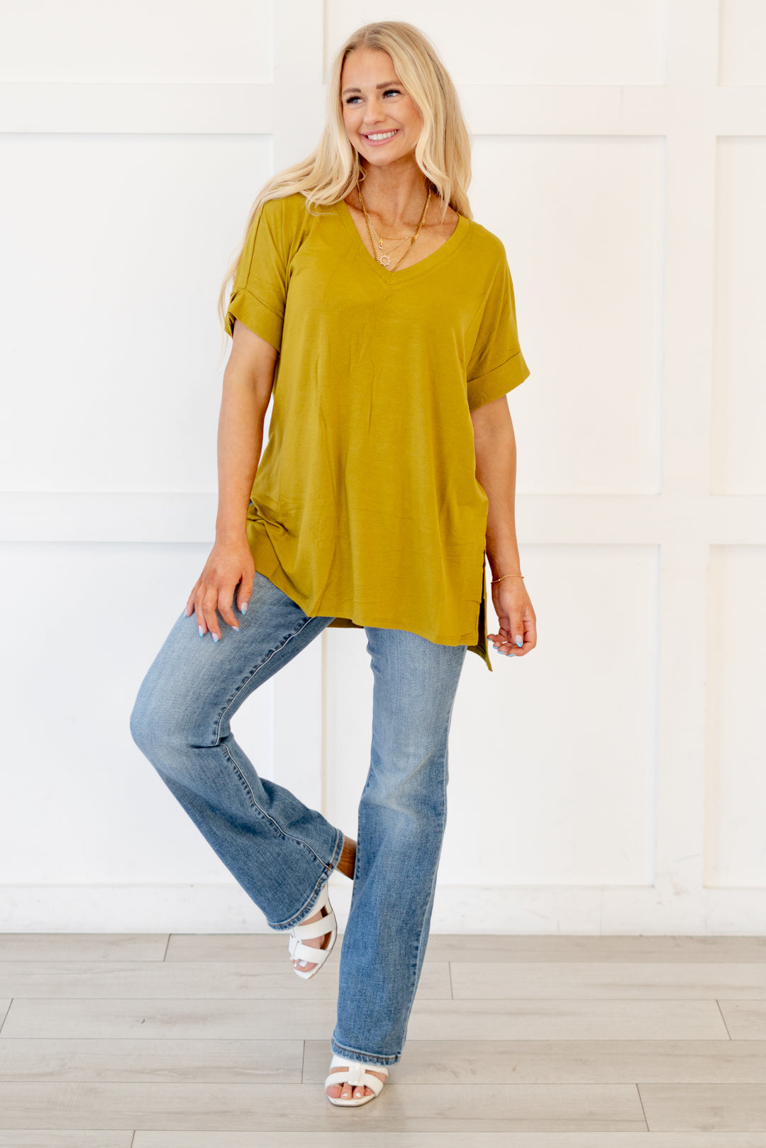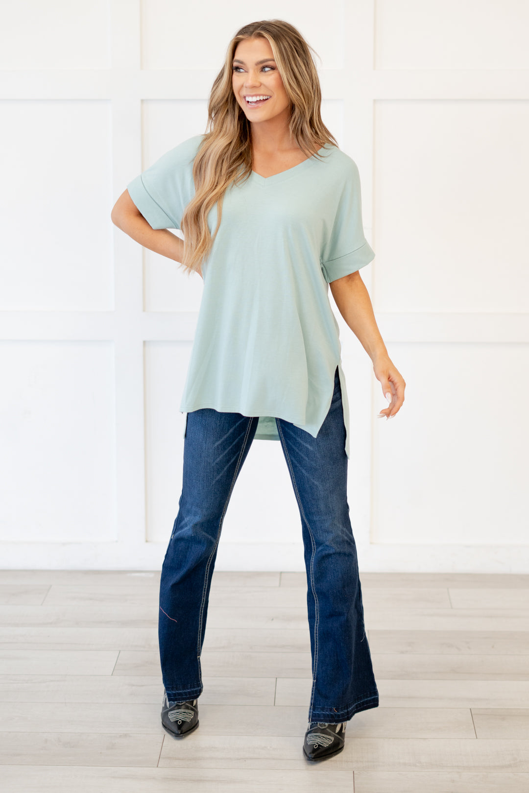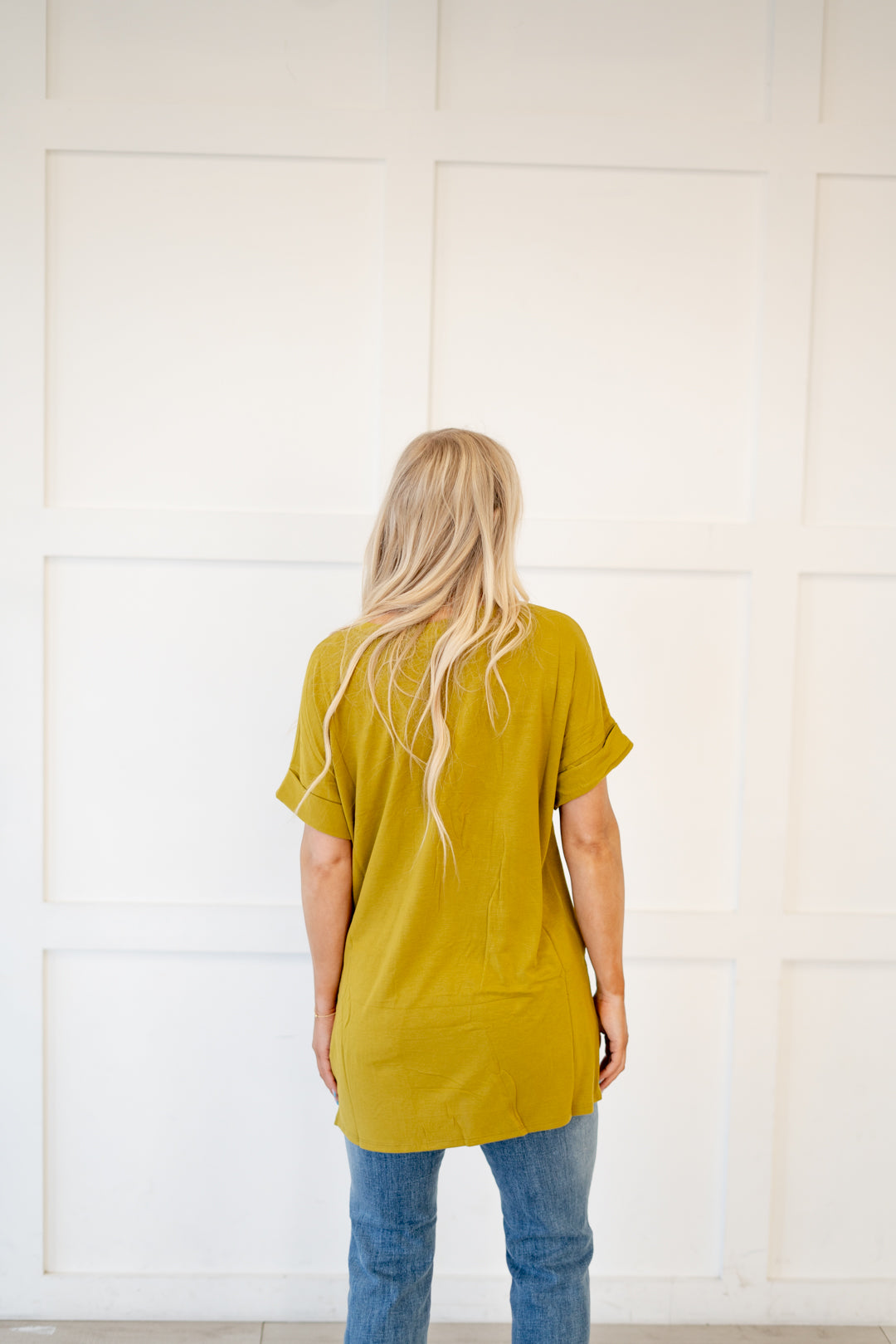 The absolutely perfect v neck tee with oversized folded sleeves.