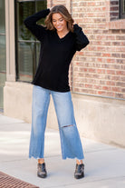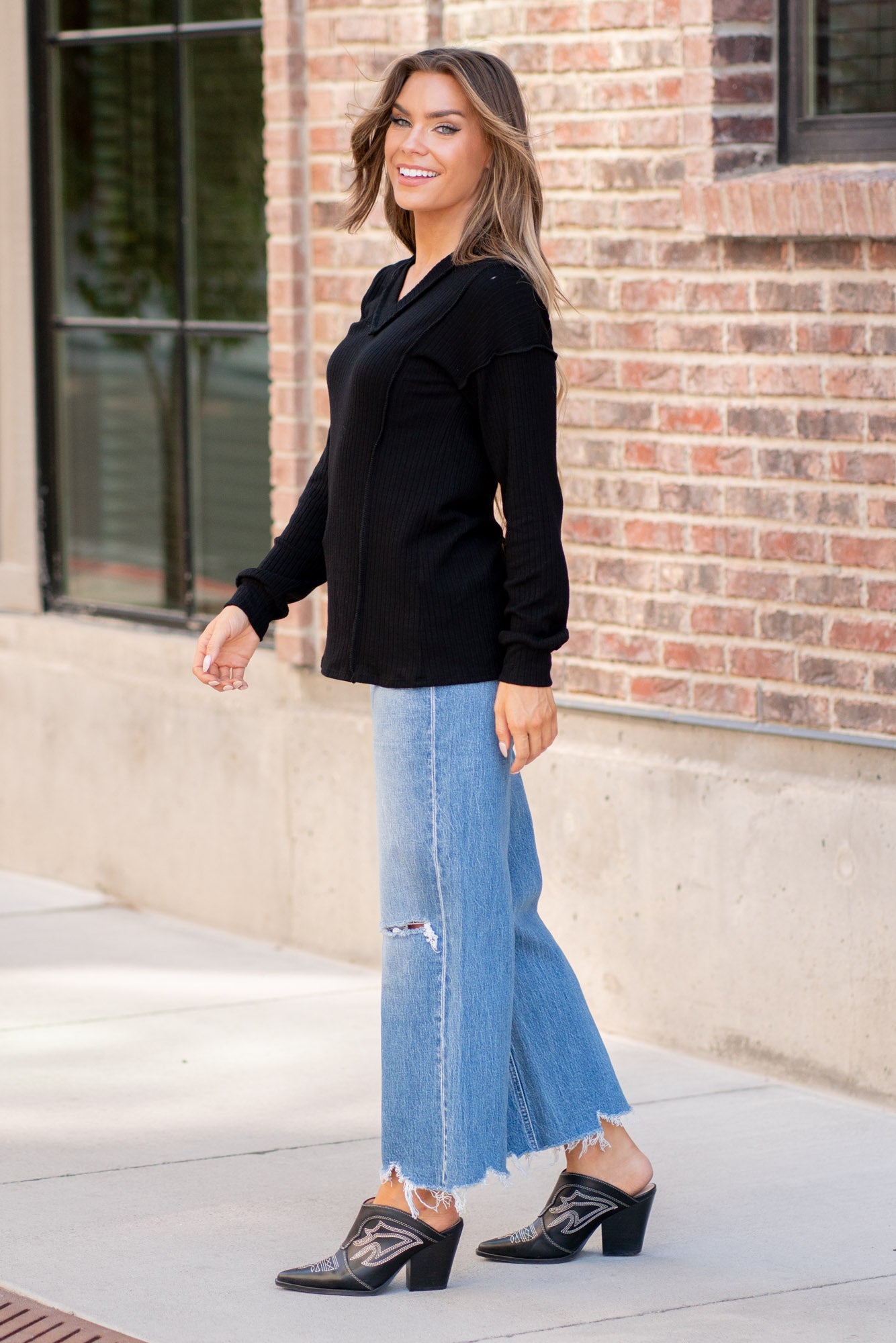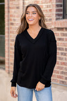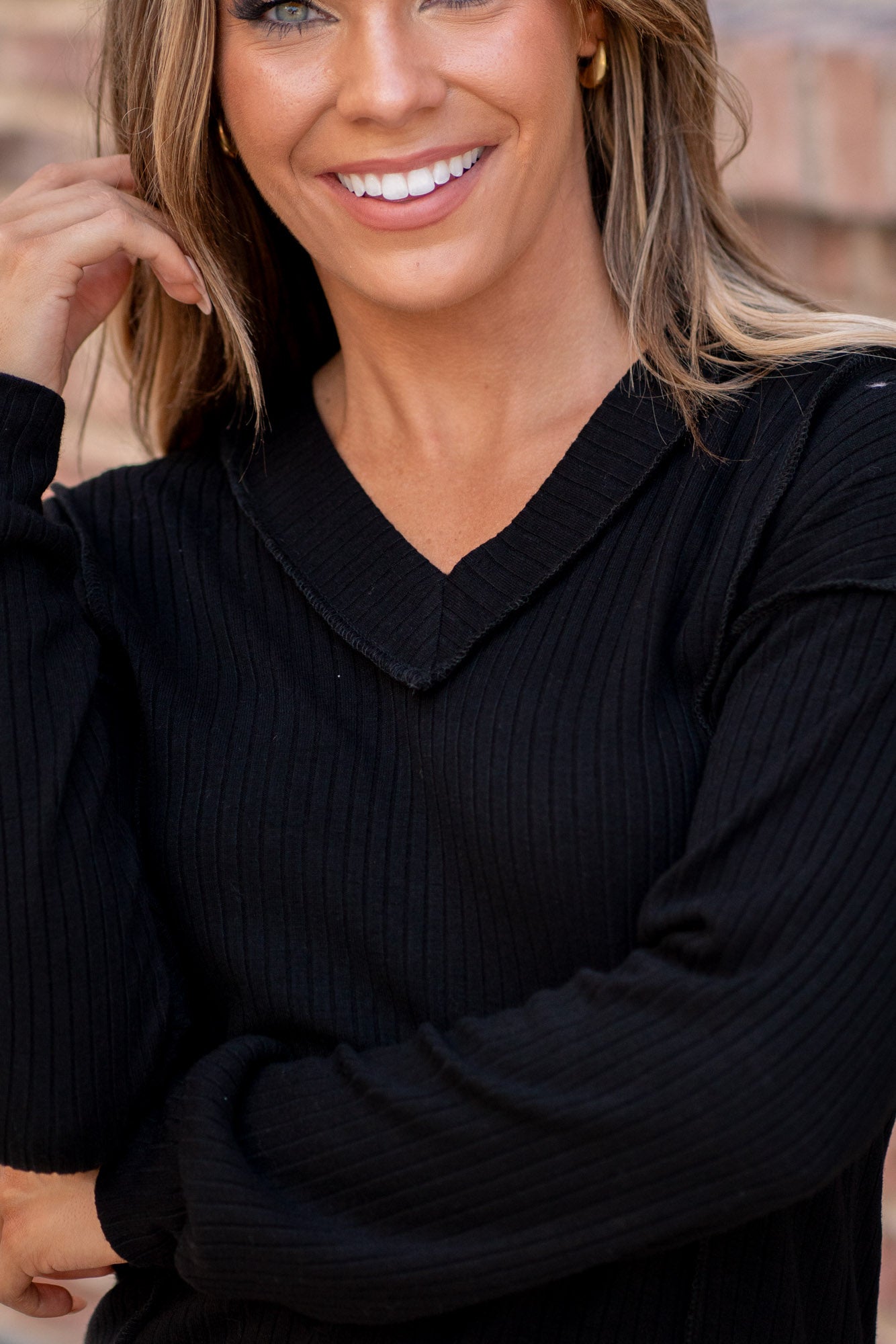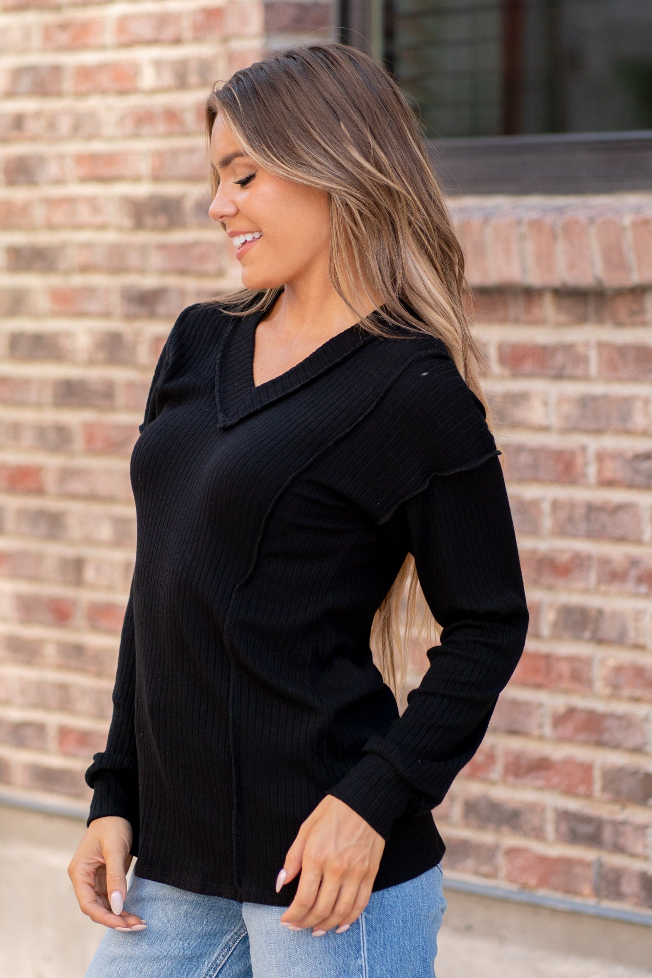 Ribbed V-Neck Exposed Seam Top Regular & Plus Sizes