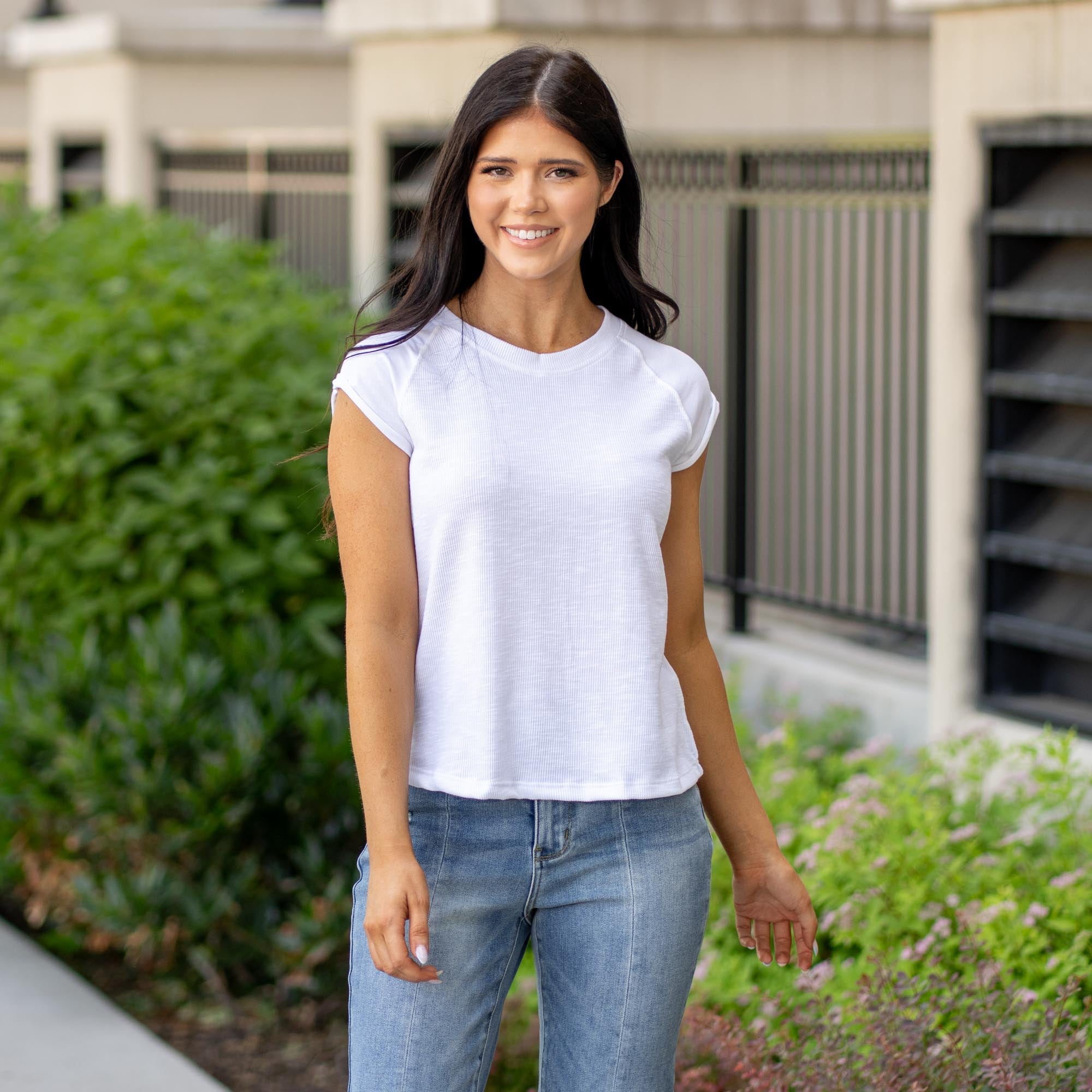 Washed Jersey And Rib Muscle Top T-Shirt