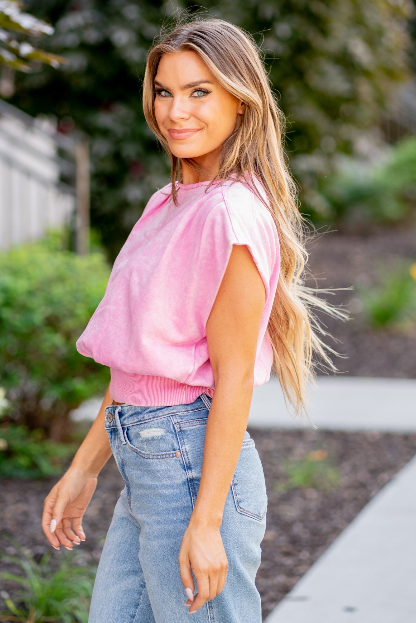 Washed Boat Neck Bottom Banded Dolman Sleeve Top