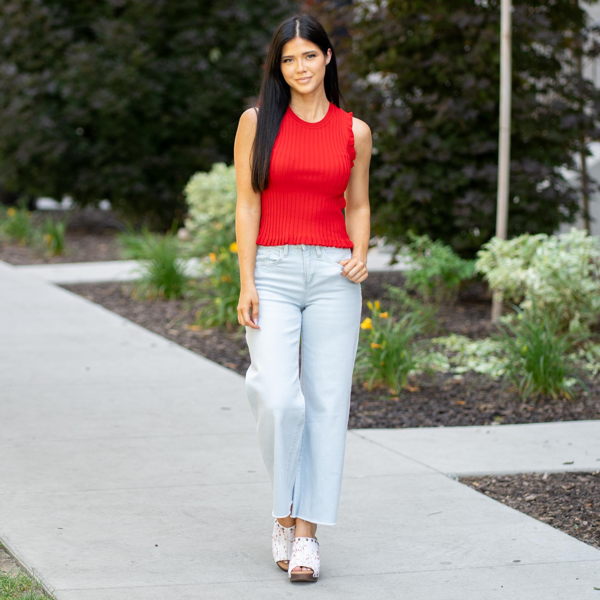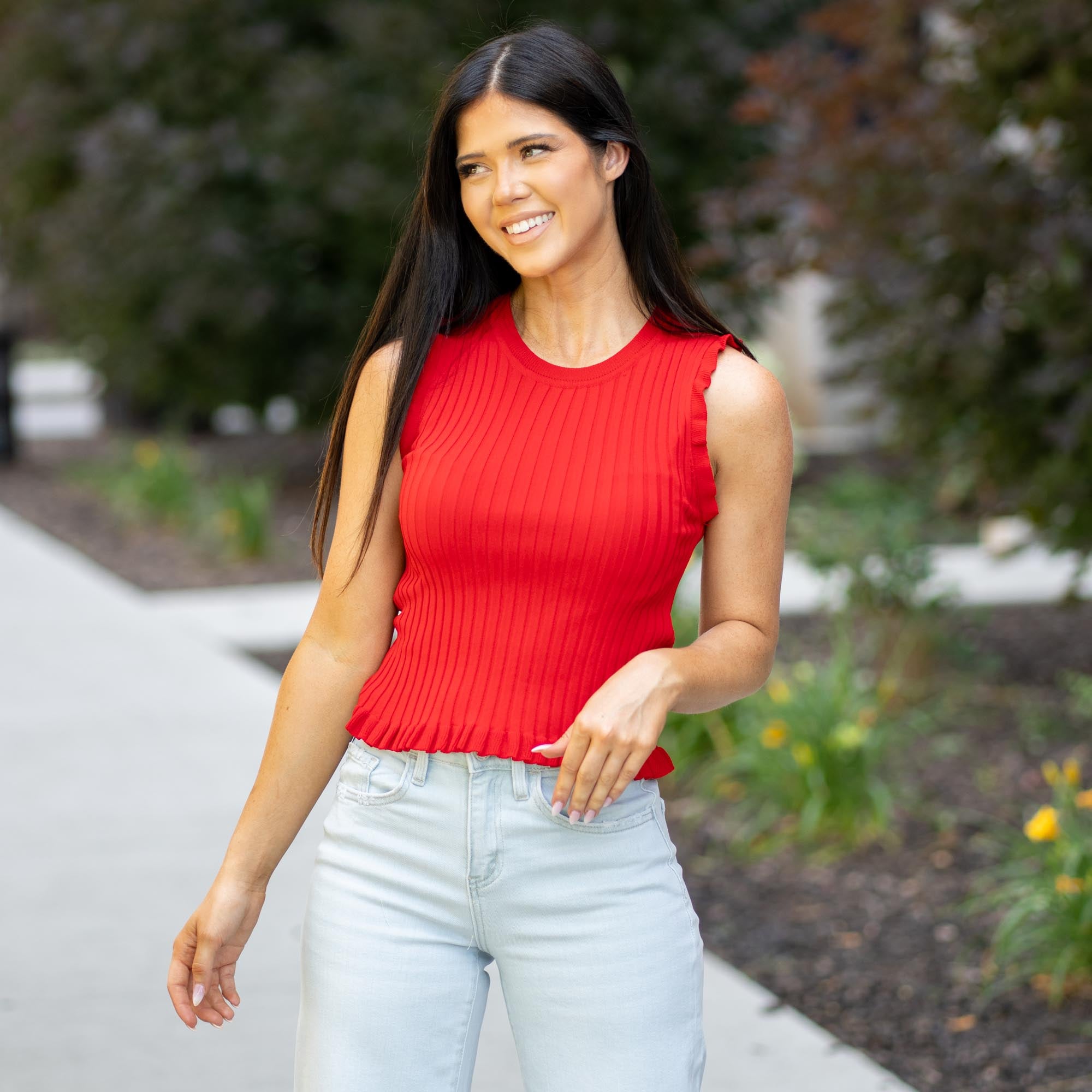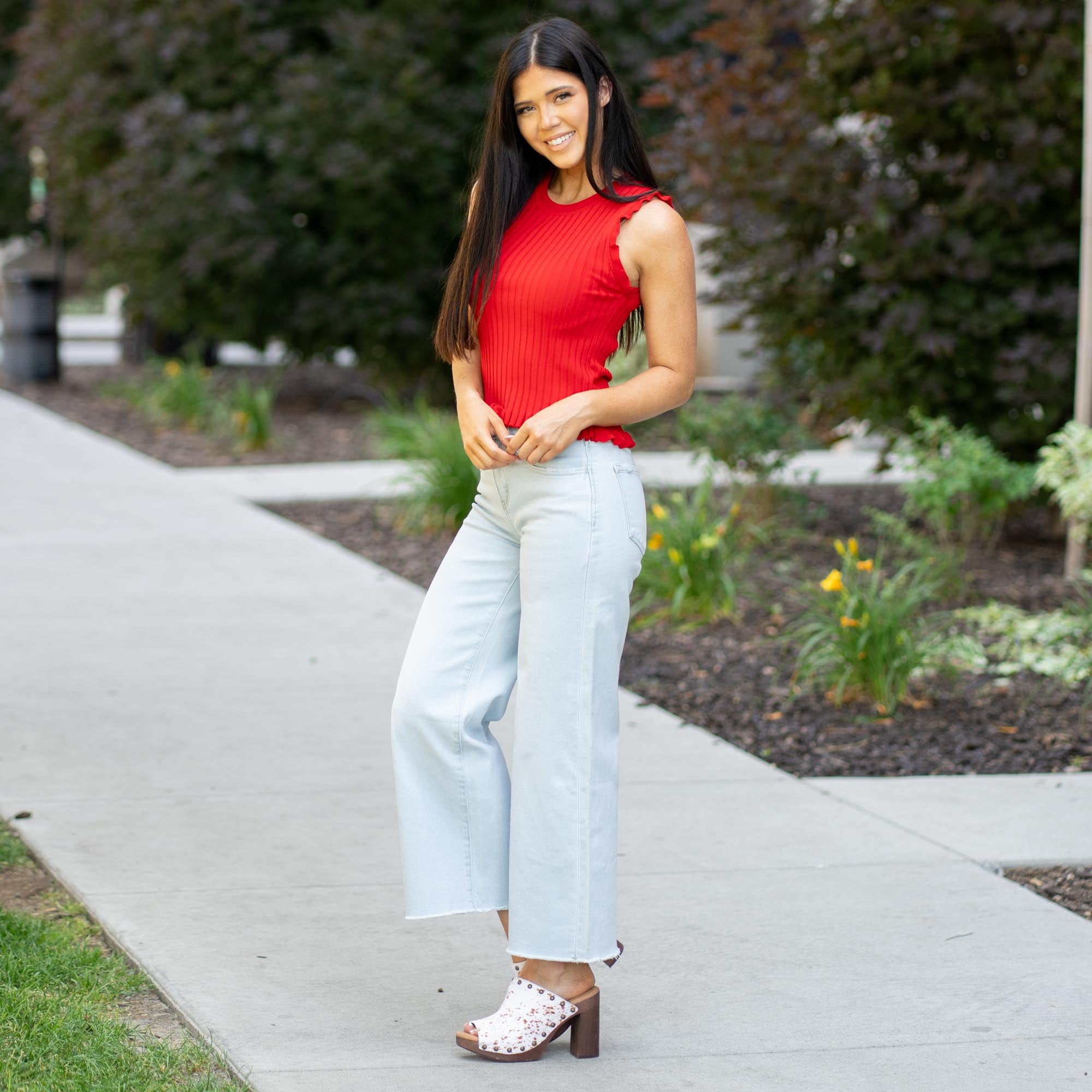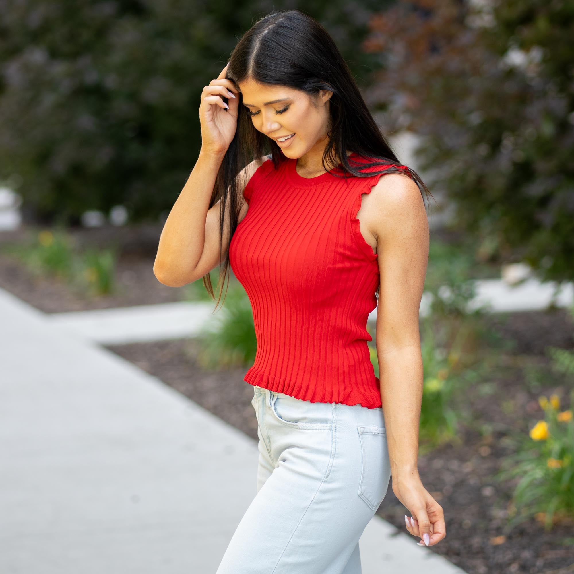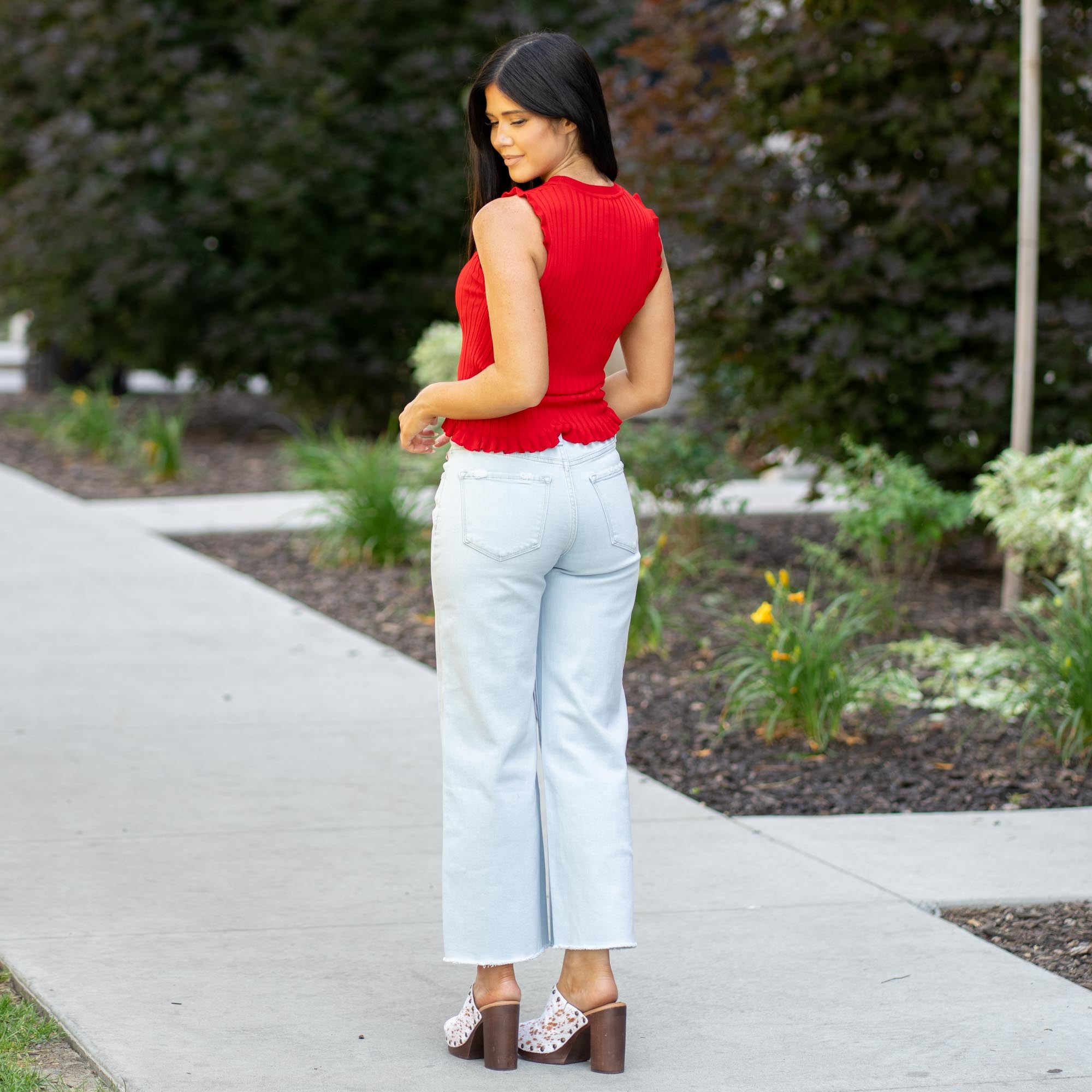 Hem & Thread Celeste Lace Edge Pointelle Knit Top Bordeaux