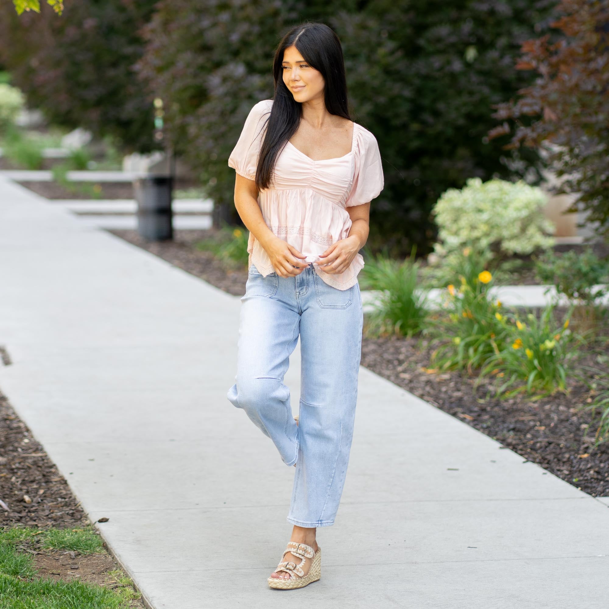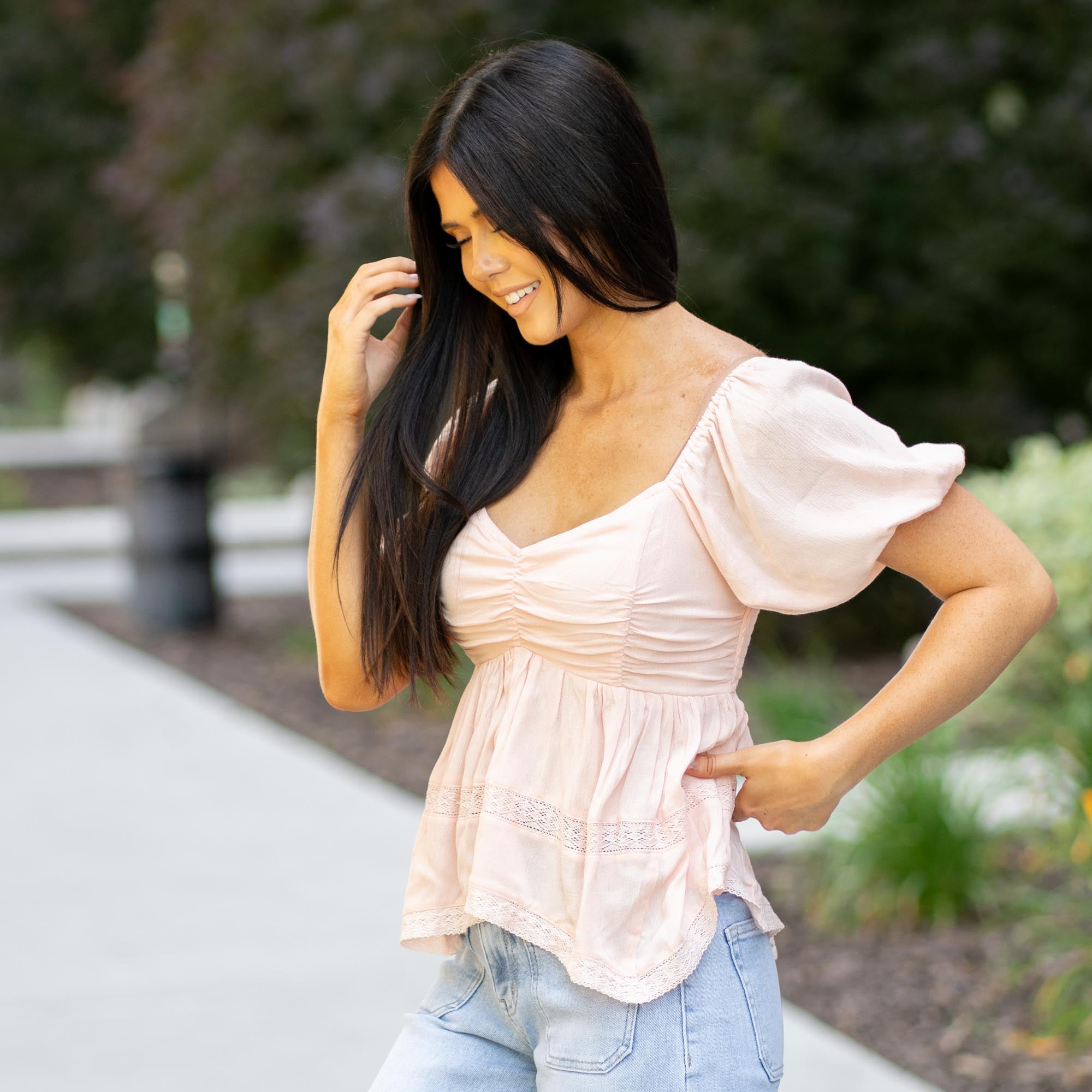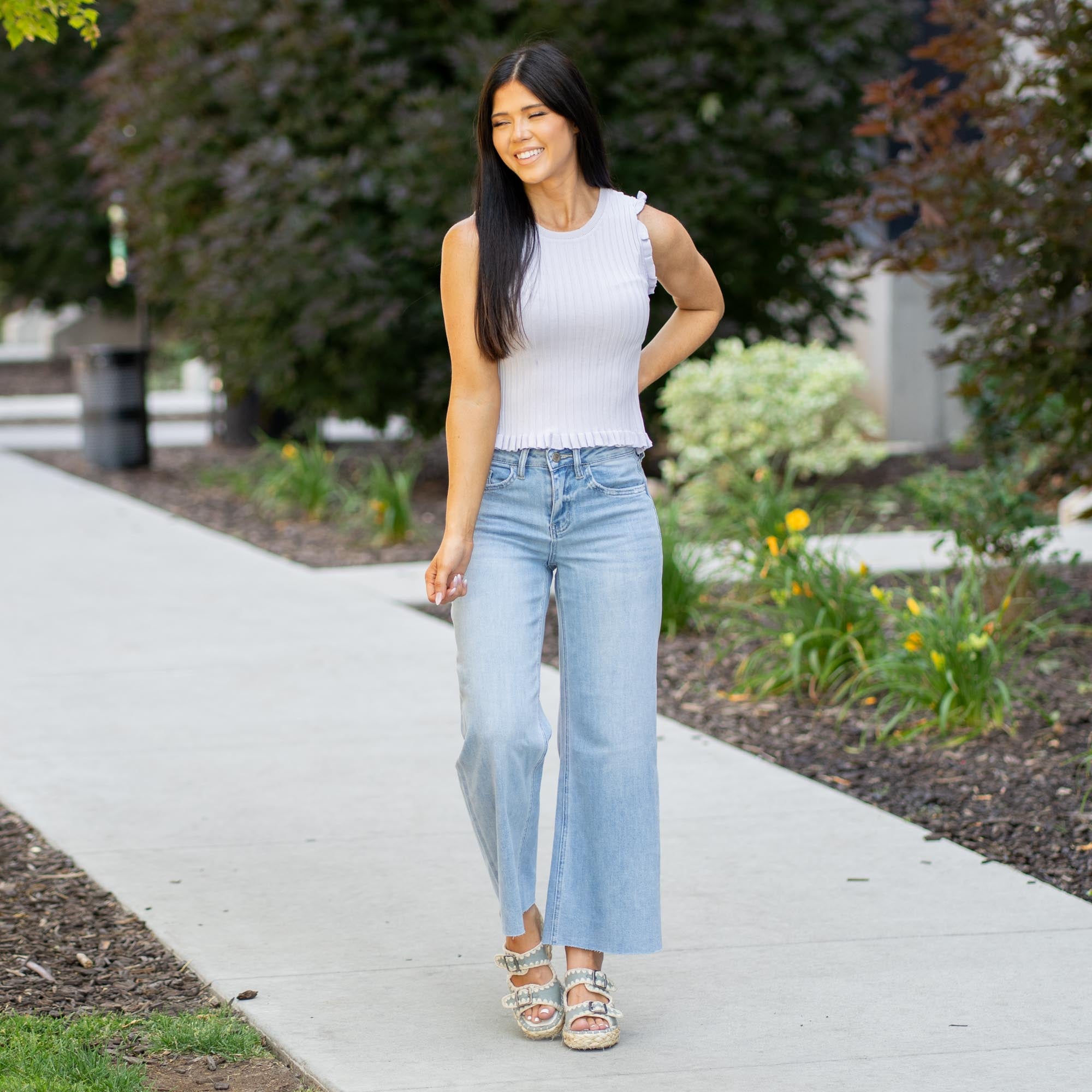 Hem & Thread Celeste Lace Edge Pointelle Knit Top Grey