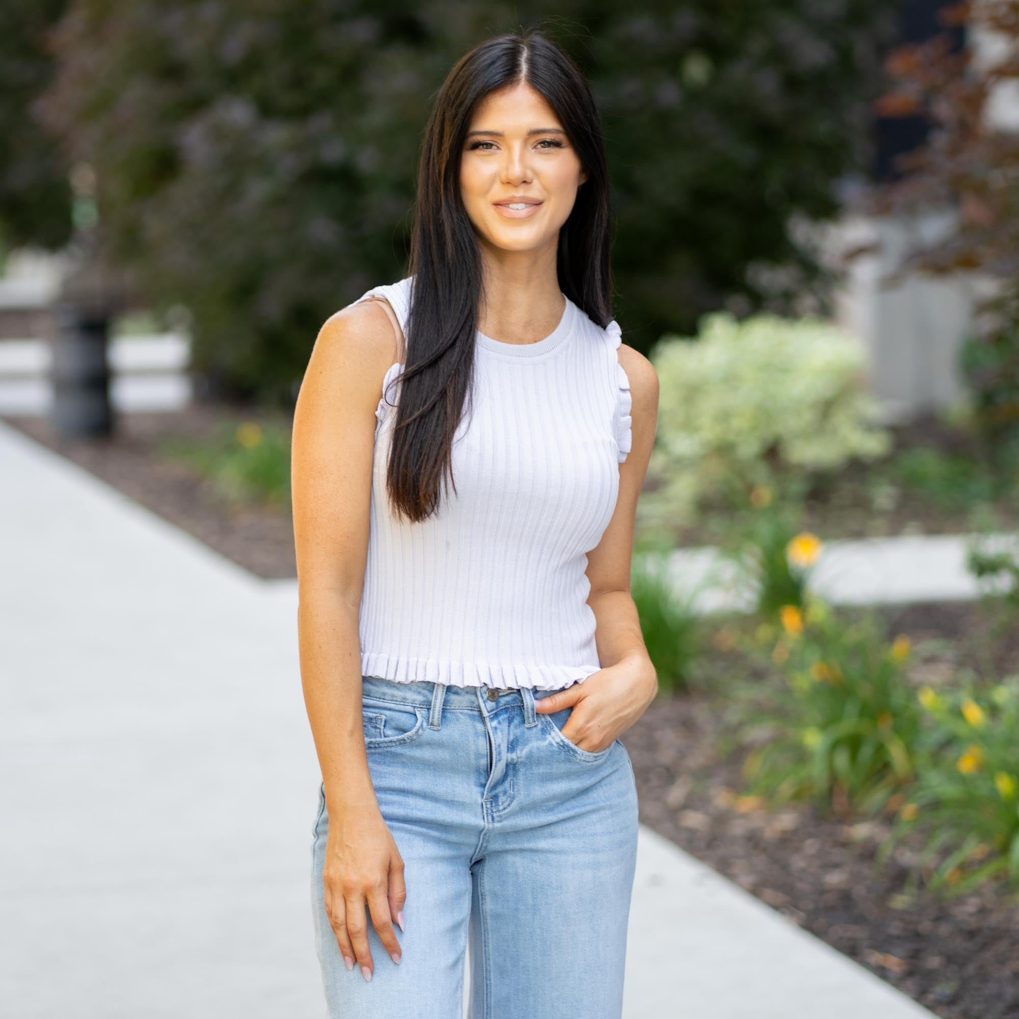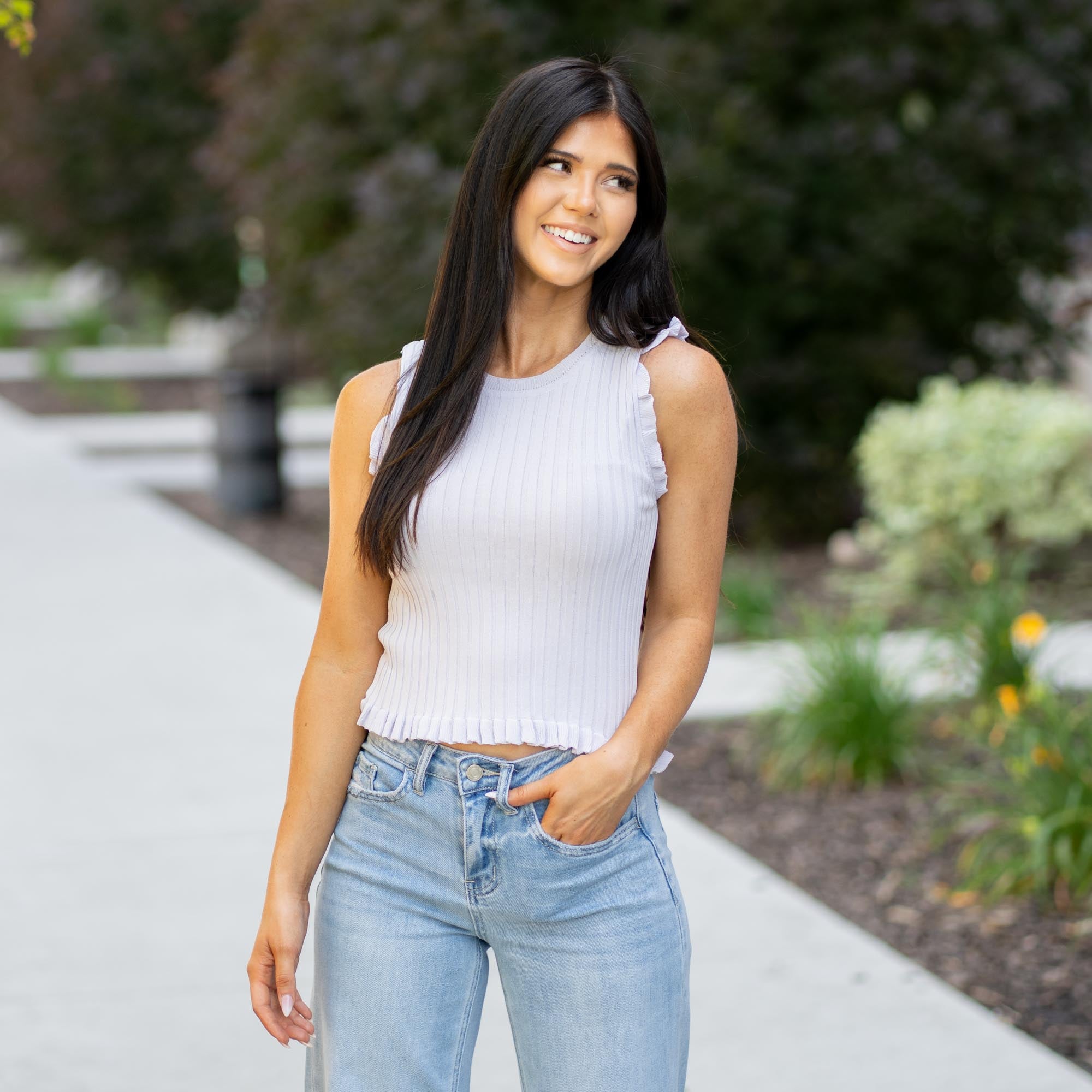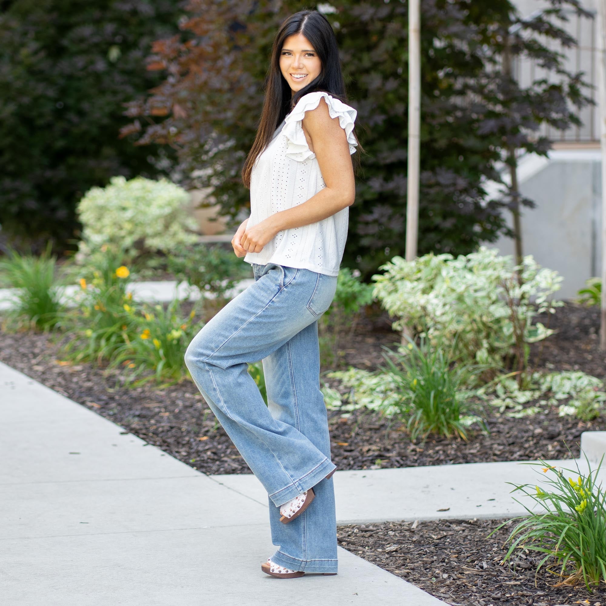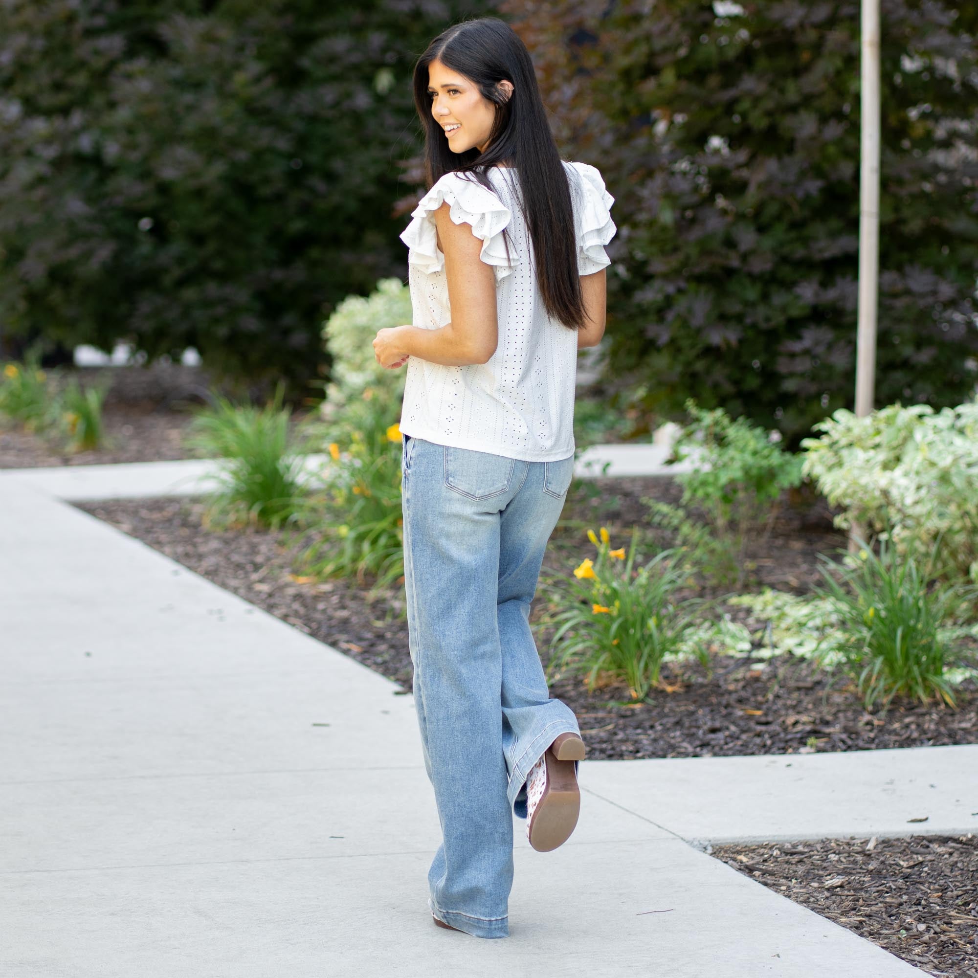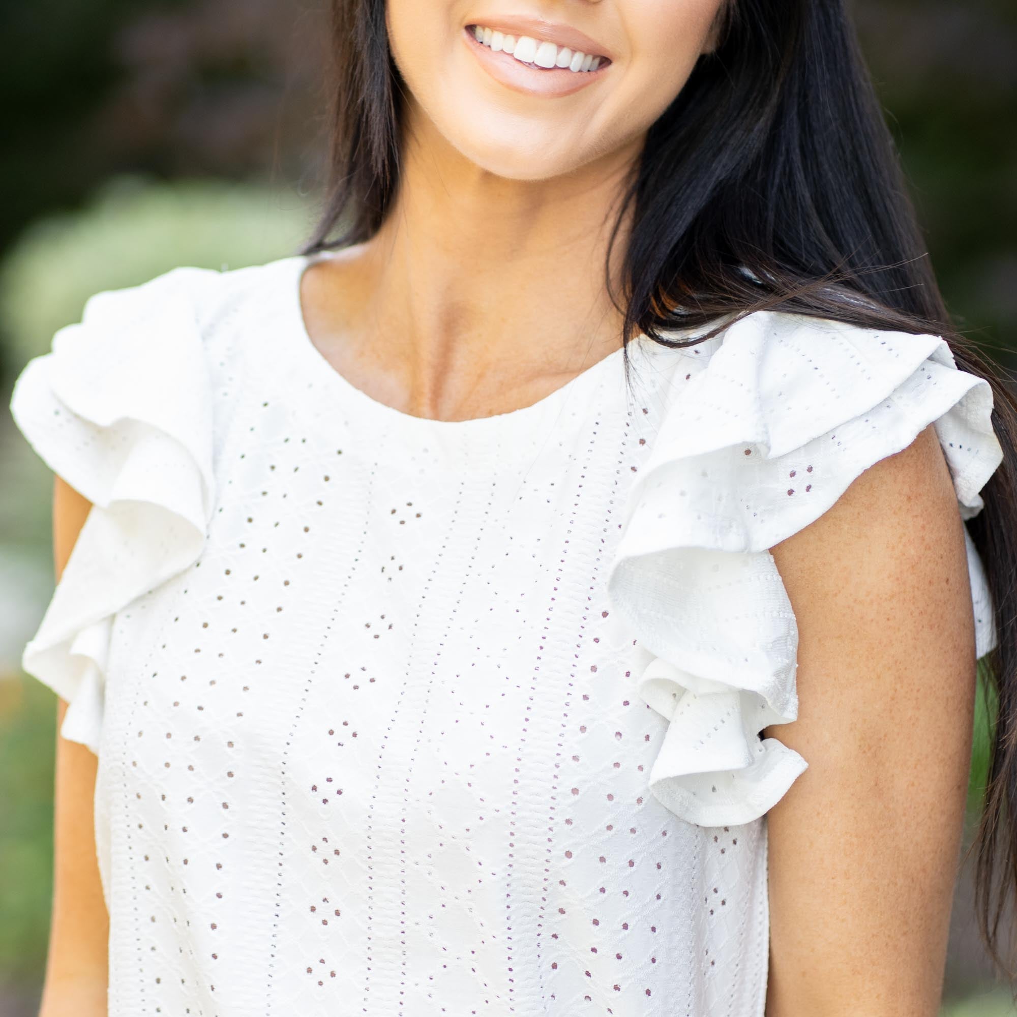 Hem & Thread Celeste Lace Edge Pointelle Knit Top Off White