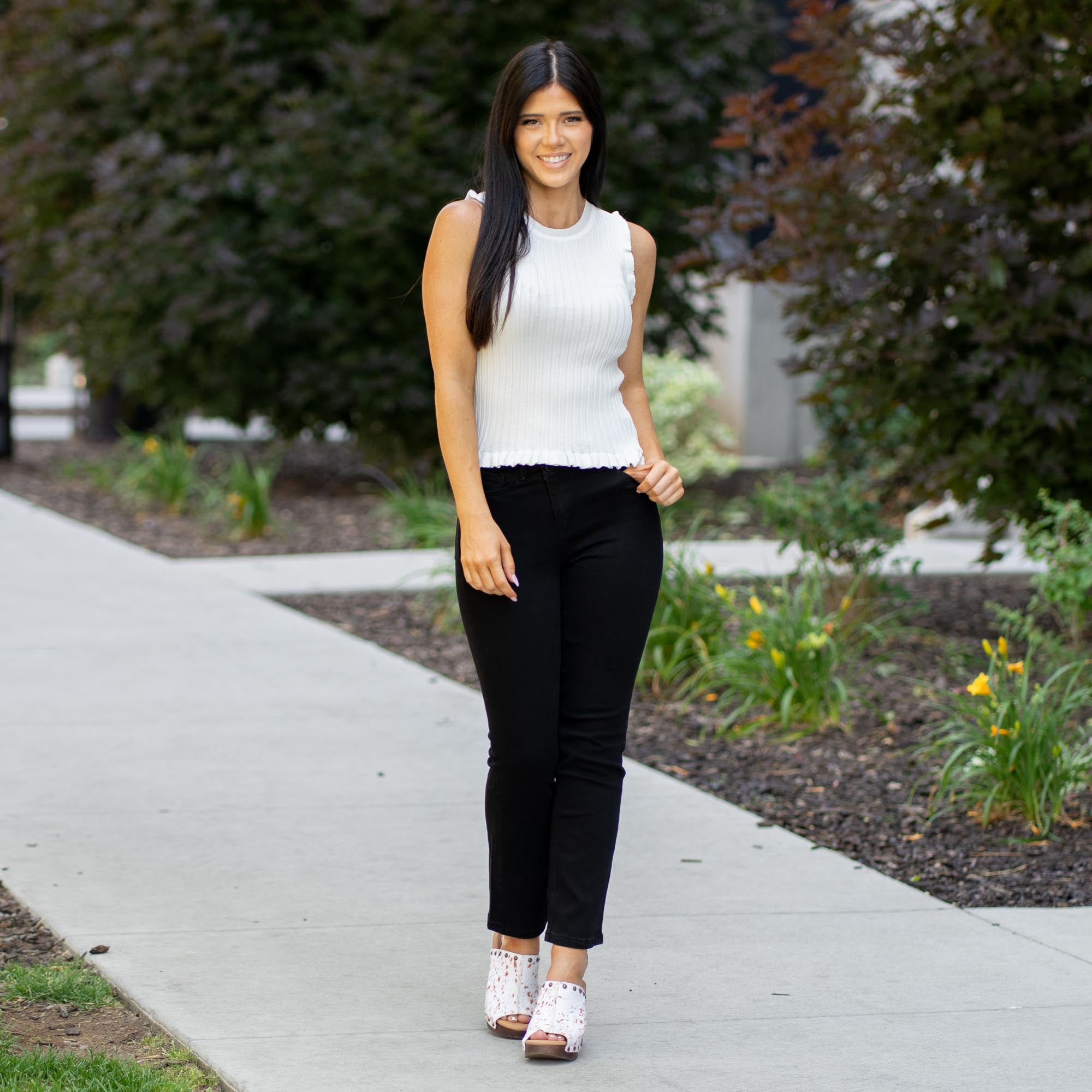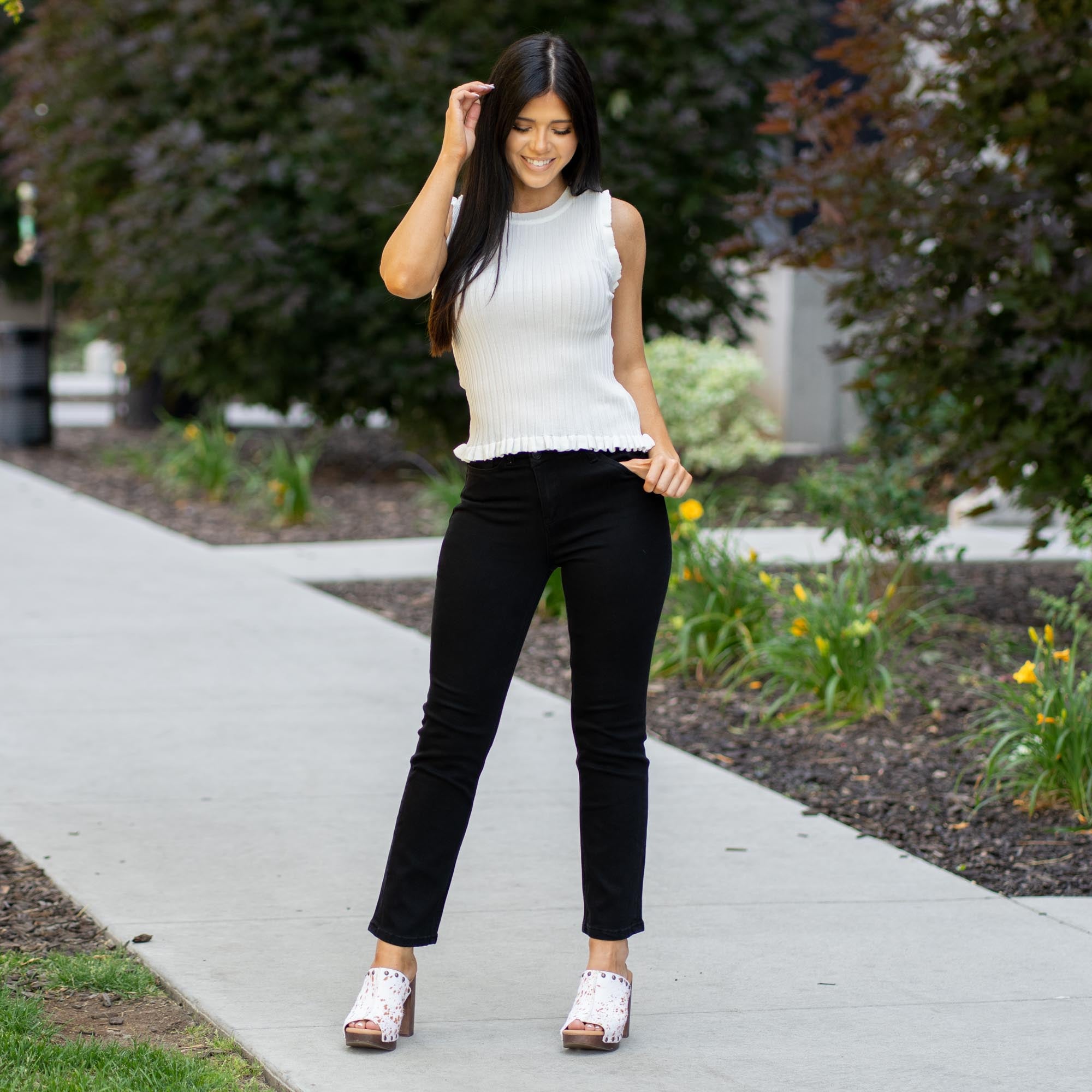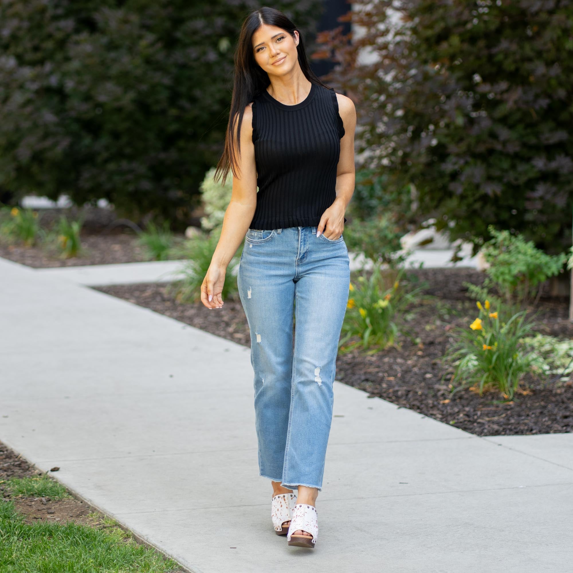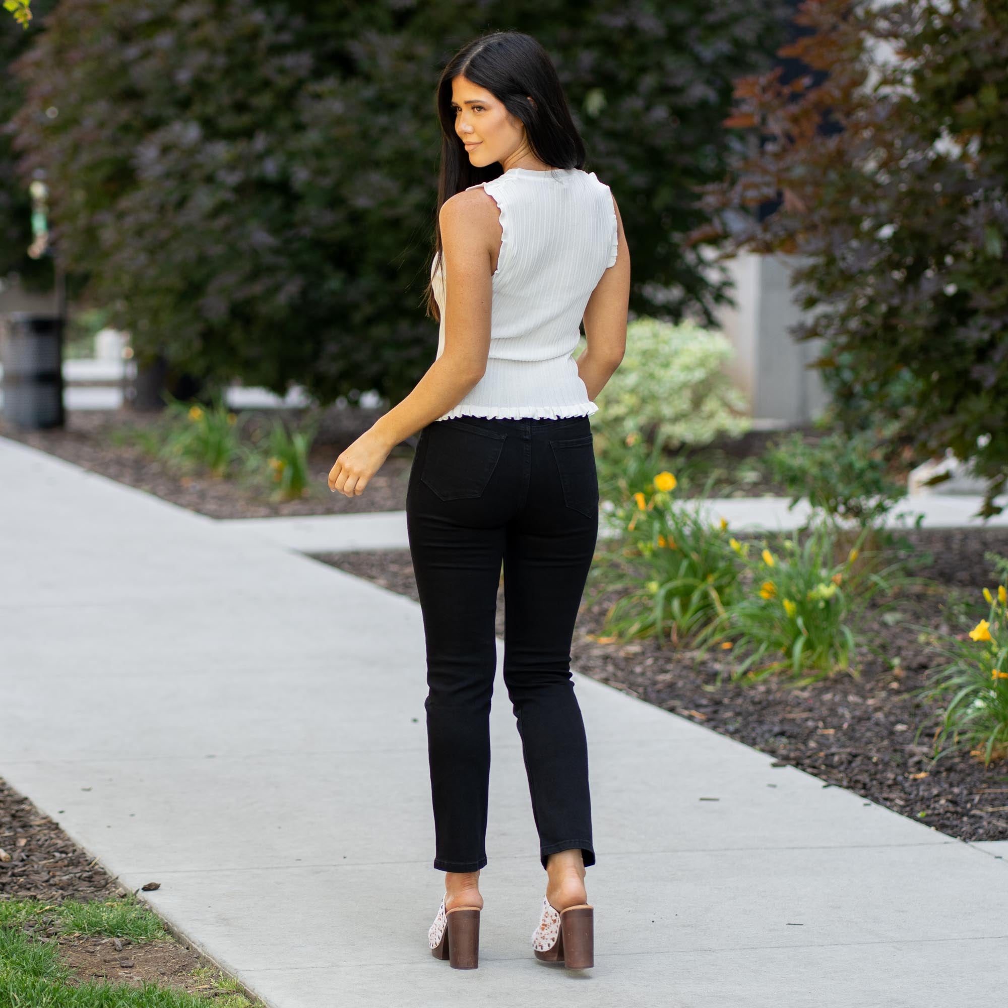 Hem & Thread Everly Lace Trim Ribbed Top – Washed Black
