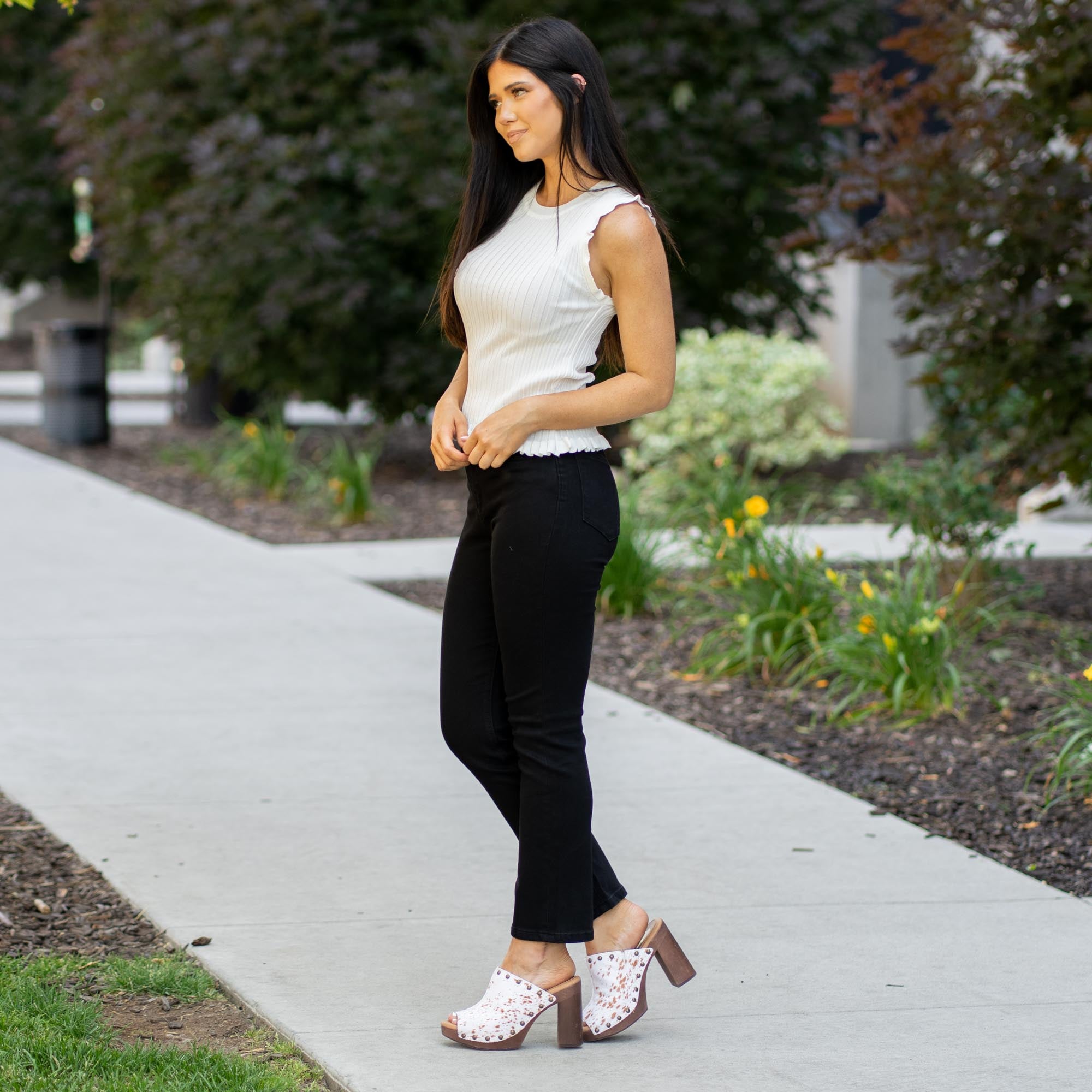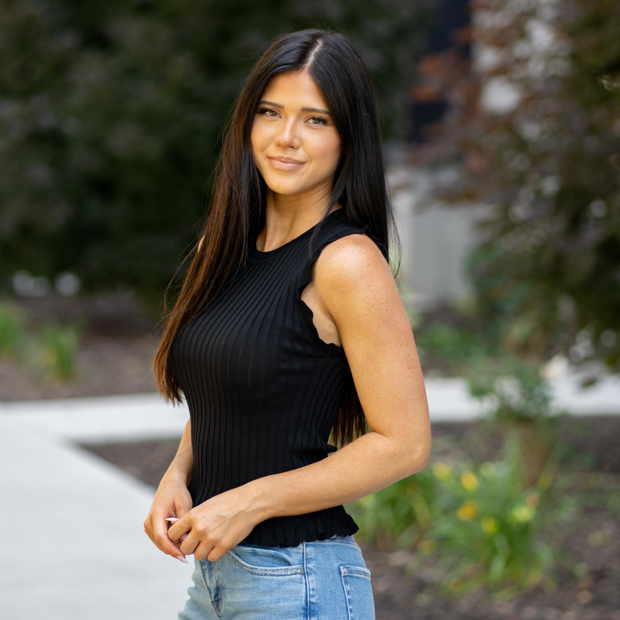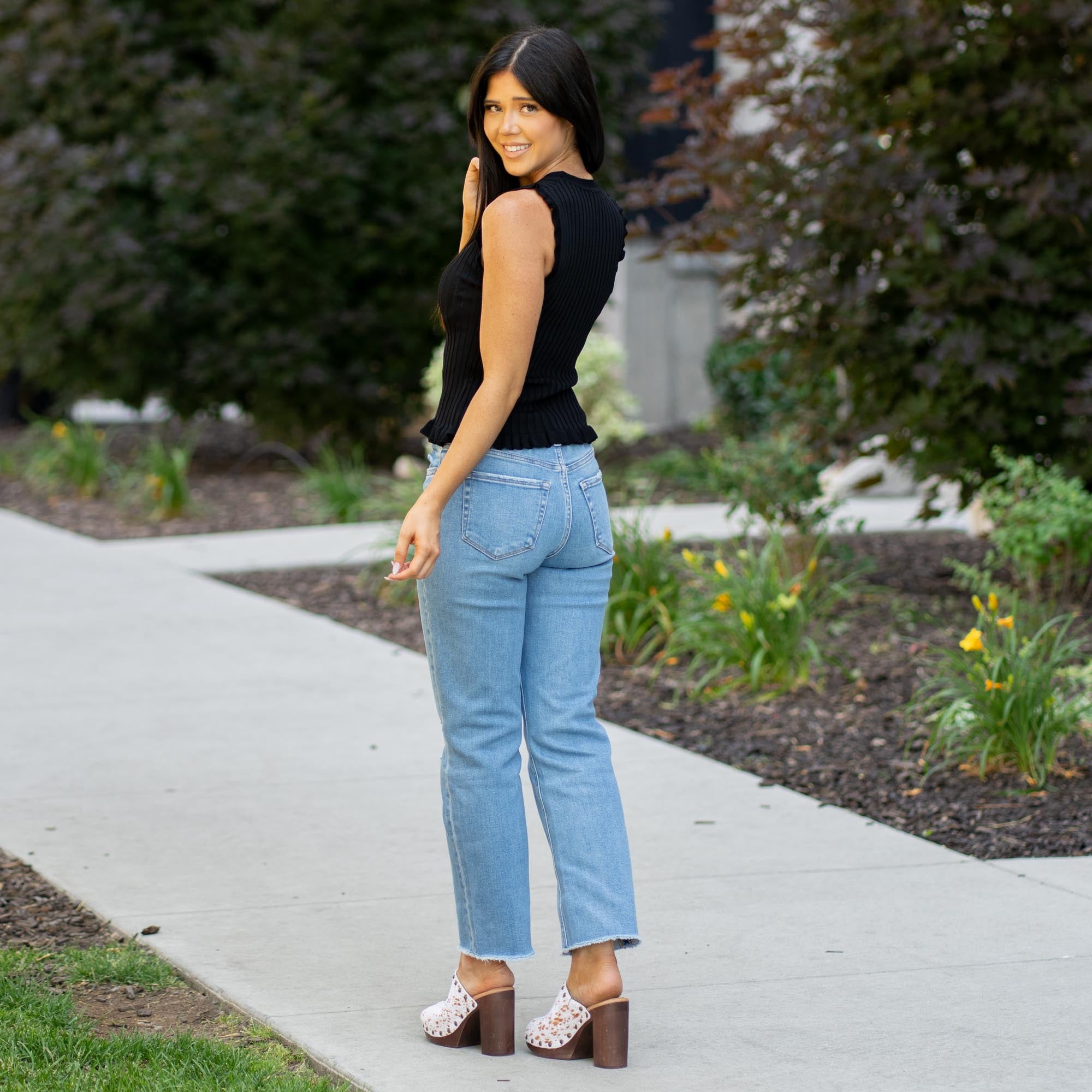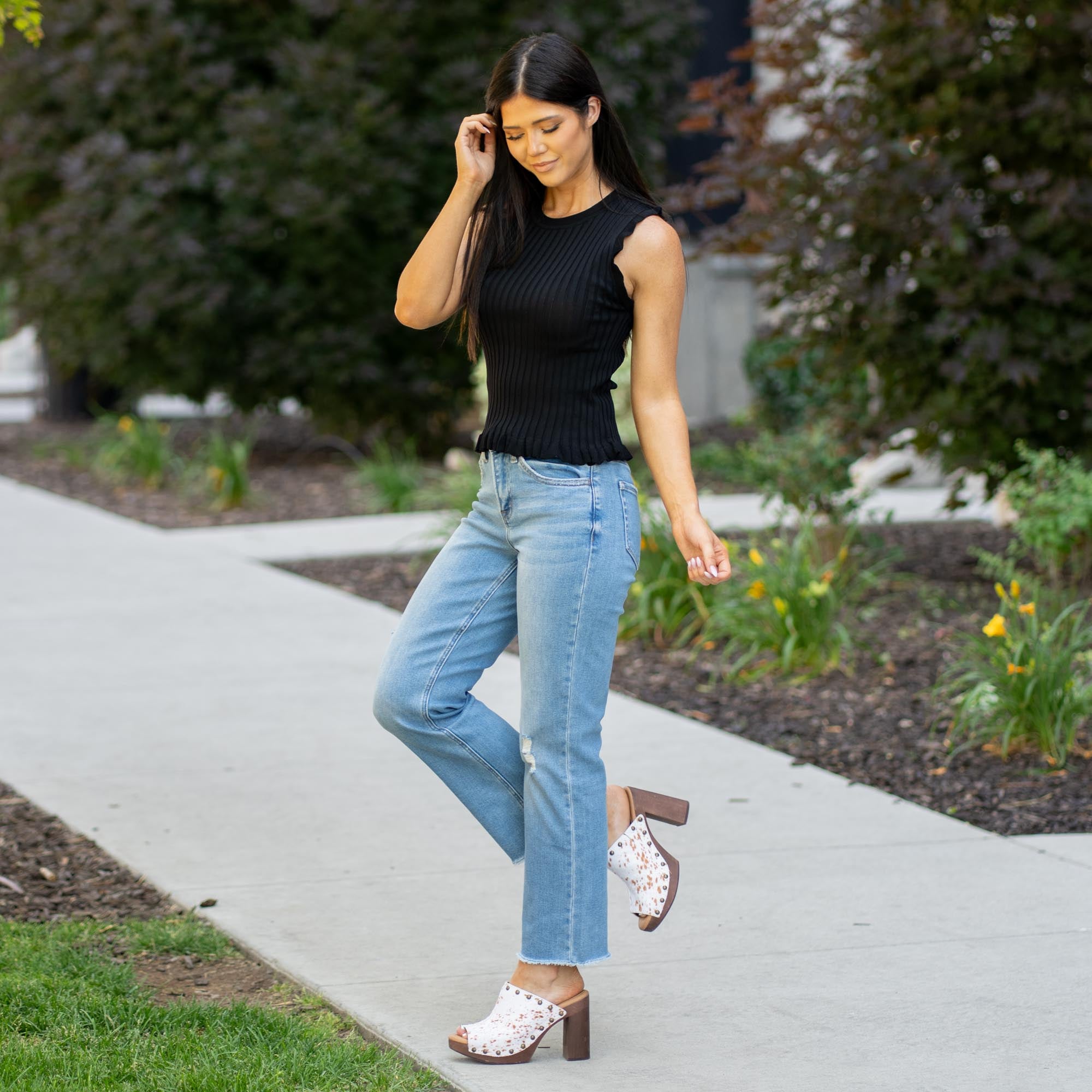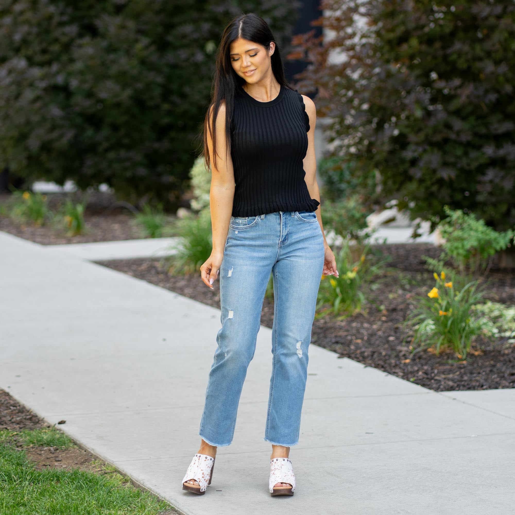 Hem & Thread Everly Lace Trim Ribbed Top – Washed Black