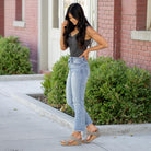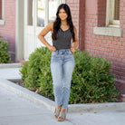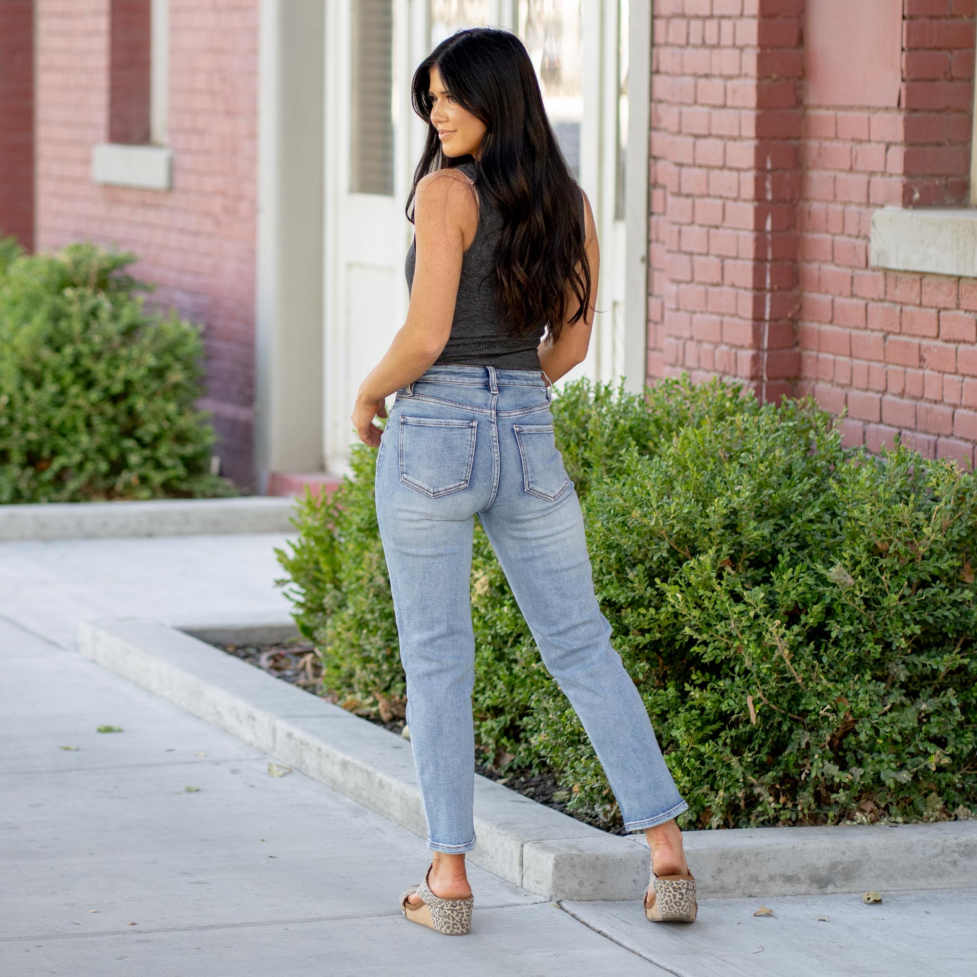 Flatter your figure with a bold twist. The Dylan Mid Rise Jean brings structure and edge with its asymmetrical waistband and clean straight leg. Designed with built-in tummy control panels for a smooth, sculpted silhouette, this style offers the perfect mix of comfort and contouring. The premium stretch denim moves with you while keeping its shape, making these a standout staple that works as hard as you do. Unexpected, refined, and undeniably flattering—Dylan is your go-to for elevated everyday denim.