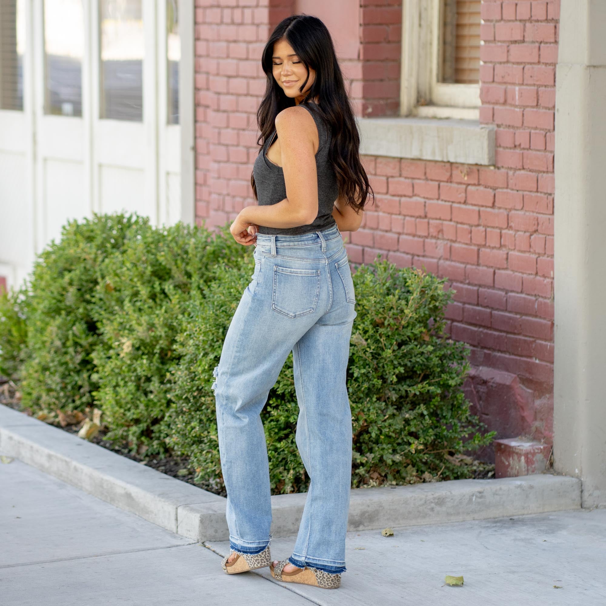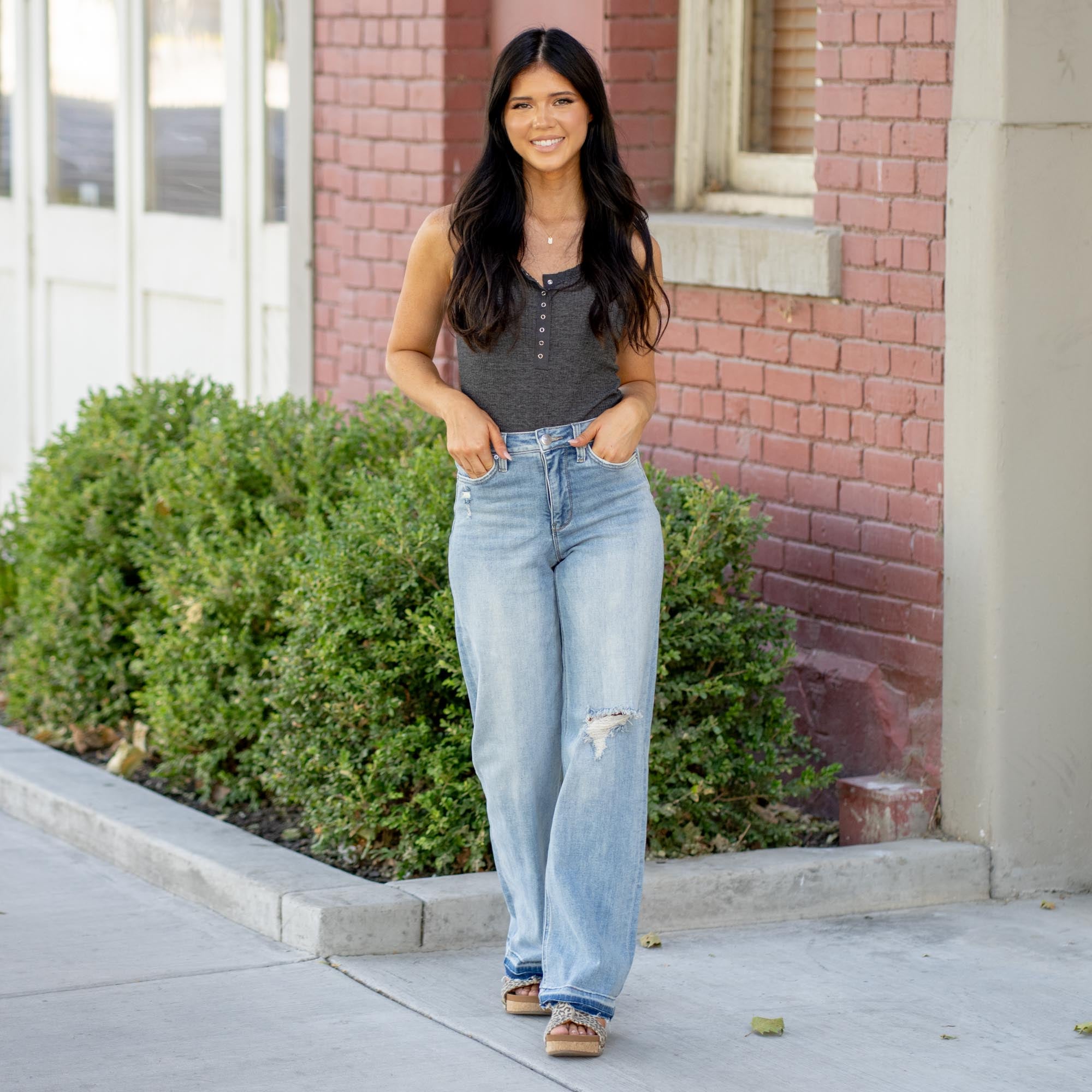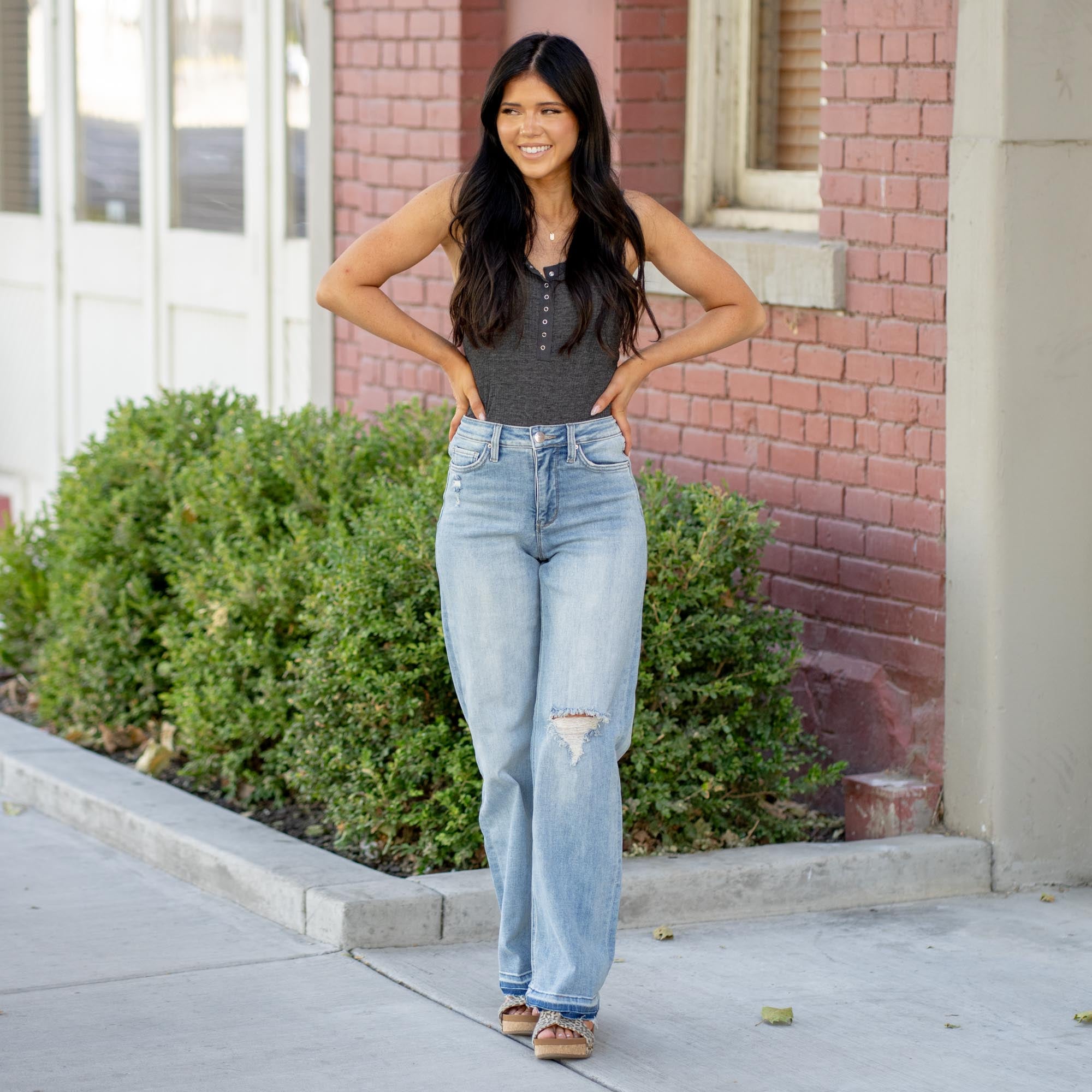 Modern structure meets timeless ease. The Hailey is your new go-to wide leg jean, crafted with a flattering high-rise waist and a sweeping silhouette that moves with you. Built-in tummy control smooths and supports for a confident fit you’ll love from the moment you zip up.