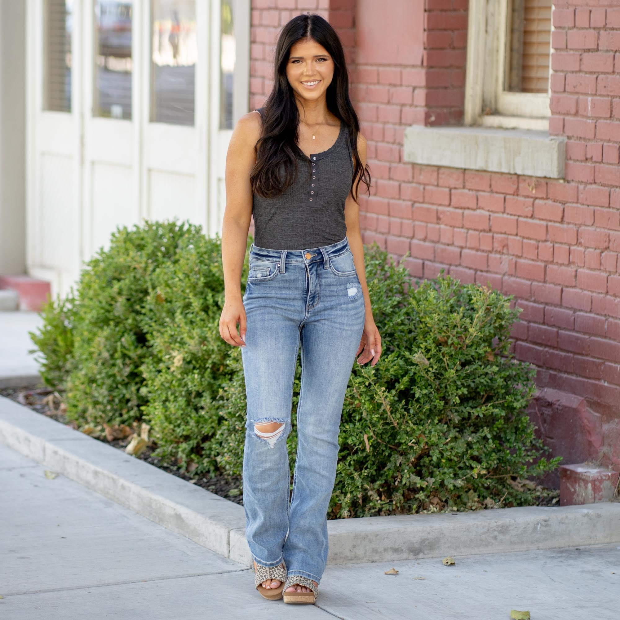 Mia Tummy Control Top High Rise Bootcut Distressed