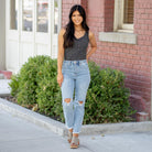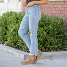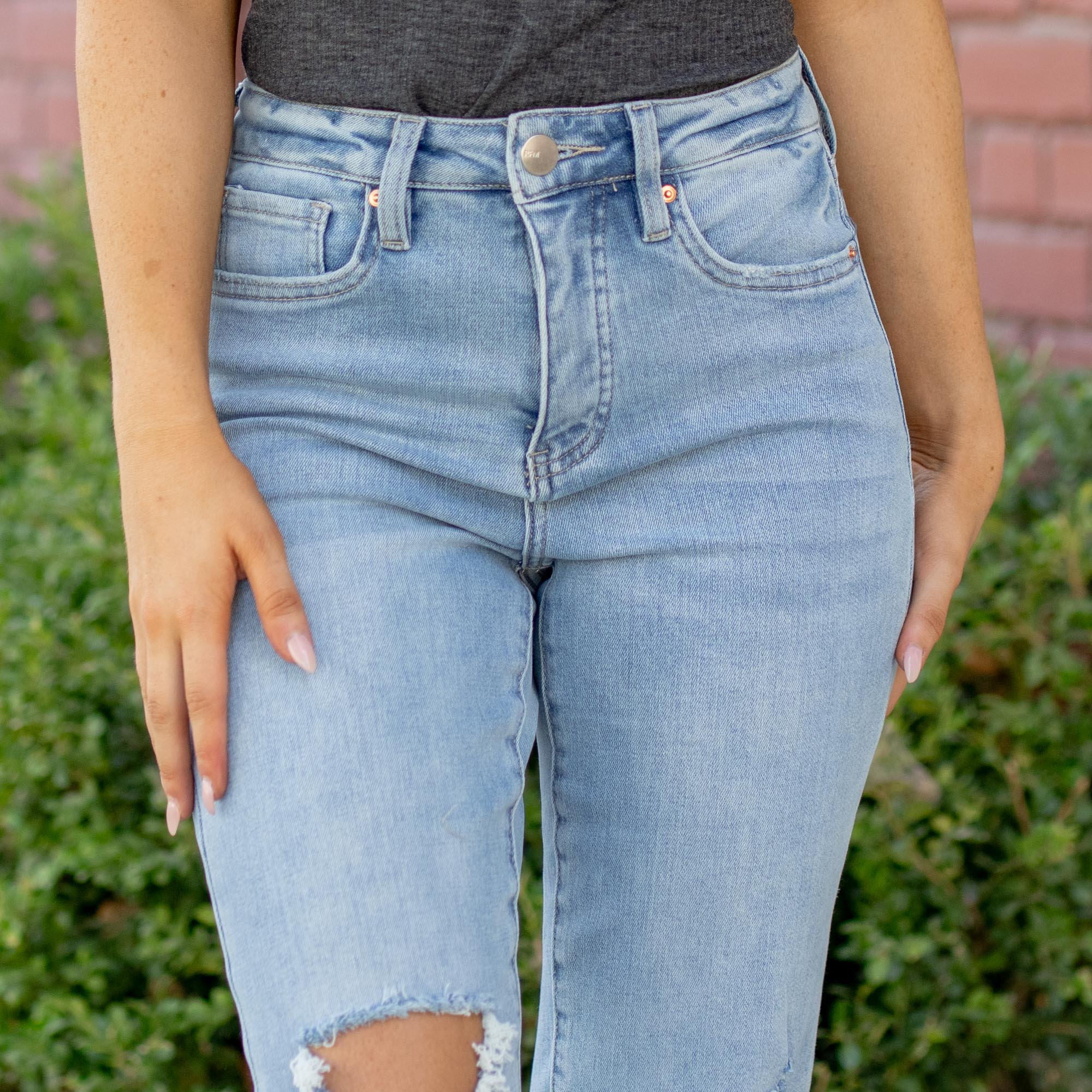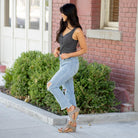 Dylan Tummy Control Top High Rise Slim Straight Crop Fray Hem