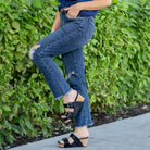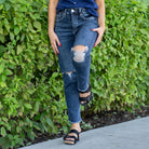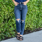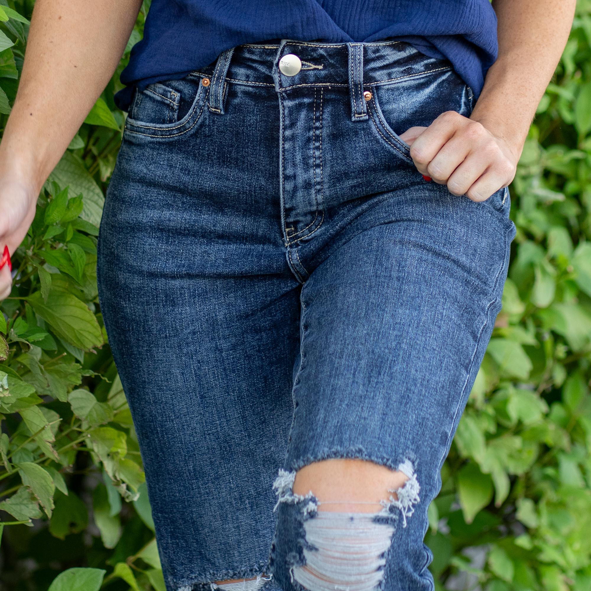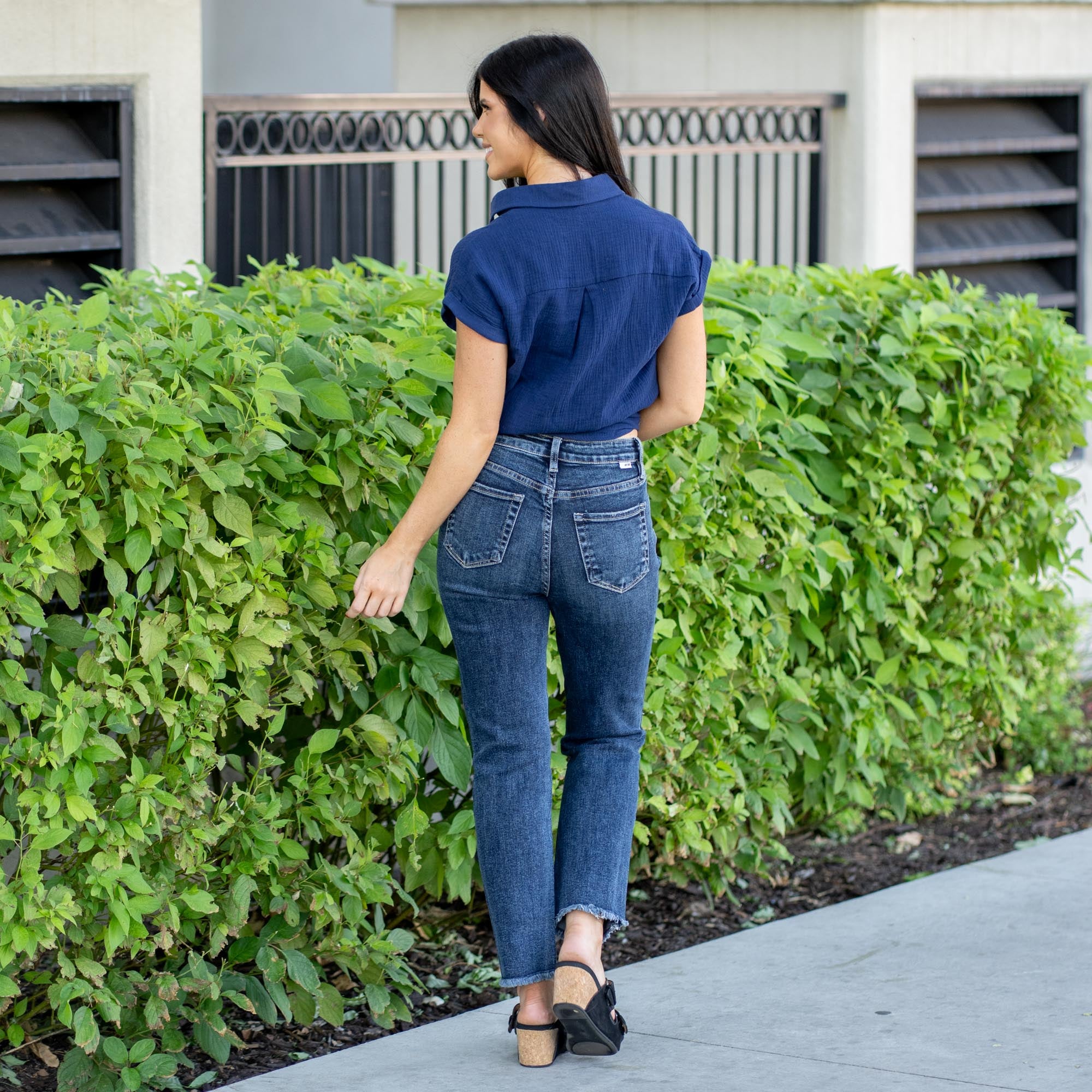 RFM Dylan Tummy Control Top High Rise Cropped Straight Leg Jeans Dark Blue Wash