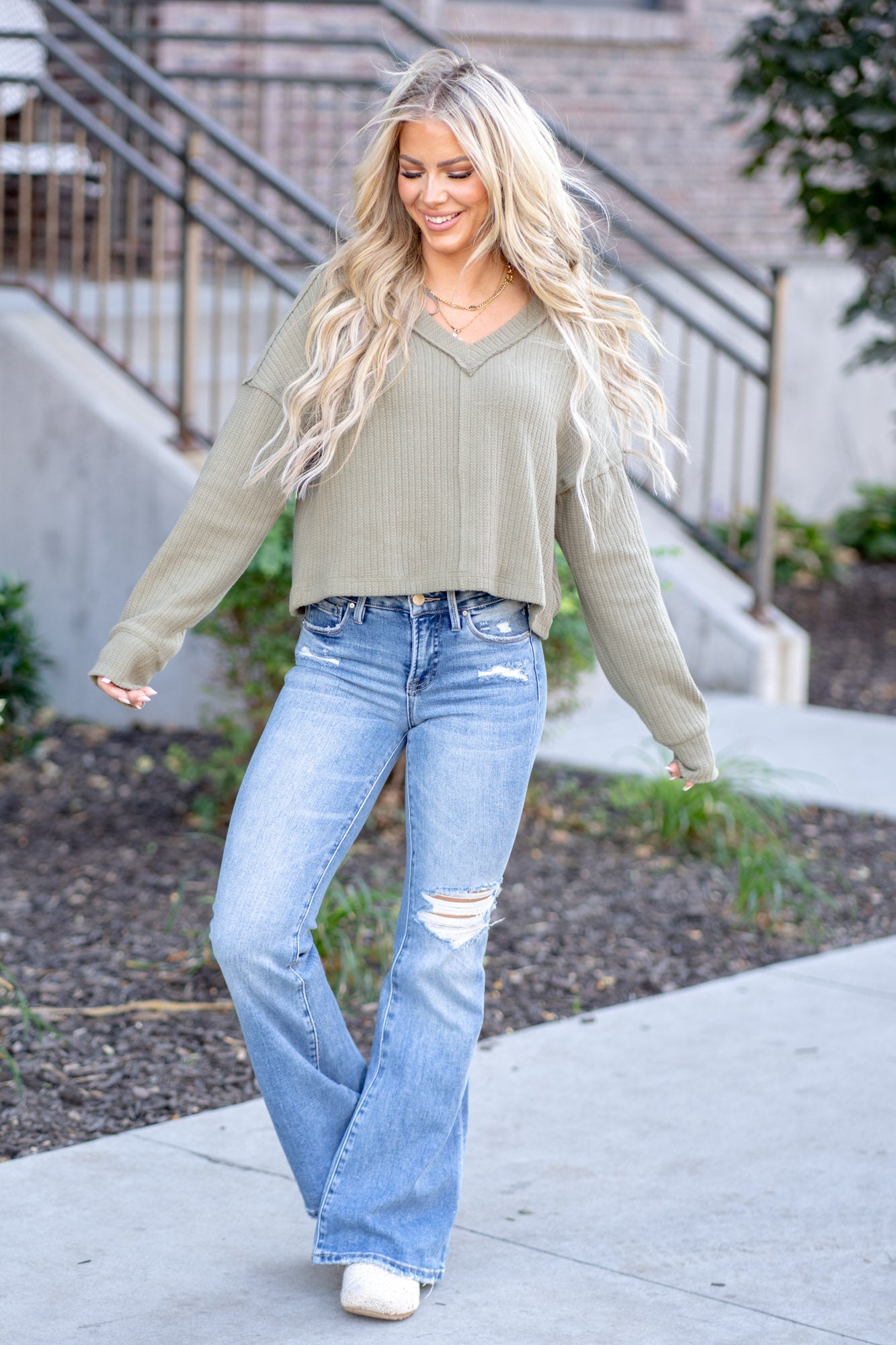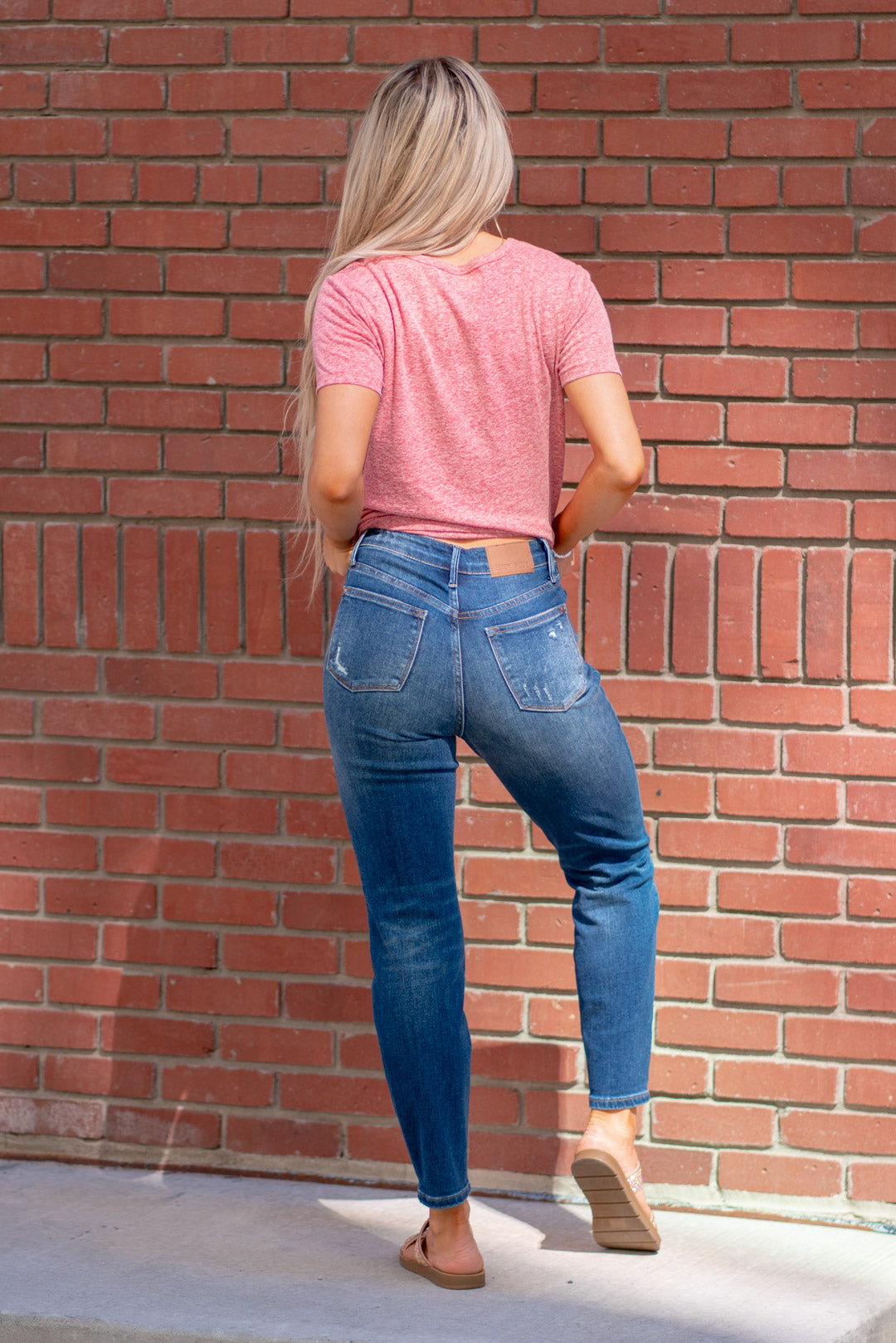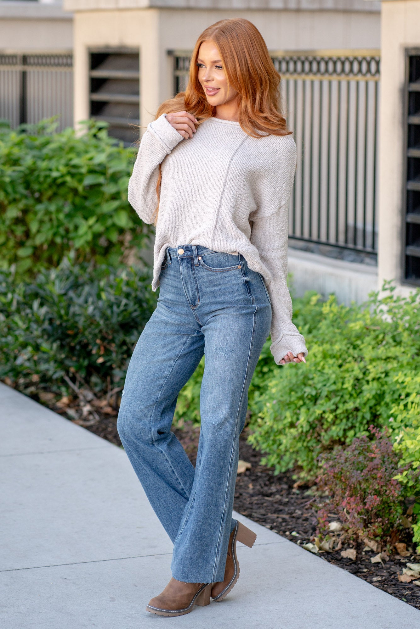 Spring in Step Tummy Control Top High Rise Raw Hem Straight Leg Regular & Plus Sizes