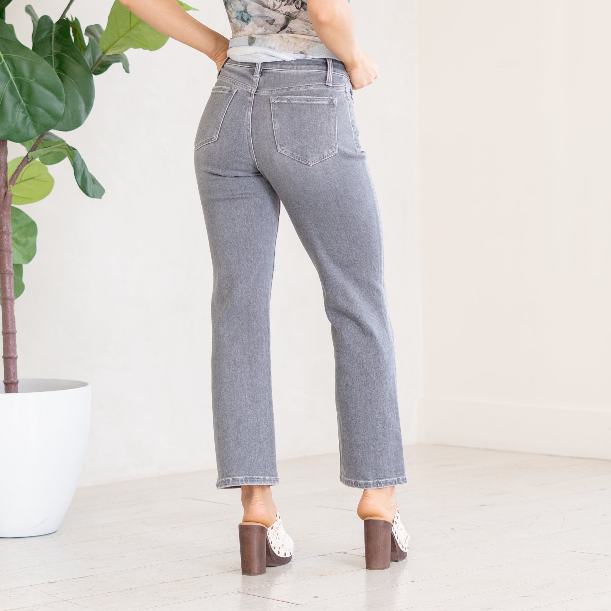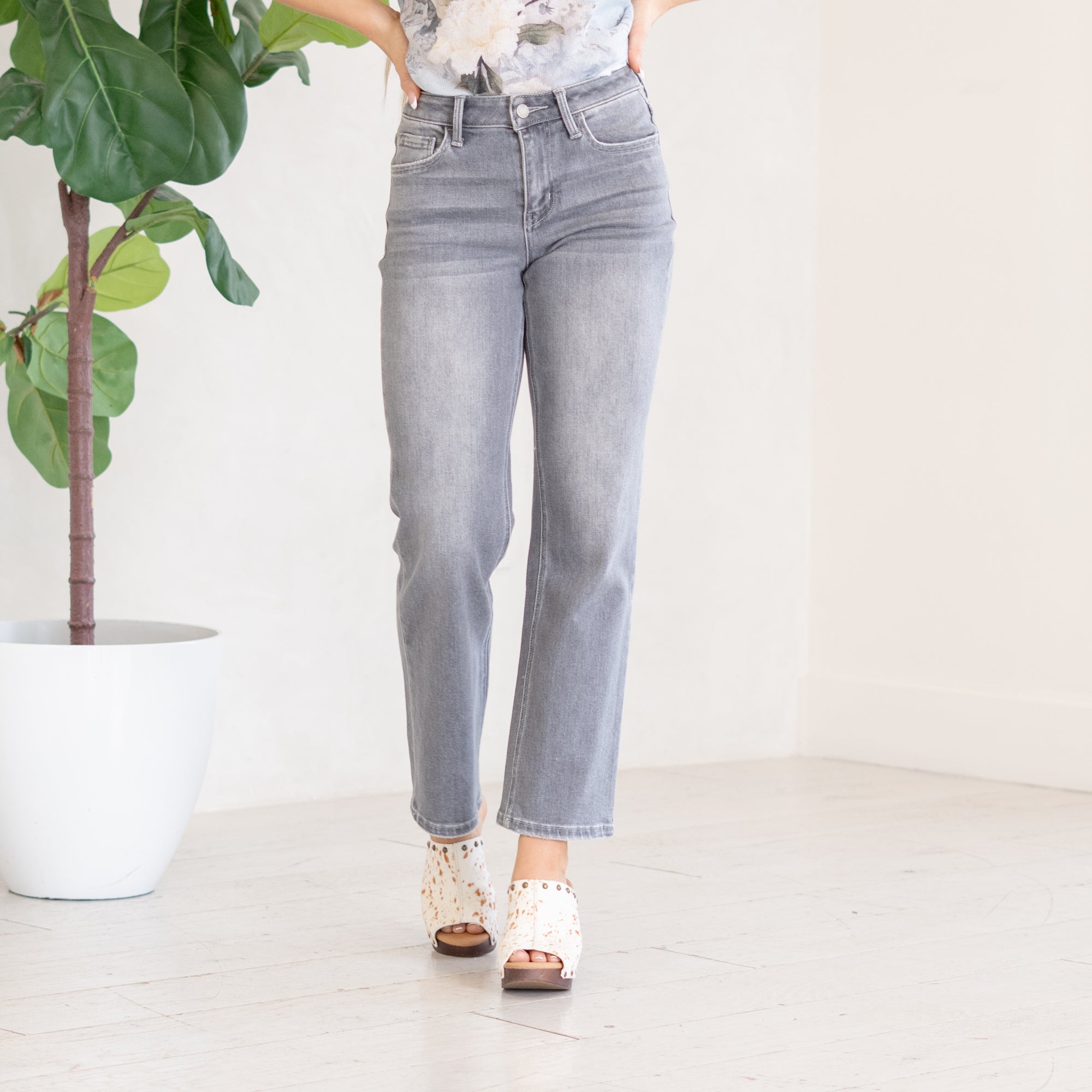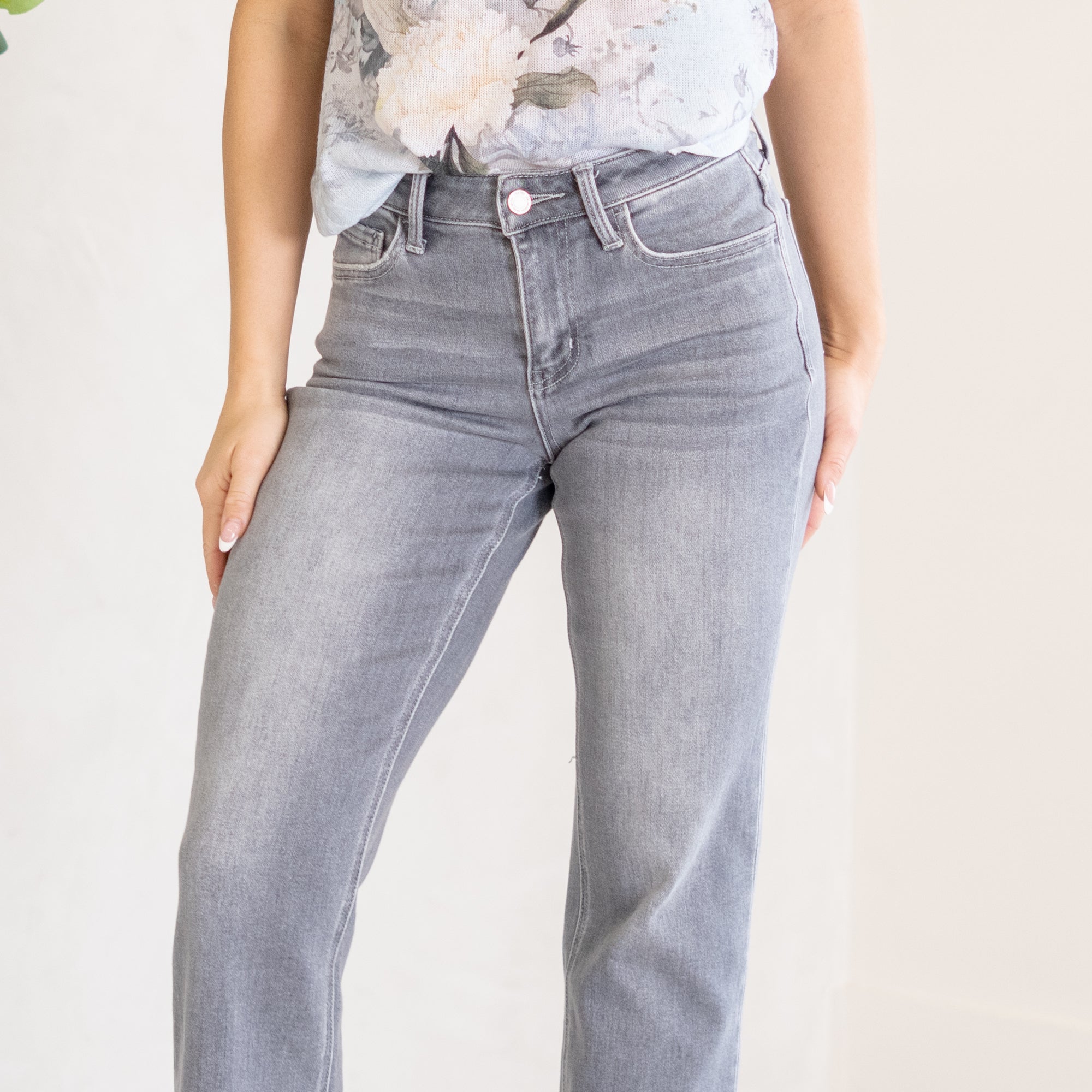VERVET River Eden High Rise Slim Wide Leg Grey Wash