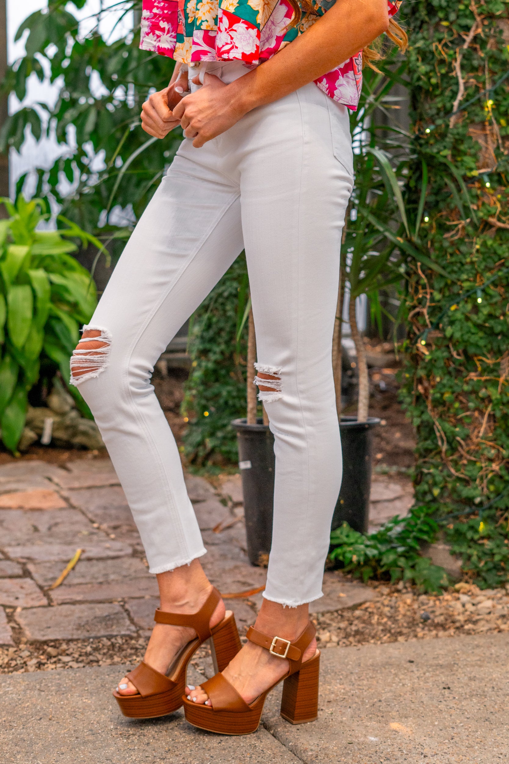 Discover the perfect blend of fashion-forward and comfortable in these high-rise crop skinny jeans. With a waist-accentuating high rise and a sleek skinny fit, these jeans complement your figure while providing a contemporary edge. The cropped length adds a touch of sophistication, making them a must-have addition to your wardrobe for effortless styling versatility.