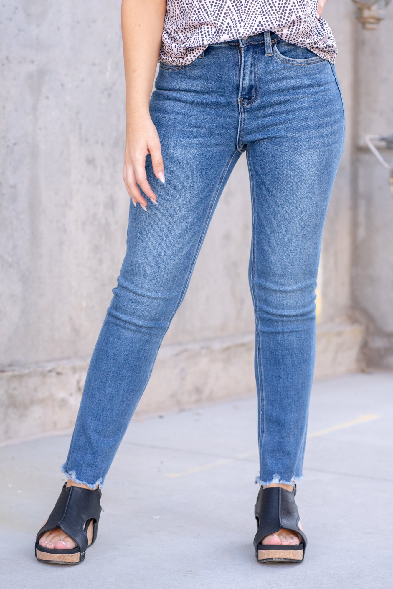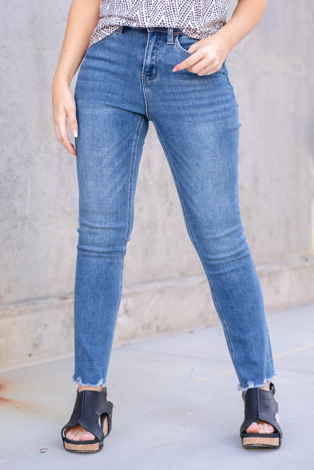 The High Rise Crop Slim Straight Jean is the epitome of both comfort and style. Made from comfortable stretch denim, they offer a flexible and flattering fit. With a high-rise waist, these jeans provide a modern twist on a classic design. Featuring a frayed hem and a cropped length, they add a touch of edginess and a hint of trendiness to your look. The slim fit and straight leg make these jeans a versatile and chic addition to your wardrobe.