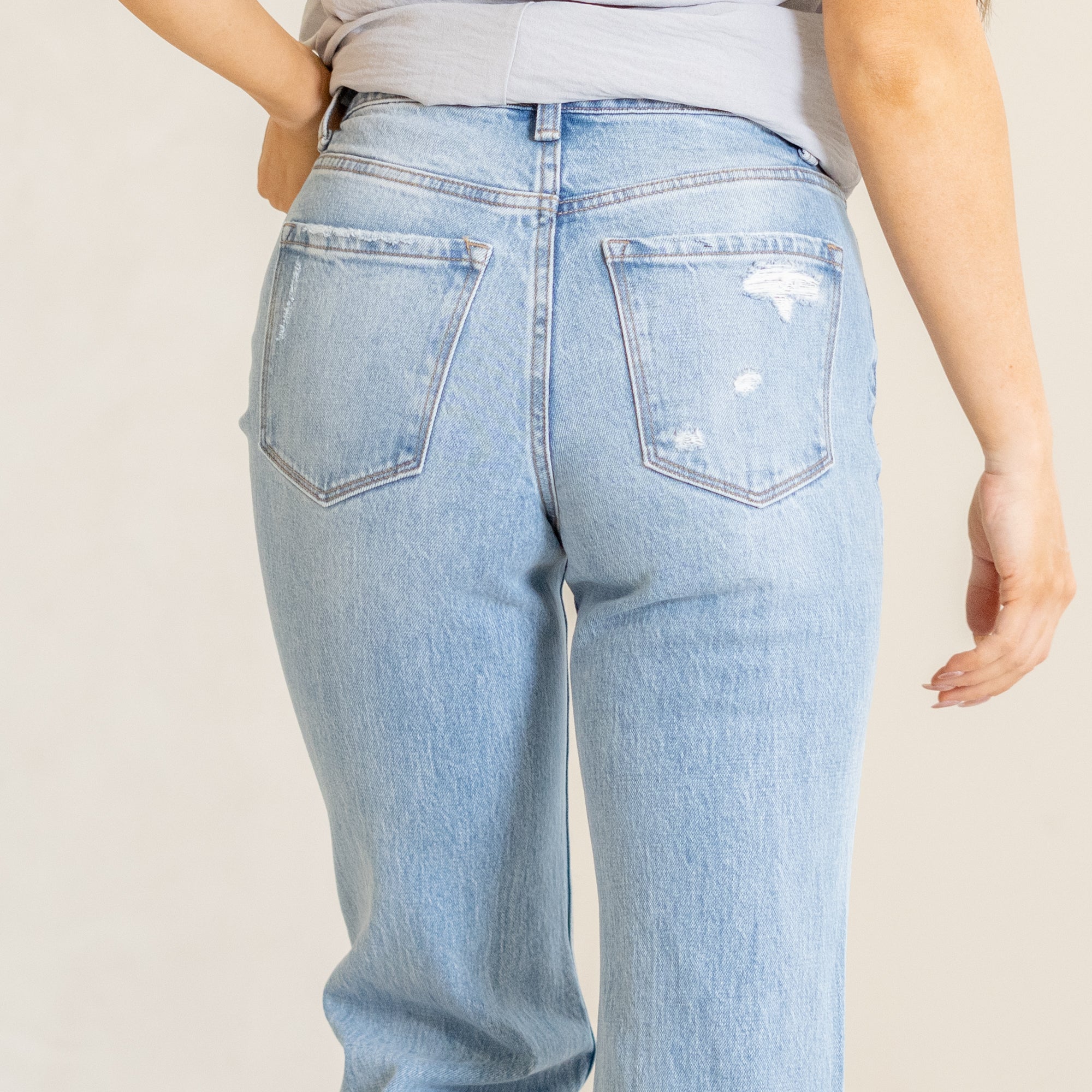 VERVET Satisfying Super High Rise Distressed Straight Leg Jeans Medium Blue