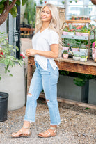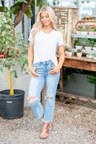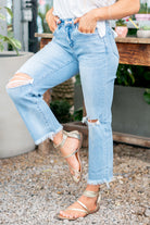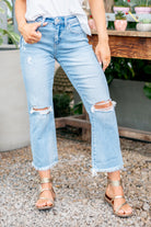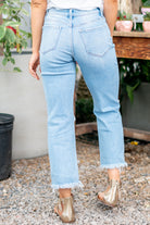 Introducing our High Rise Frayed Hem Crop Straight Jeans, the epitome of effortless style and comfort for your everyday wardrobe. Crafted from comfortable stretch denim, these jeans offer a flexible and flattering fit that hugs your curves in all the right places. With a high-rise waist, they provide a modern and versatile silhouette that complements any outfit. The distressed detail adds a touch of edge and character, giving them a lived-in and laid-back look.