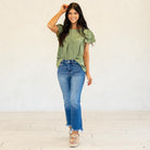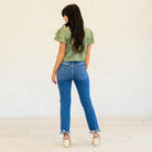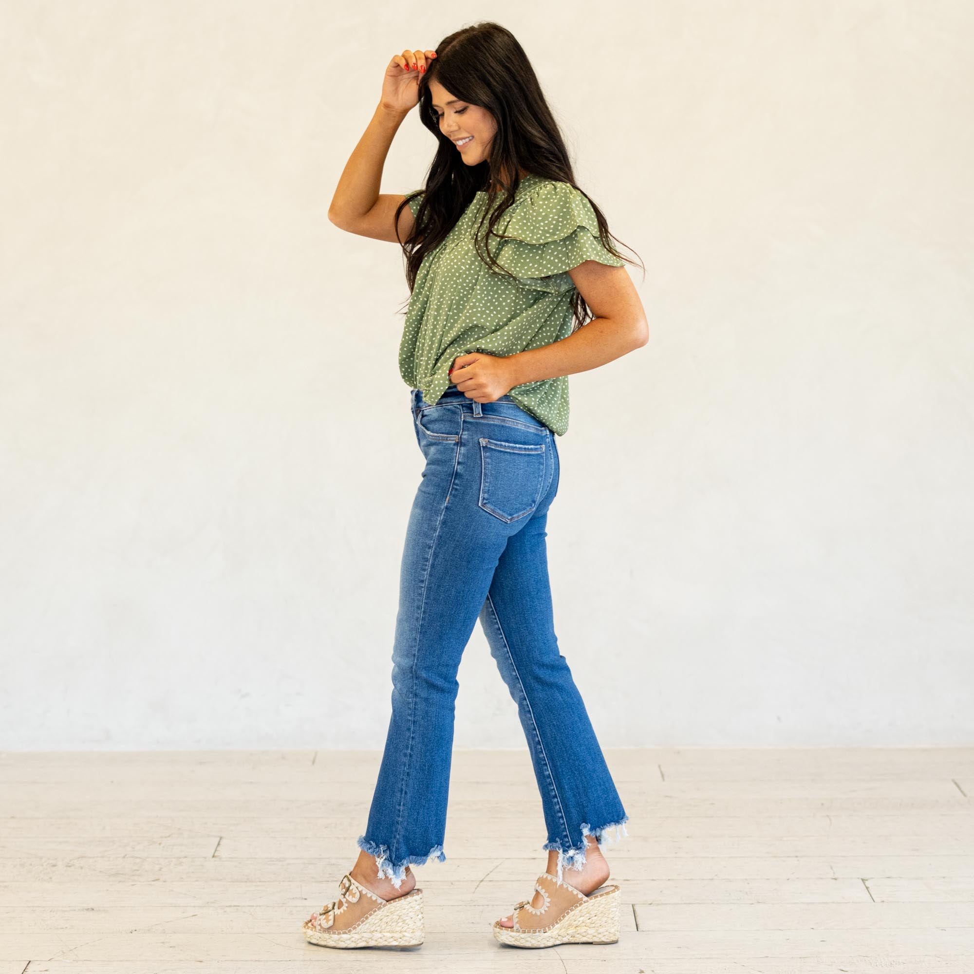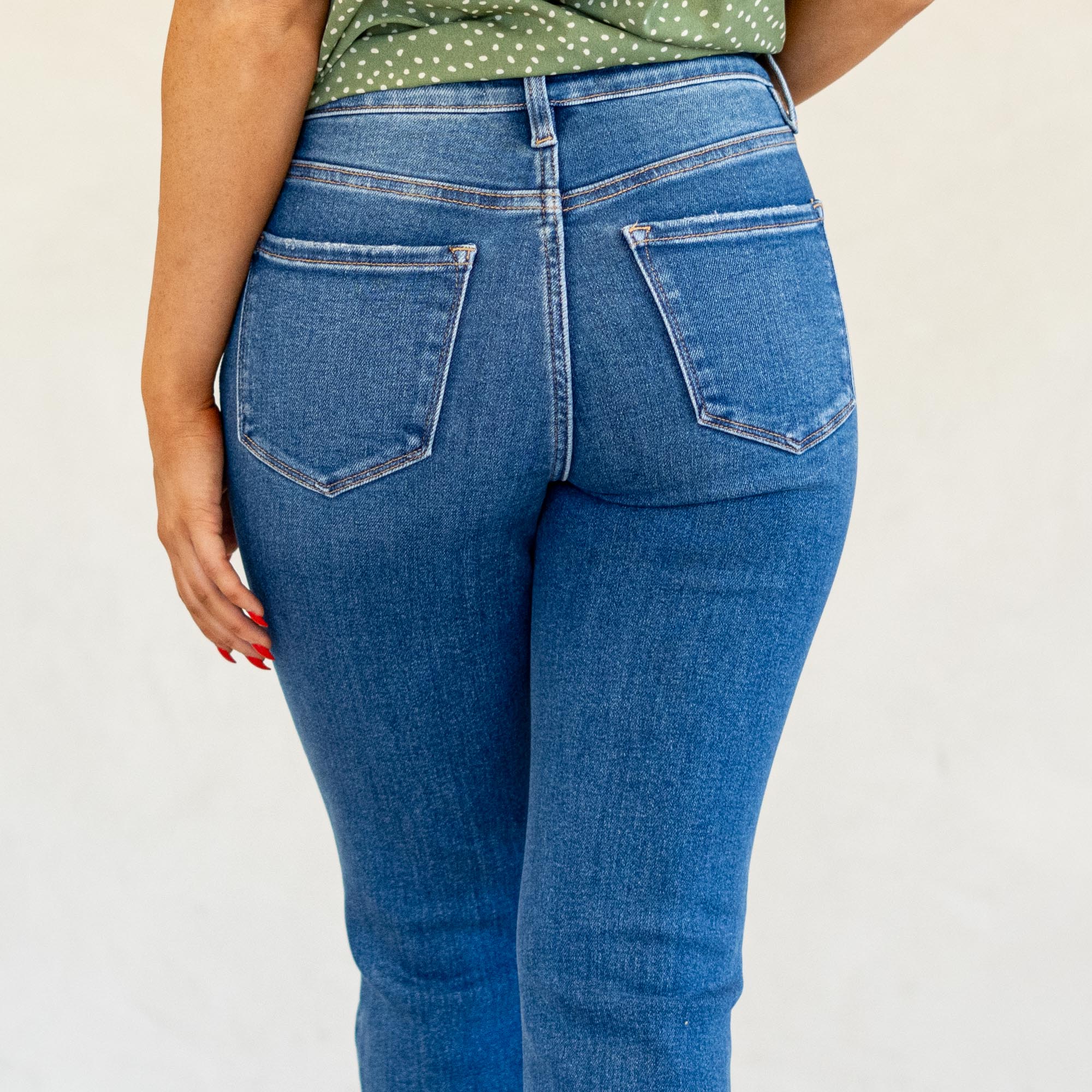 Step into effortless style with the Divine High Rise Kick Flare Jeans. Designed in comfort stretch denim, these jeans hug your waist while offering flexibility for all-day wear. The high-rise fit creates a flattering silhouette, while the cropped kick flare leg brings a playful, modern touch.