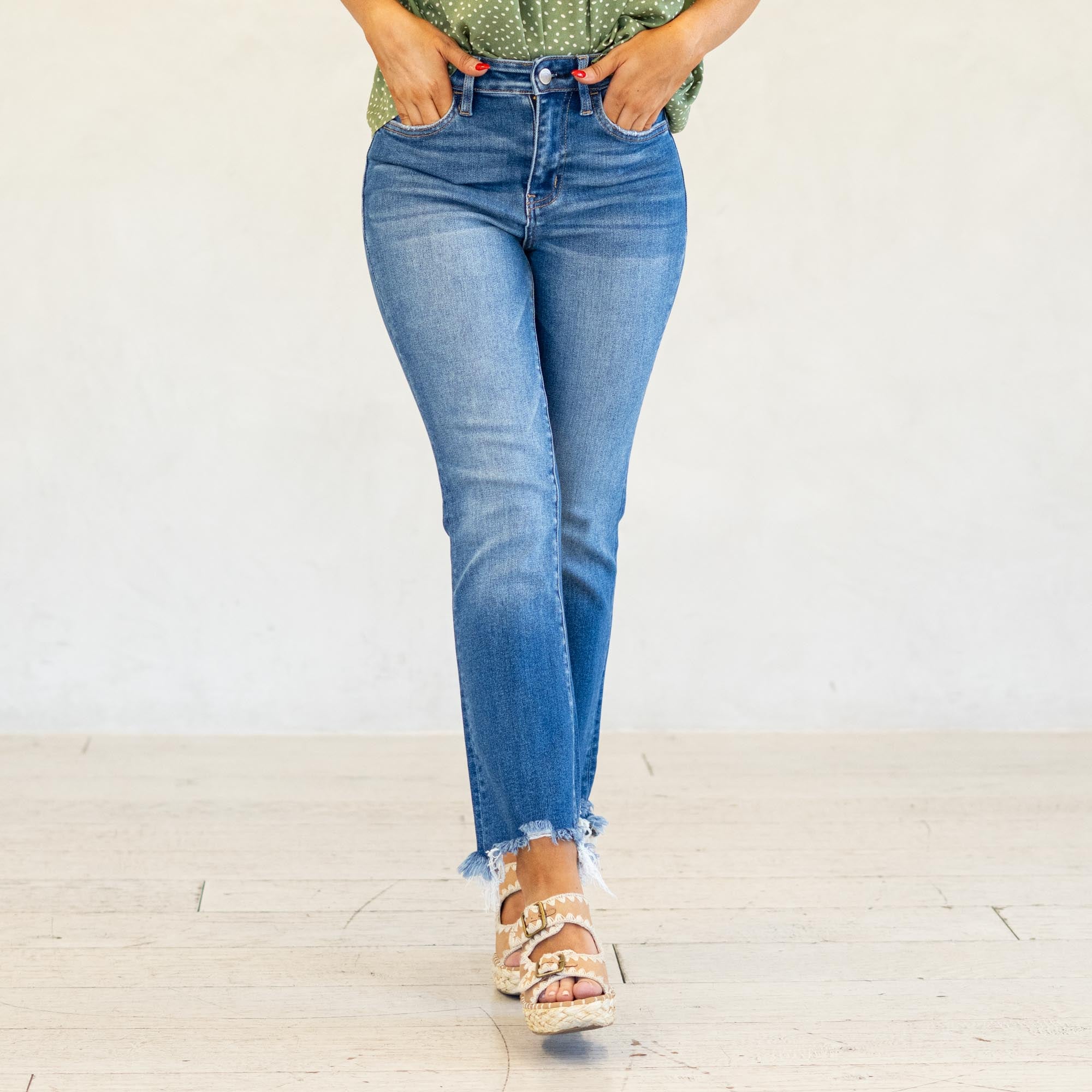 Finished with a distressed hem for that perfectly lived-in vibe, this pair transitions easily from casual daytime looks to chic evening outfits. Pair them with sneakers for off-duty cool or dress them up with heels for instant sophistication.