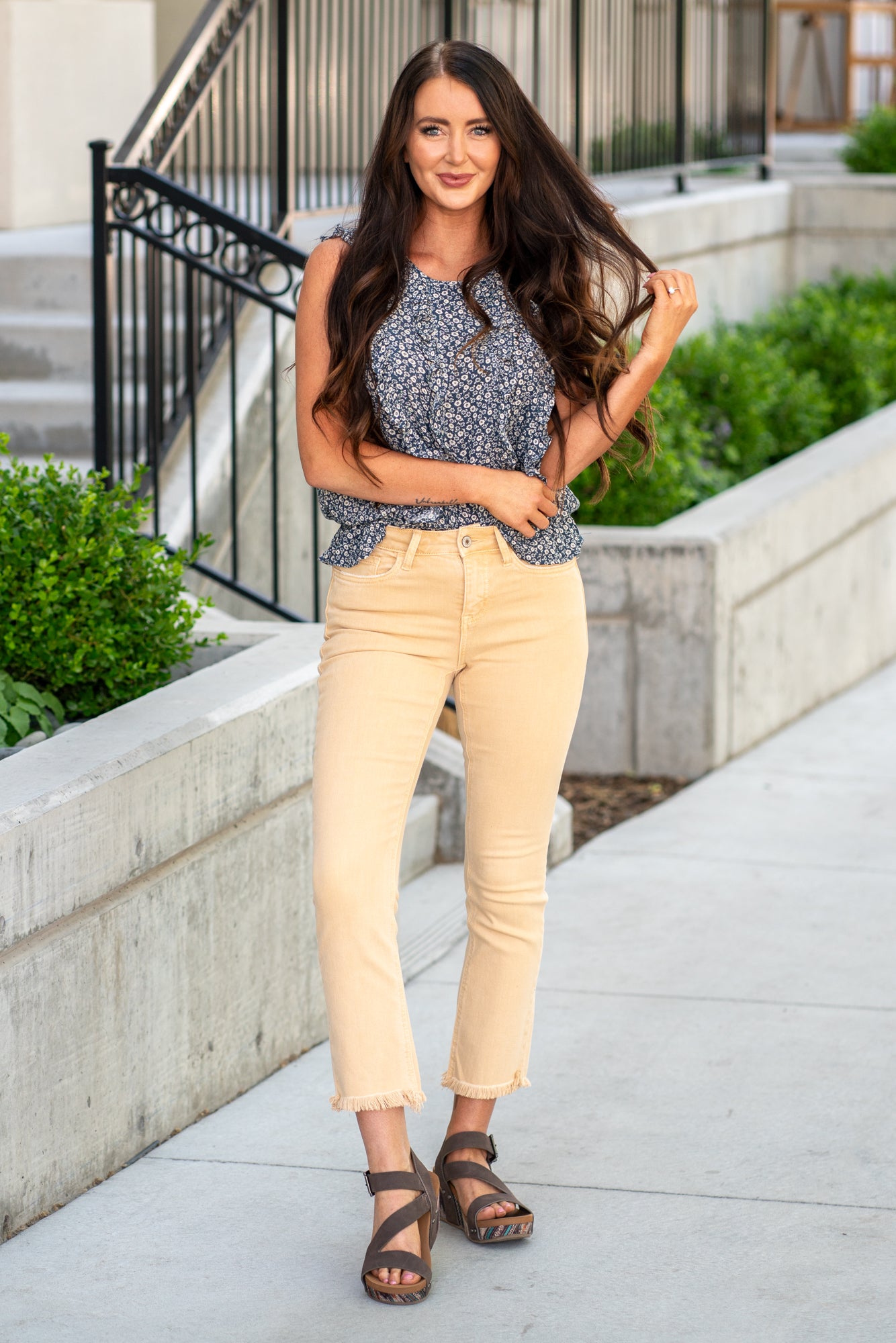 These mid-waisted crop straight-leg jeans have a soft stretch material that will feel so comfortable. Cropped legs and slightly distressed detail with the classic 5-pocket design.