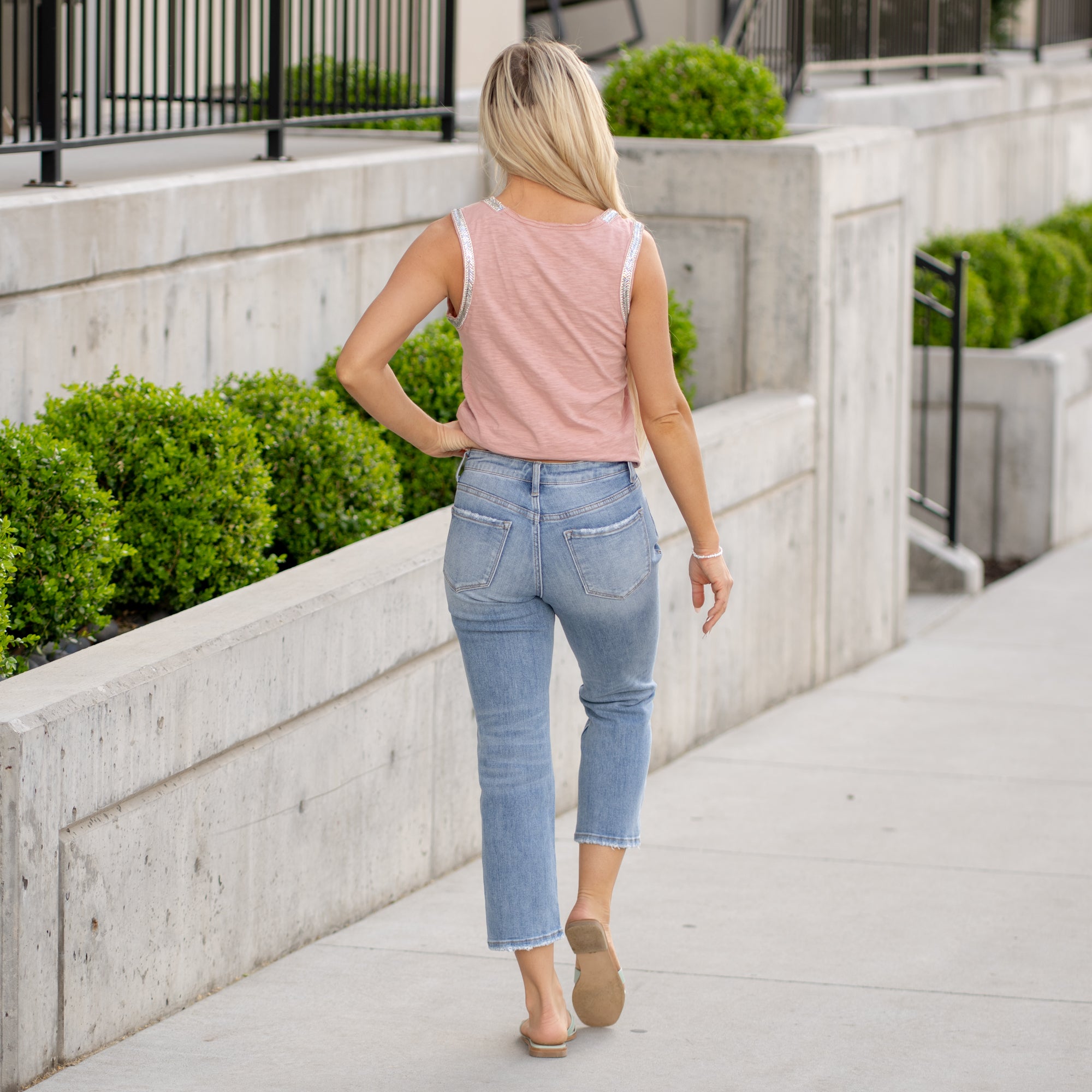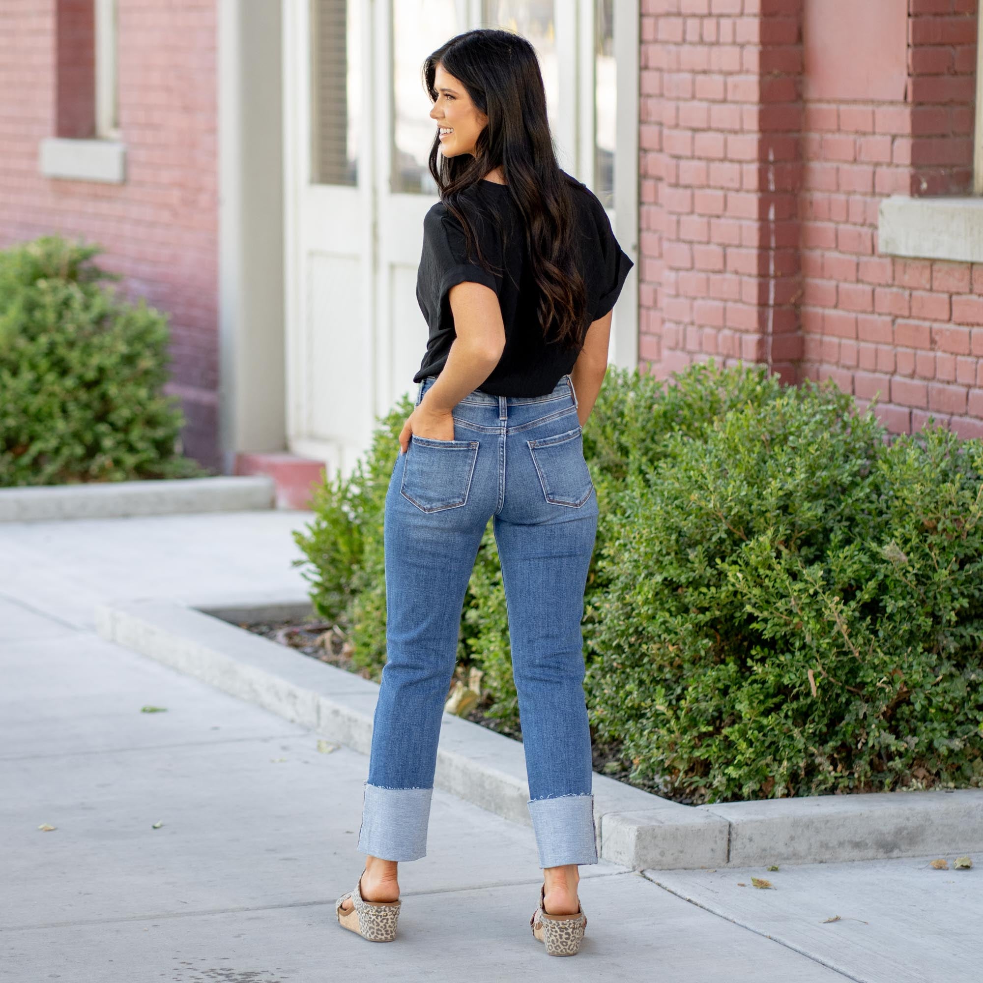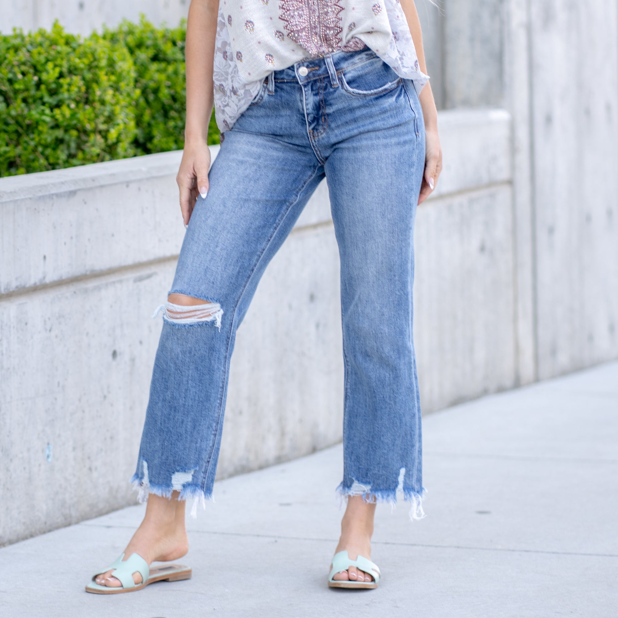 VERVET Blissful Reflections High Rise Cuffed Crop Straight Jeans Medium Blue