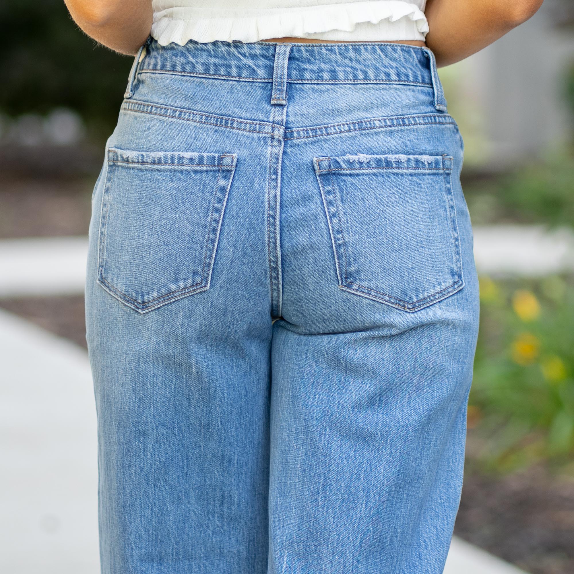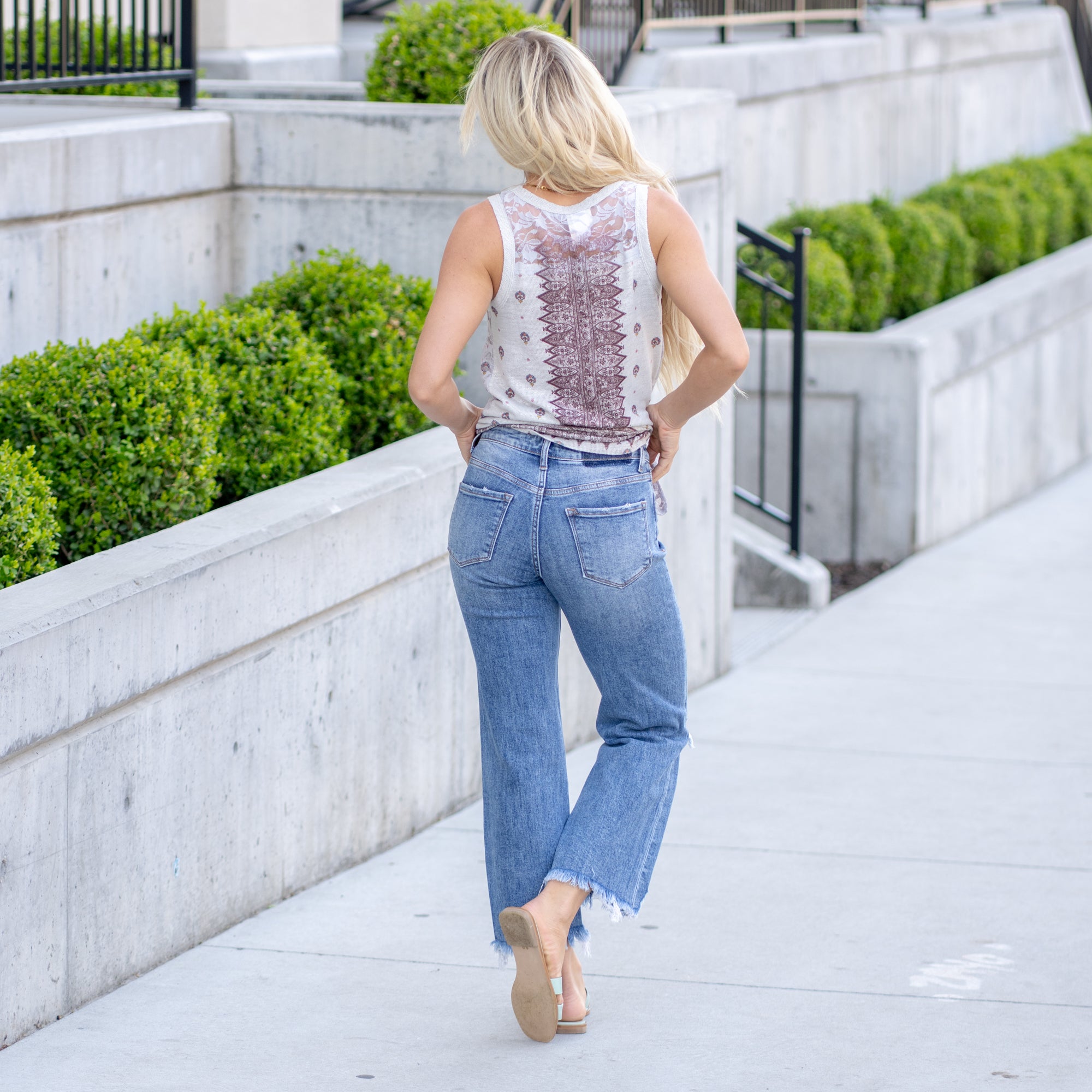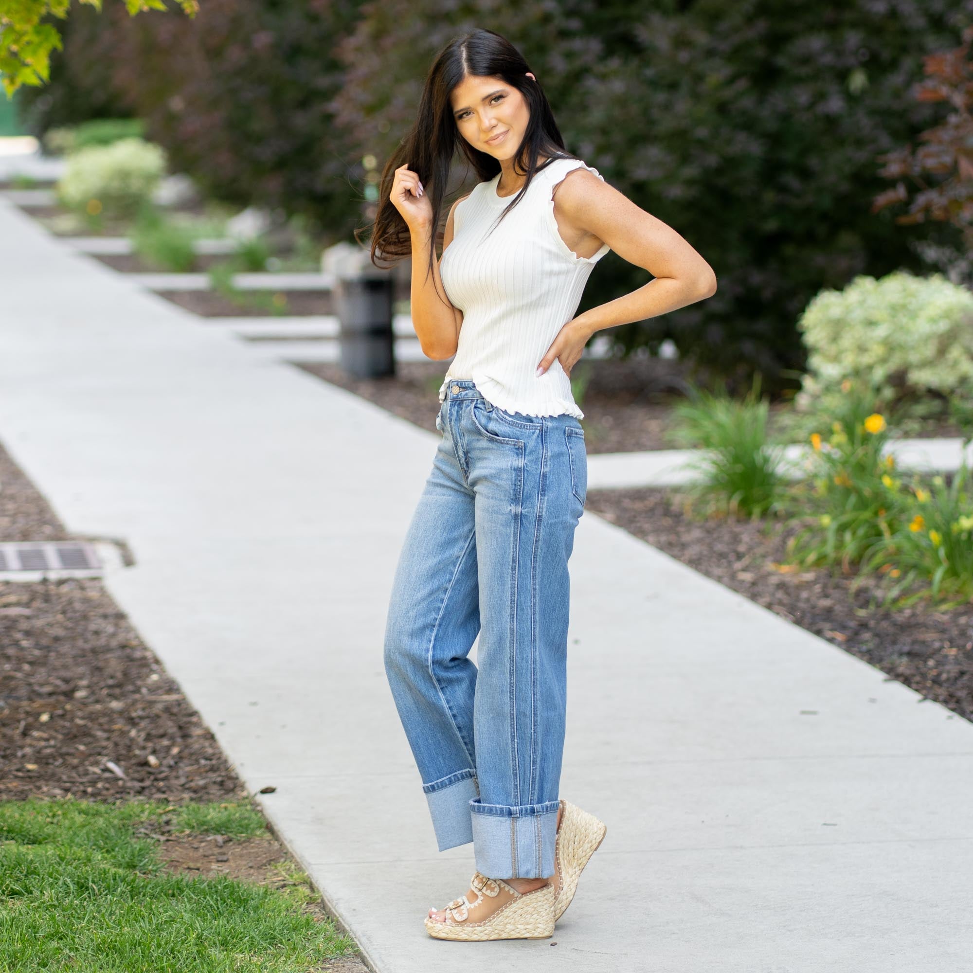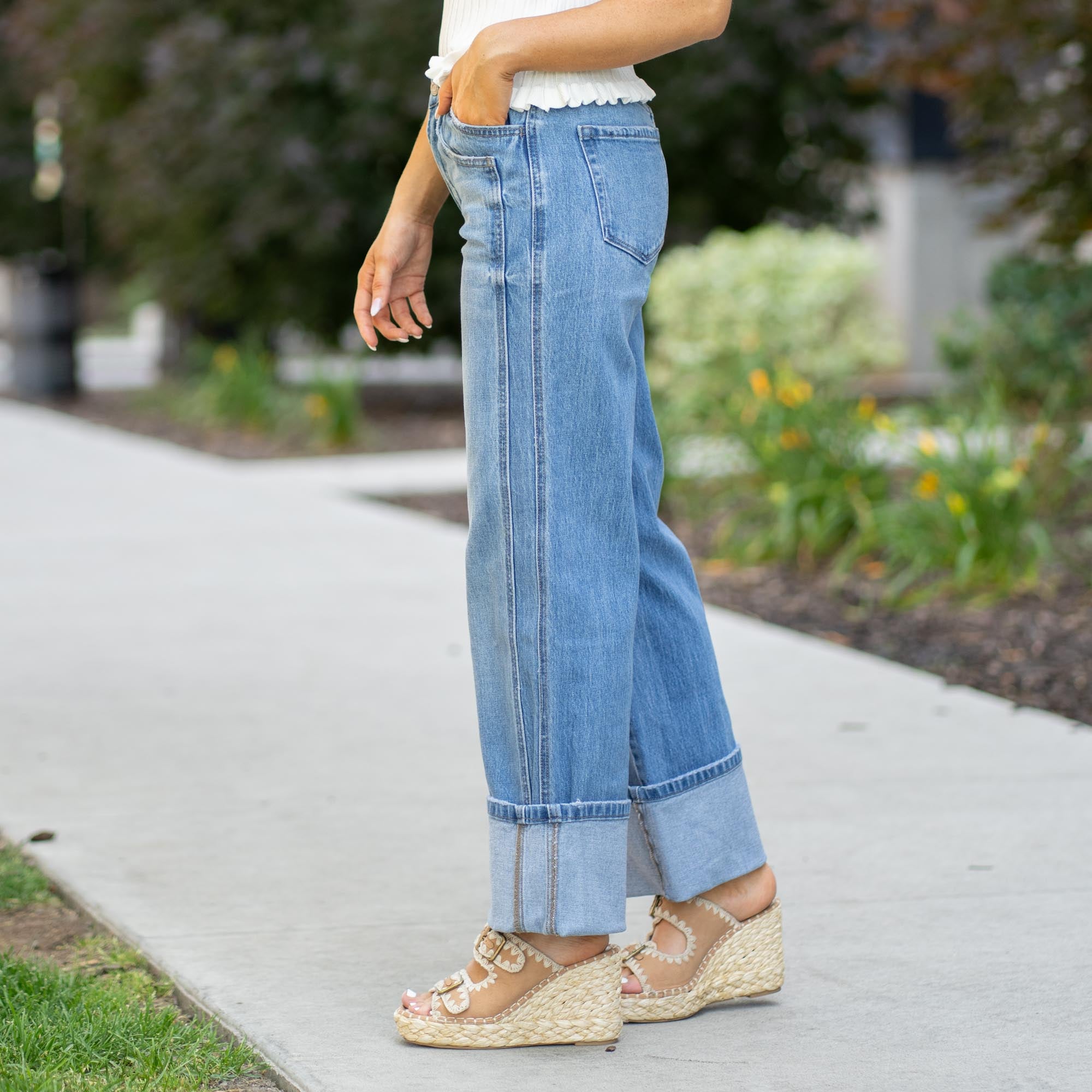 VERVET Blissful Reflections High Rise Cuffed Crop Straight Jeans Medium Blue