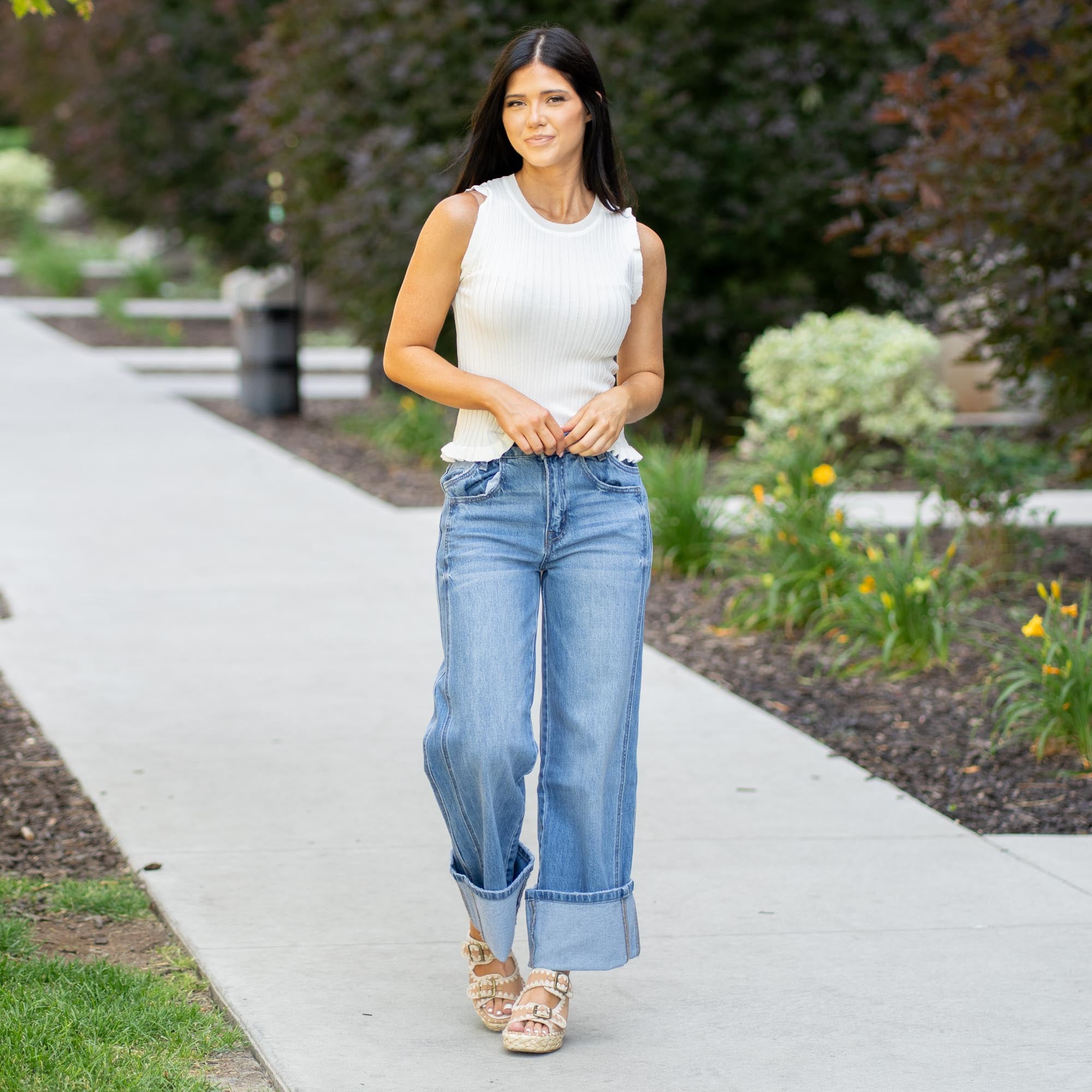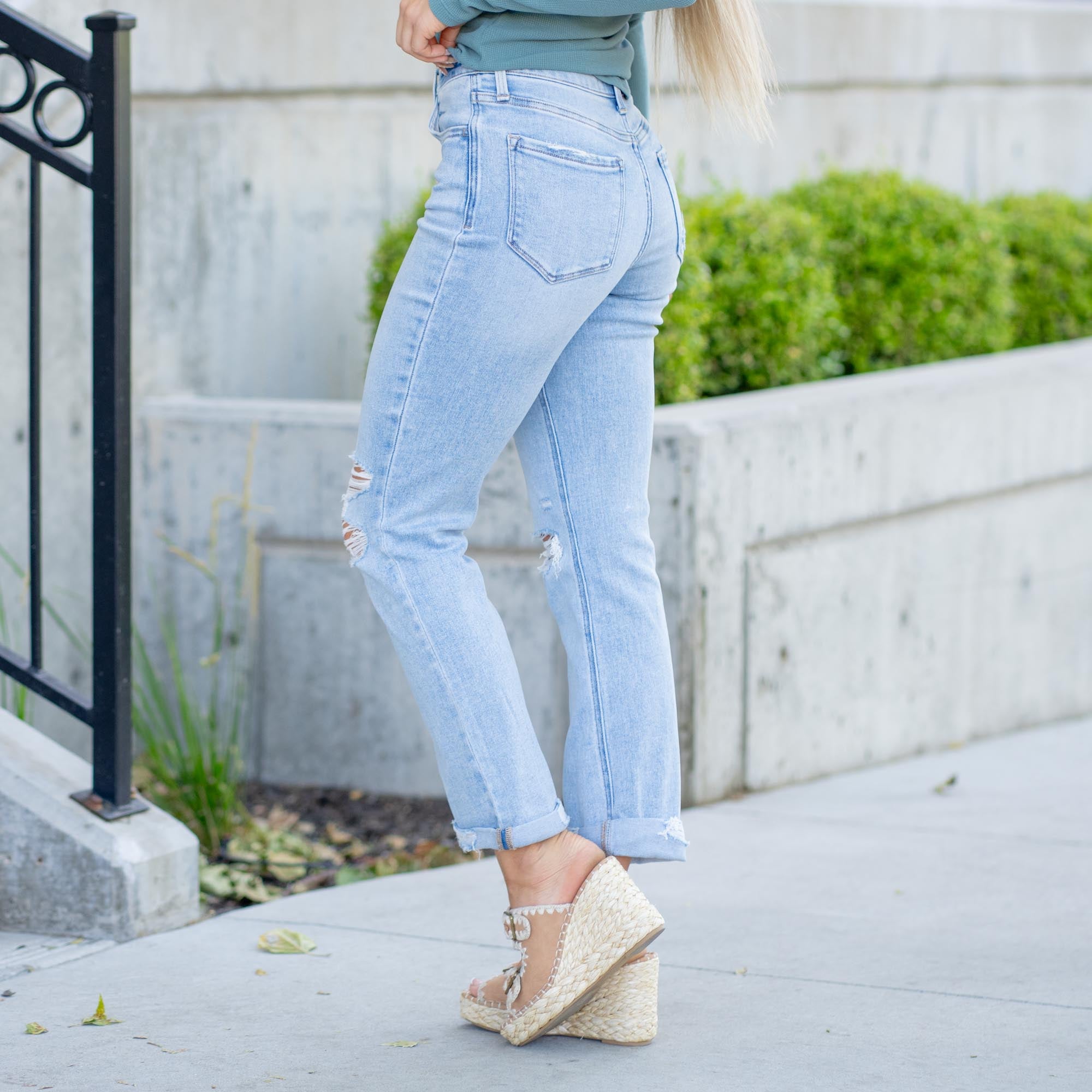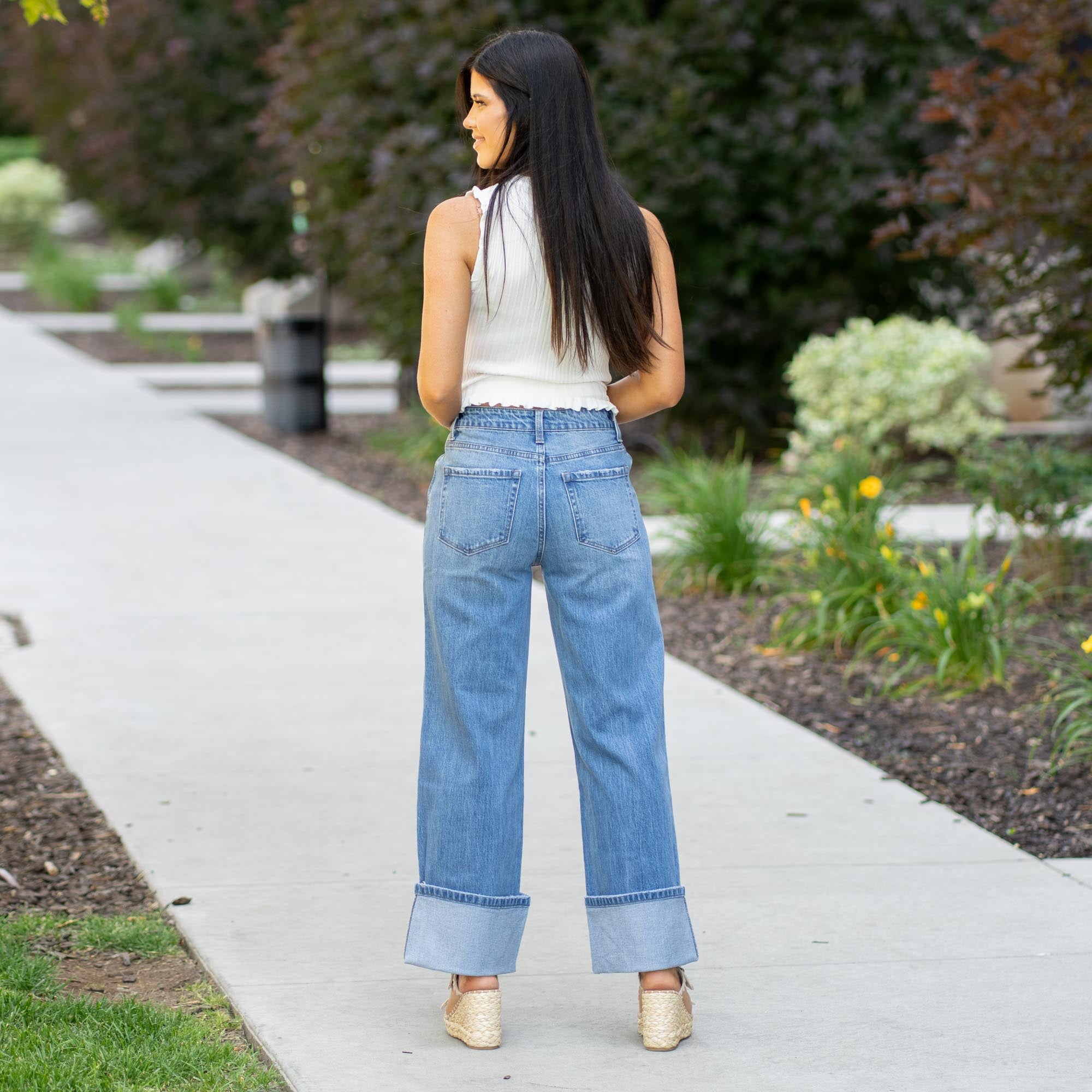 VERVET Felicious High Rise Double Cuff Cropped Straight Leg Light Blue