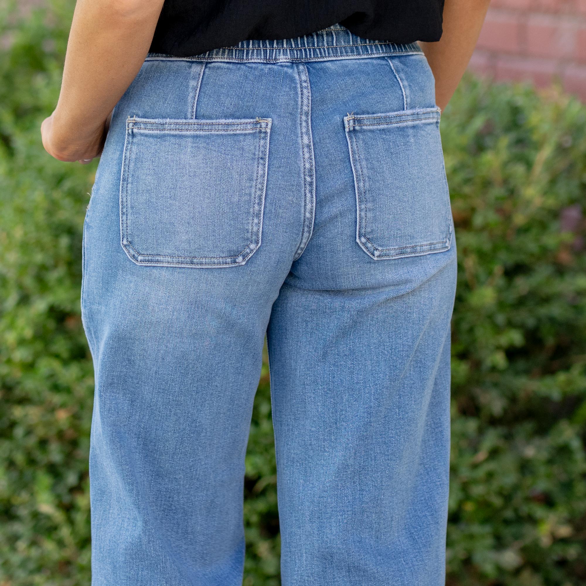 VERVET Reassure High Rise Drawstring Waistband Wide Leg Jeans Medium Blue