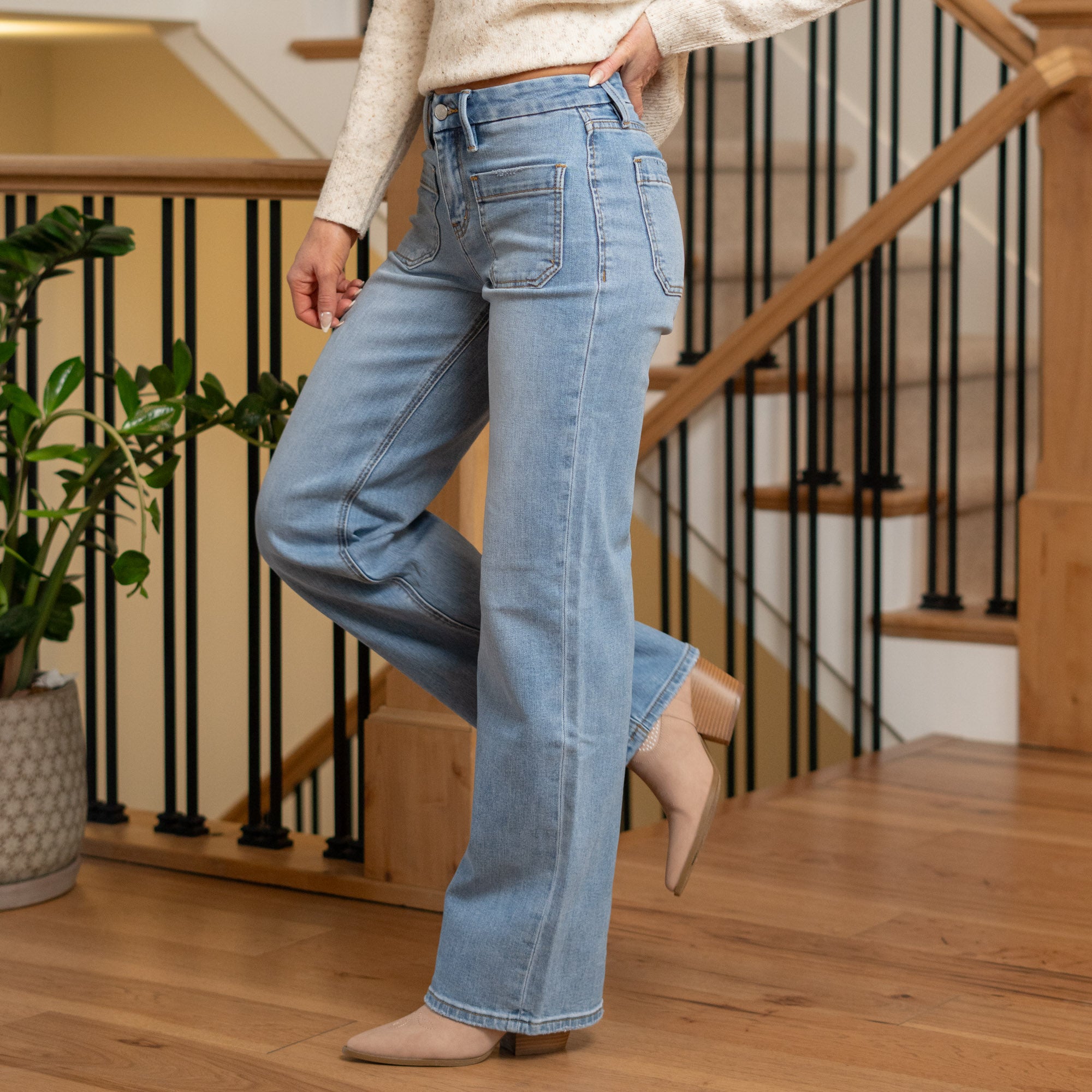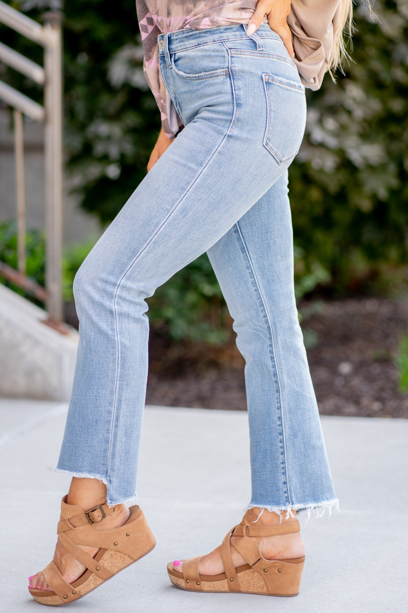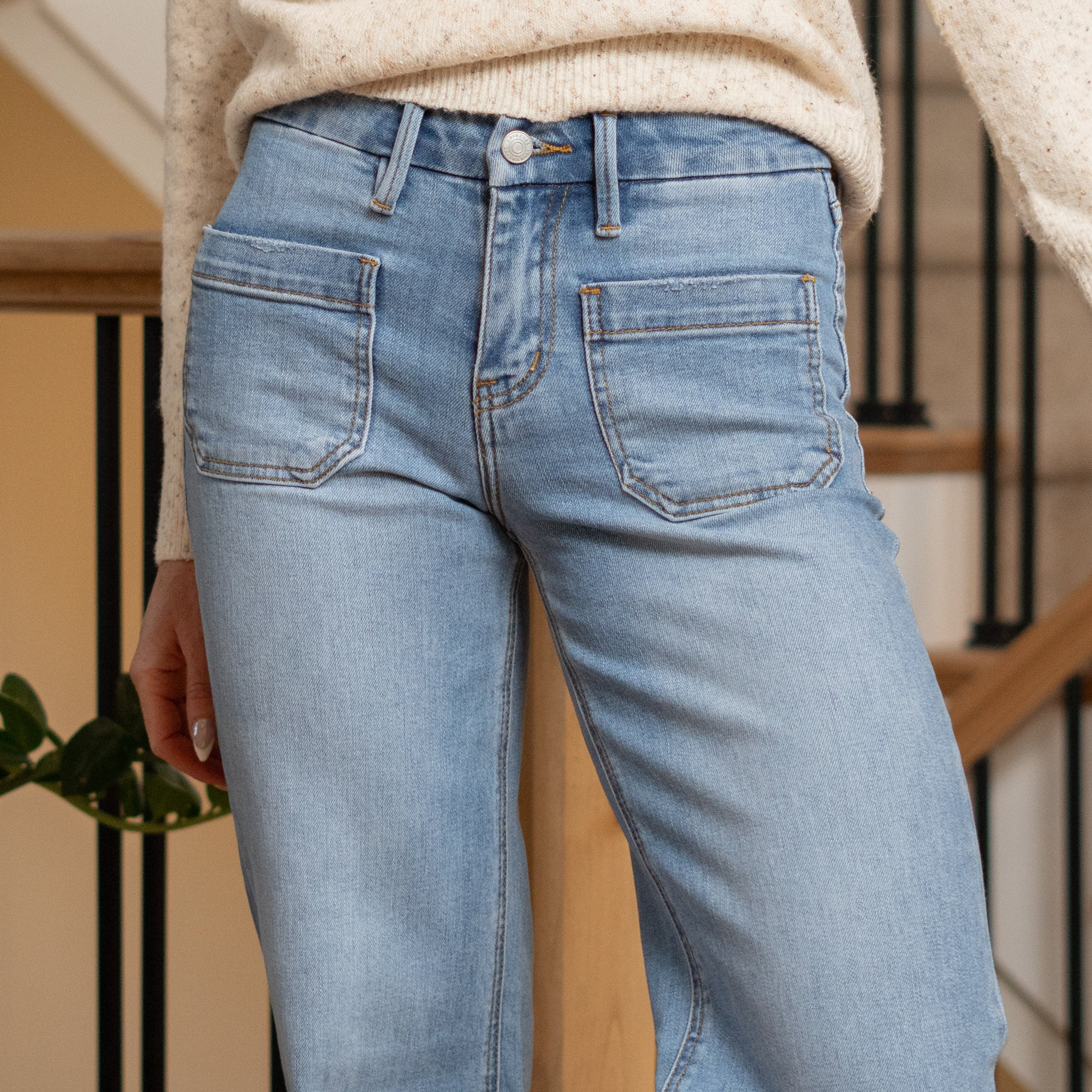 VERVET Striving High Rise Crop Flare Jeans Light Blue Wash