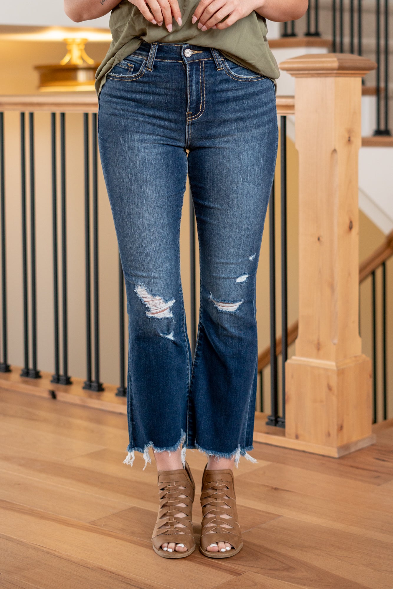 VERVET Decumaria Bella High Rise Crop Flare Dark Blue