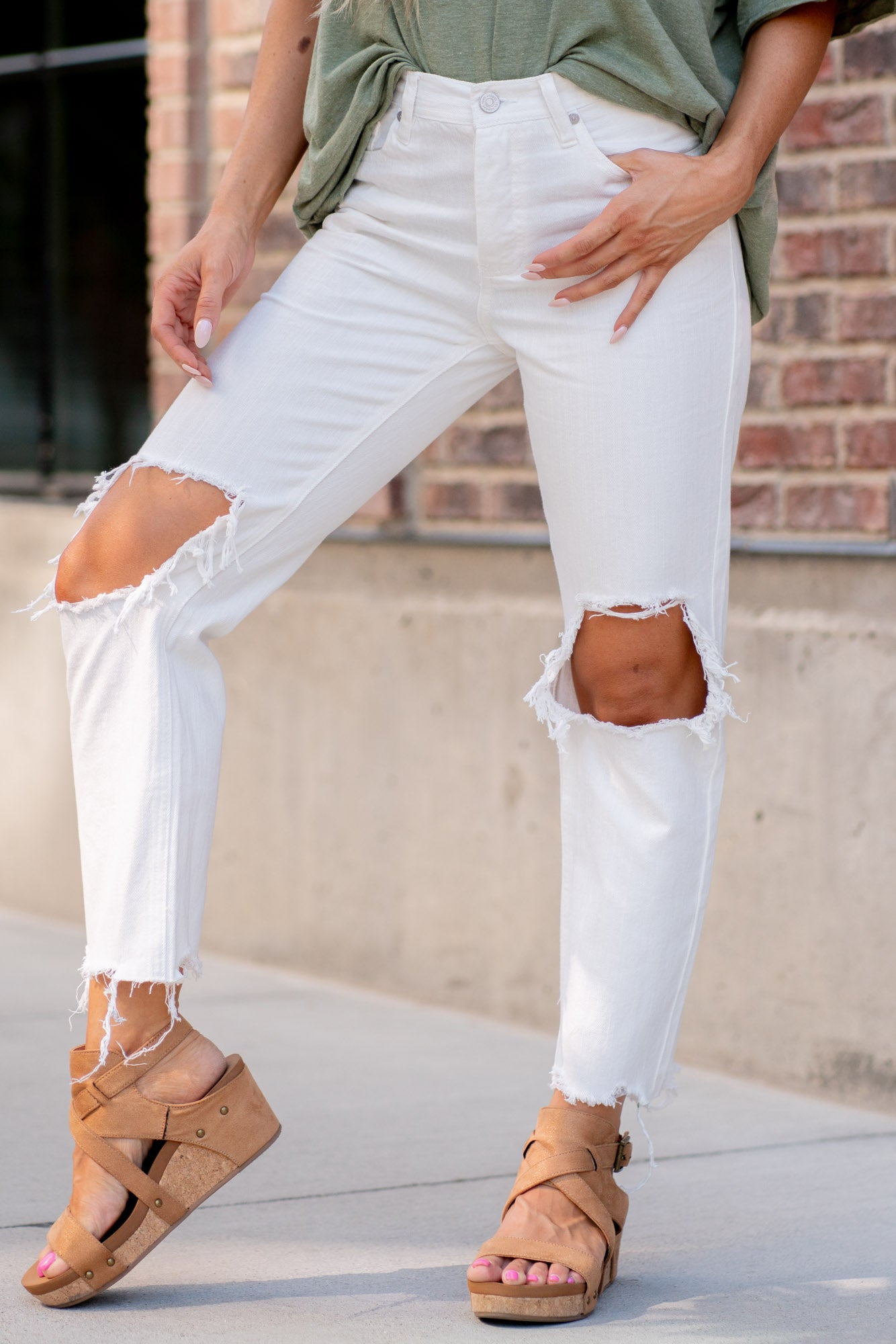 - Rigid denim = size up for a relaxed fit in the waist.