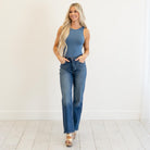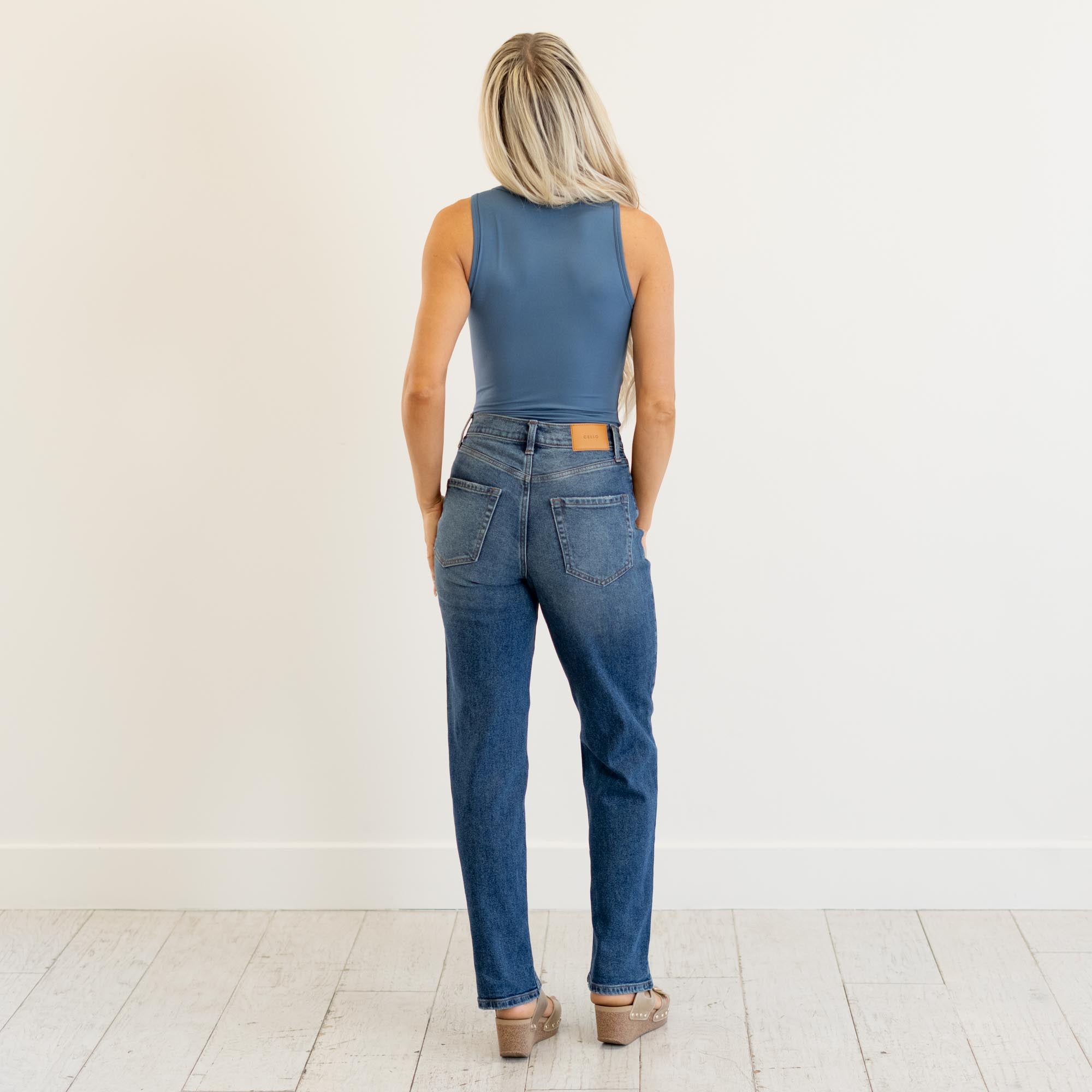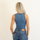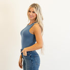 Boat Neck Sleeveless Bodysuit Dusty Blue