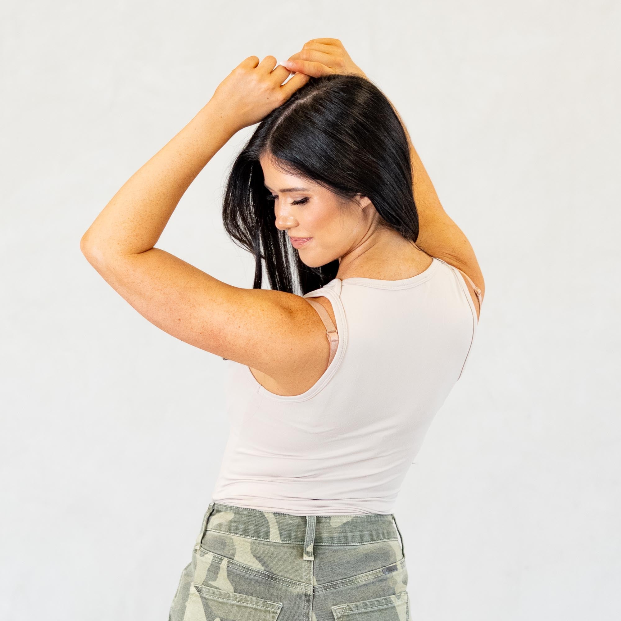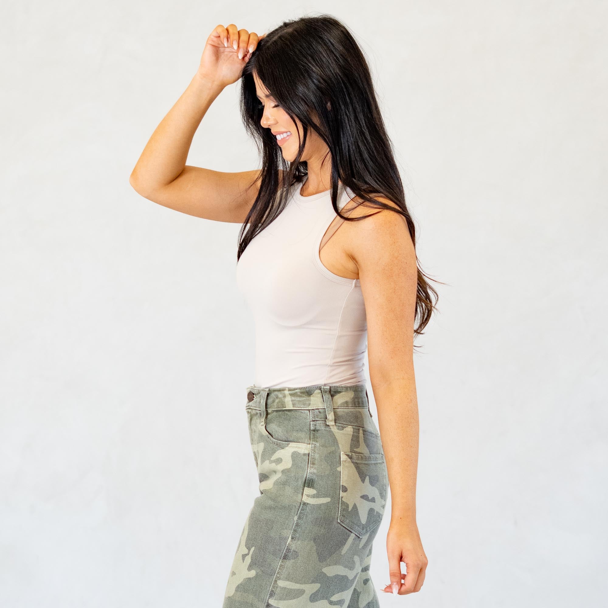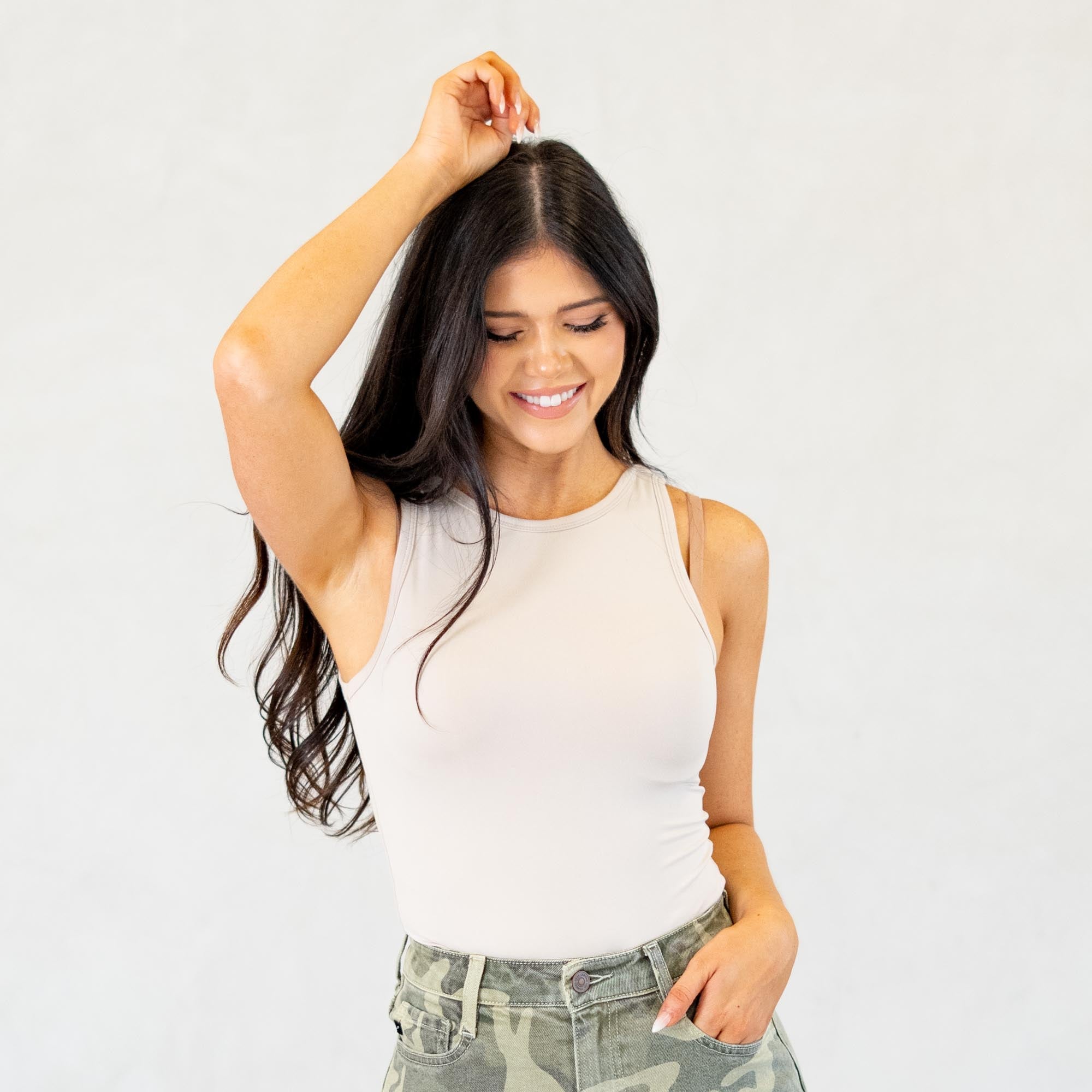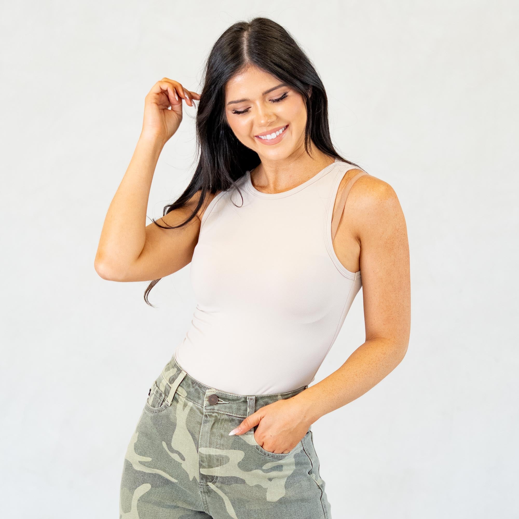 Boat Neck Sleeveless Bodysuit Sand Beige