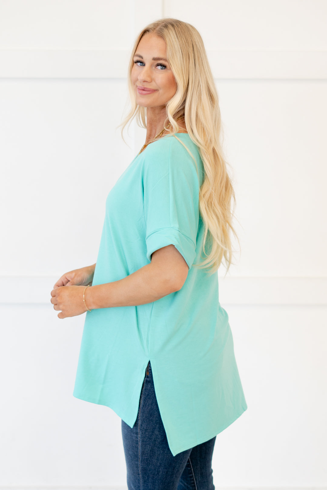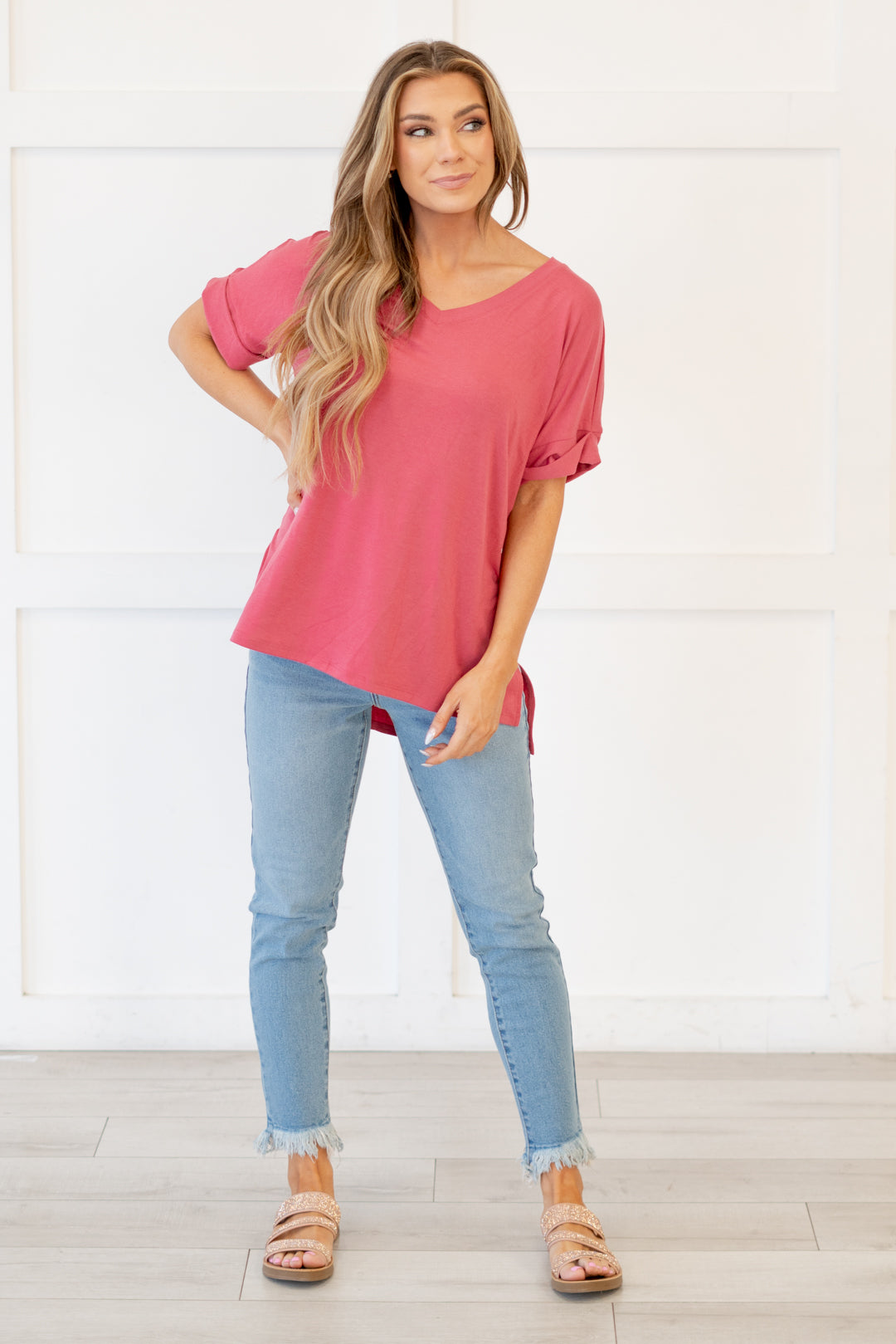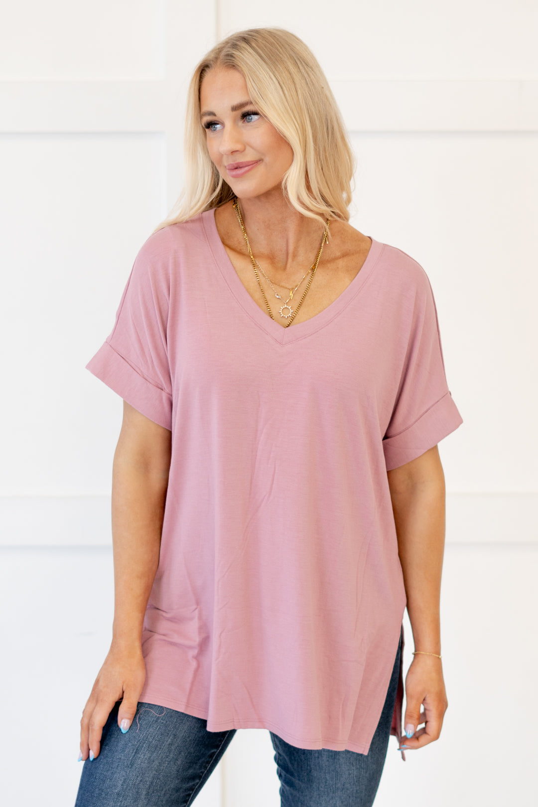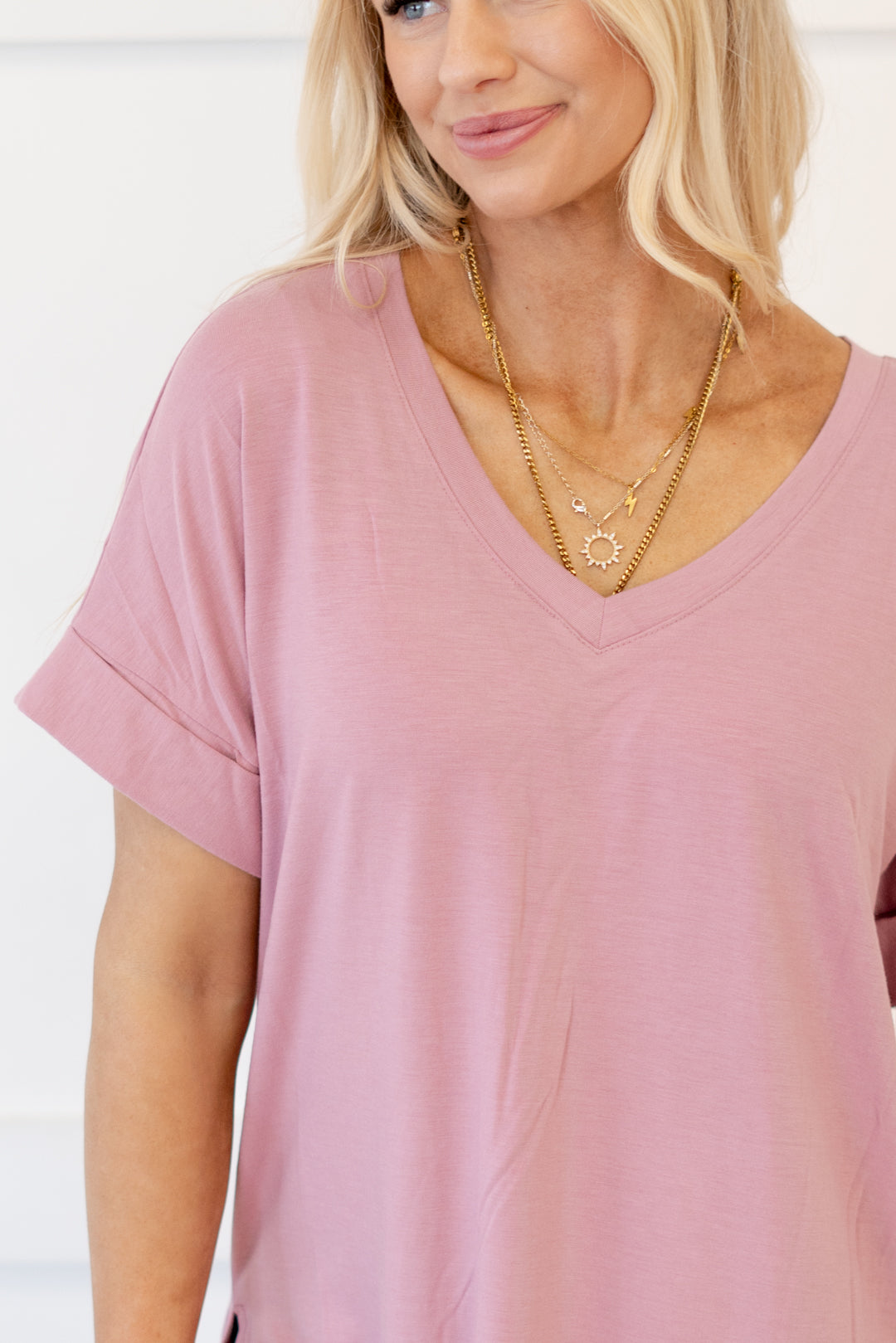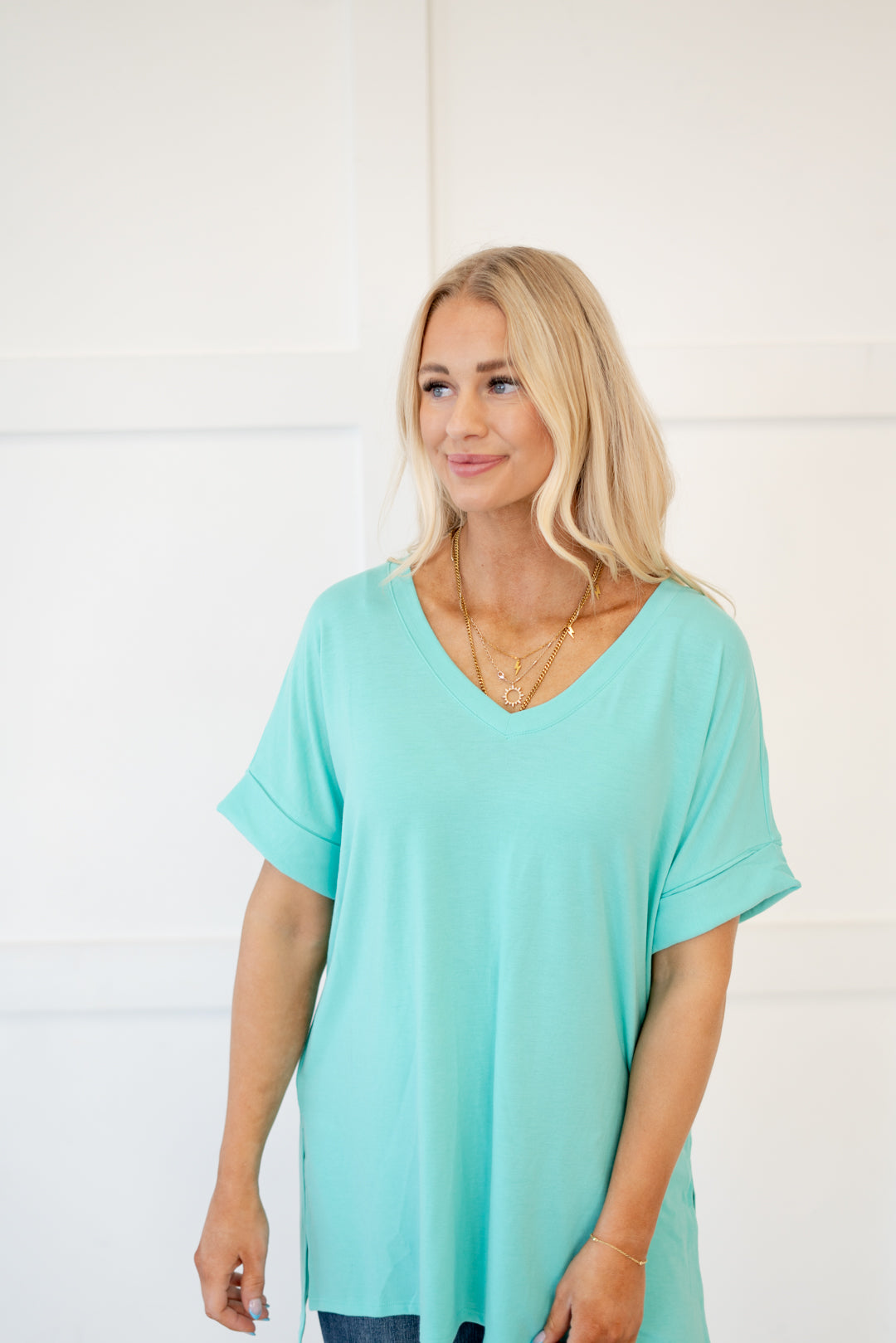 The absolutely perfect v neck tee with oversized folded sleeves.