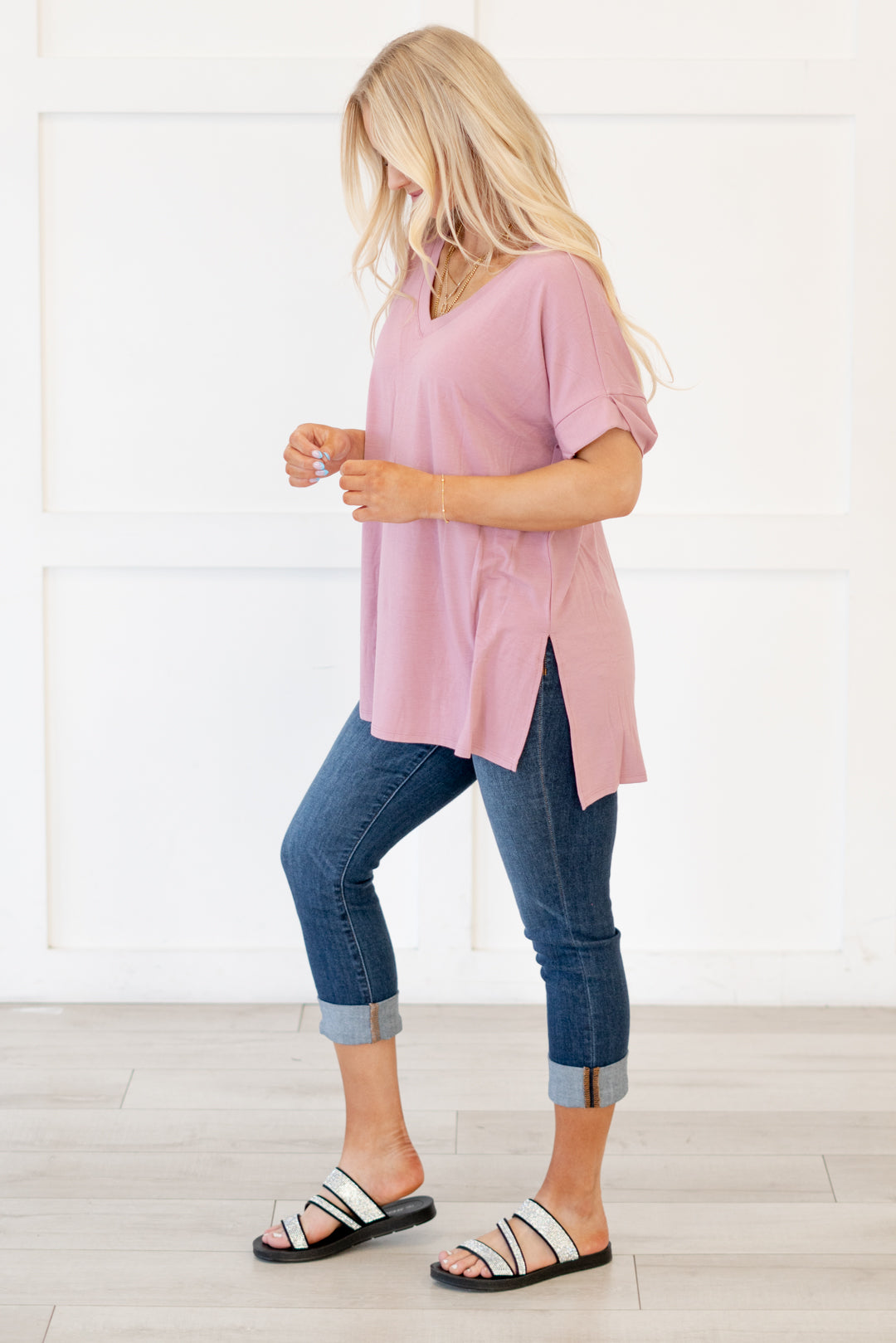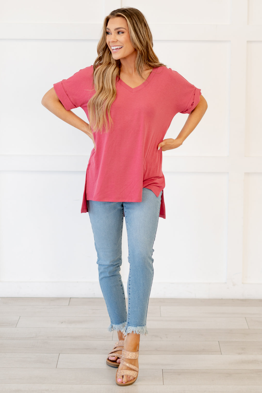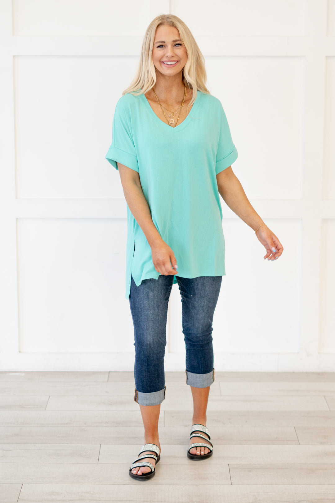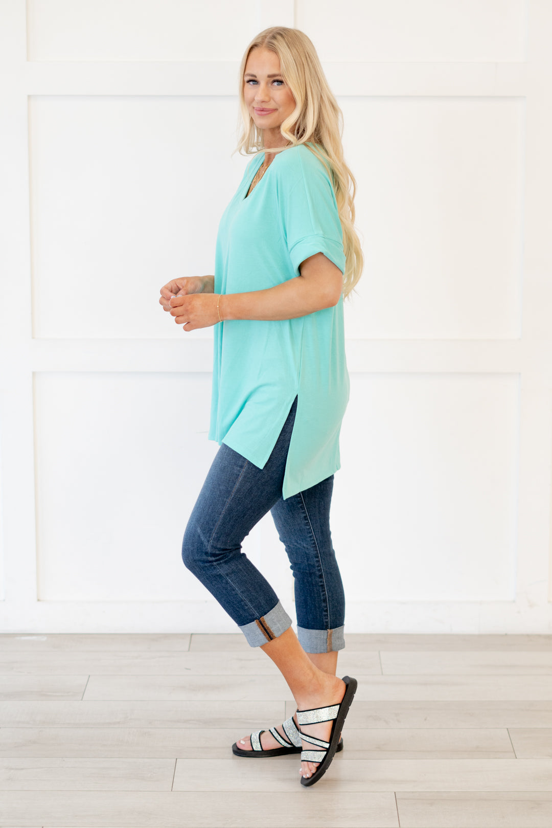 The absolutely perfect v neck tee with oversized folded sleeves.